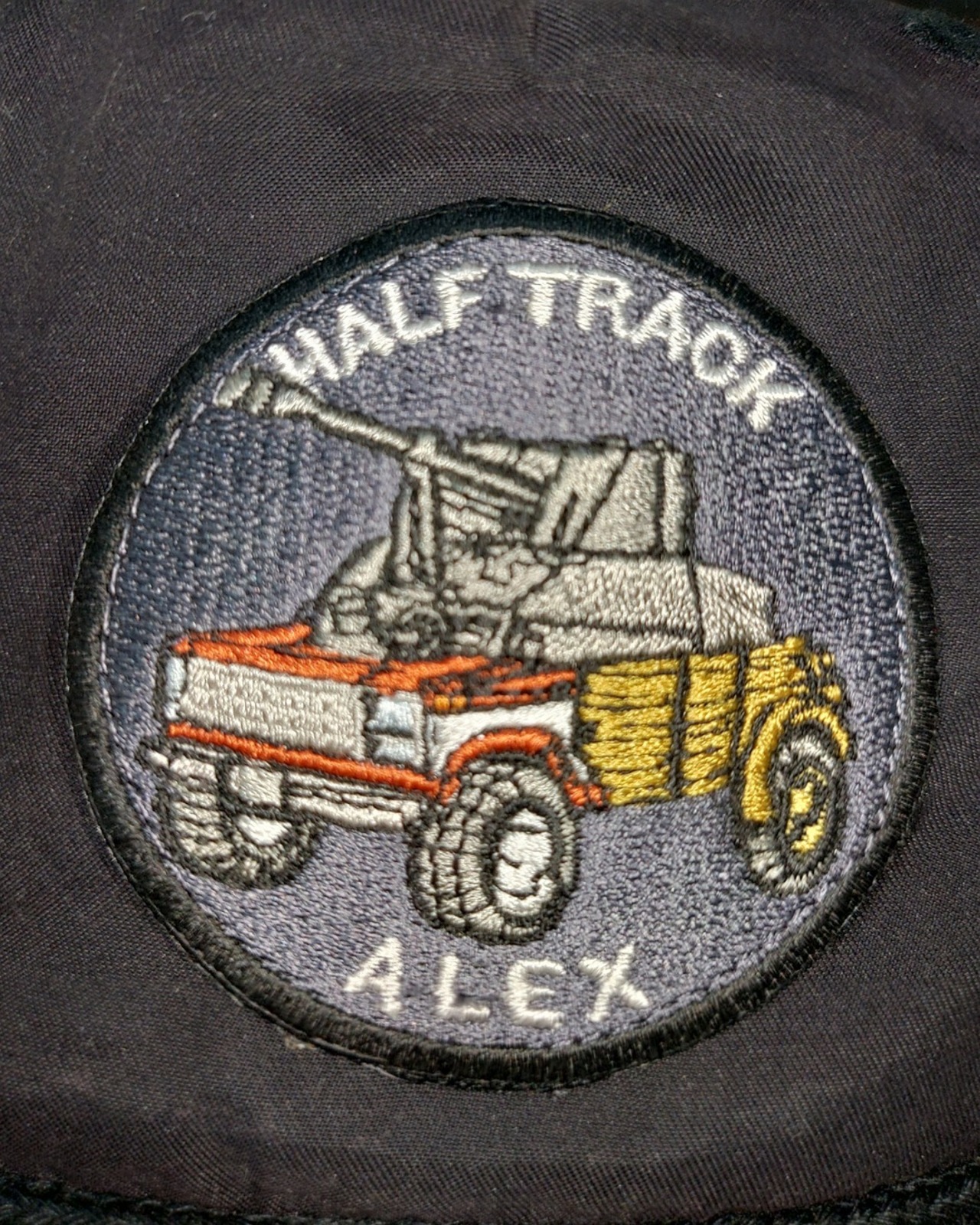 メインボディはツルッとした特殊なナイロンの様な素材、バイザー部分はスウェードの様な質感でタンクカーのワッペンをフロントに貼った、無骨なワークらしいデザイン。