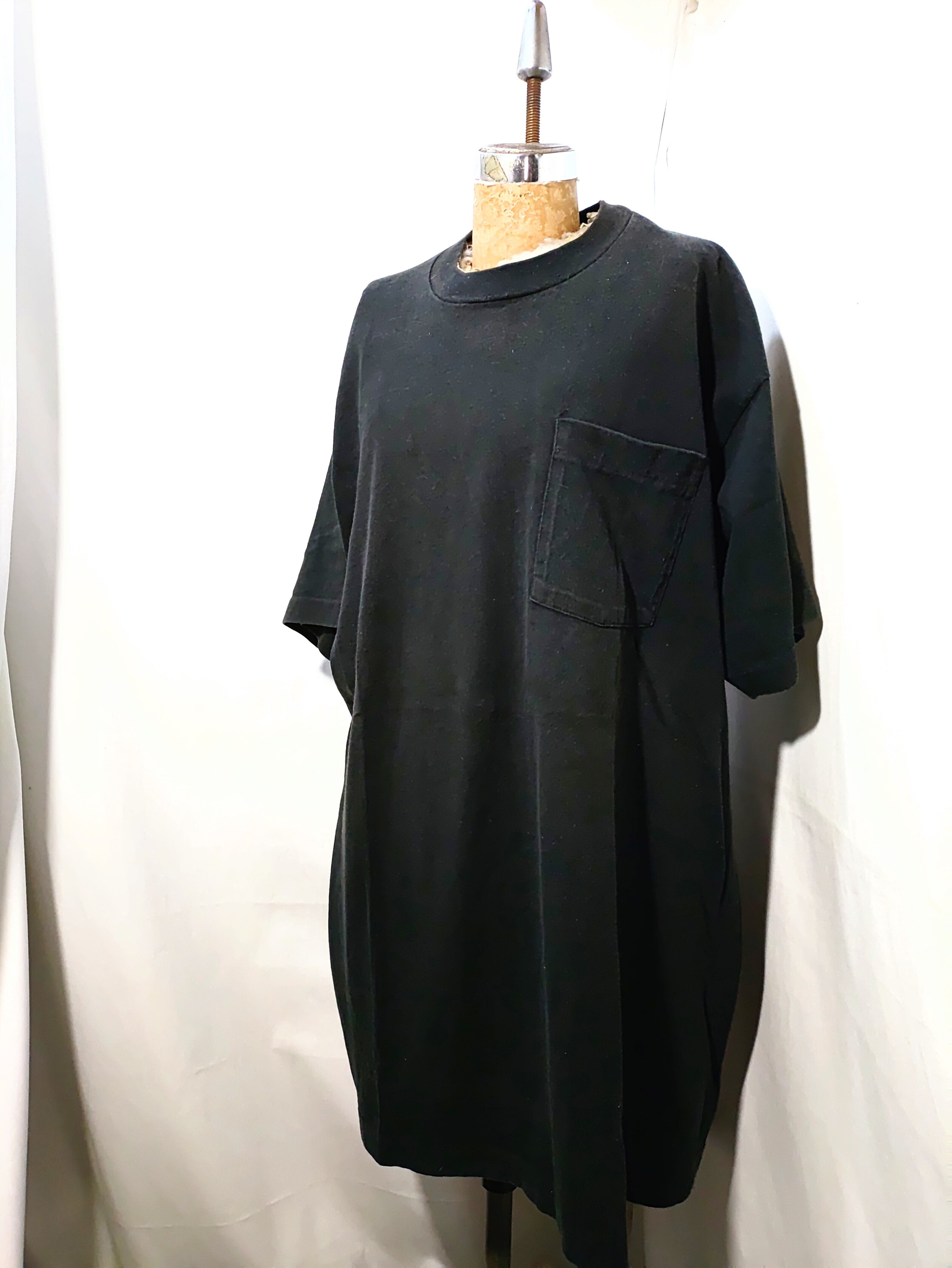 ビッグサイズのブラック無地でアメリカ製、シングルステッチ、丸胴、耳付きポケT、無地のTシャツでもこれだけ魅力の詰まった個体は探しても簡単に見つかる物ではないかと思われます。