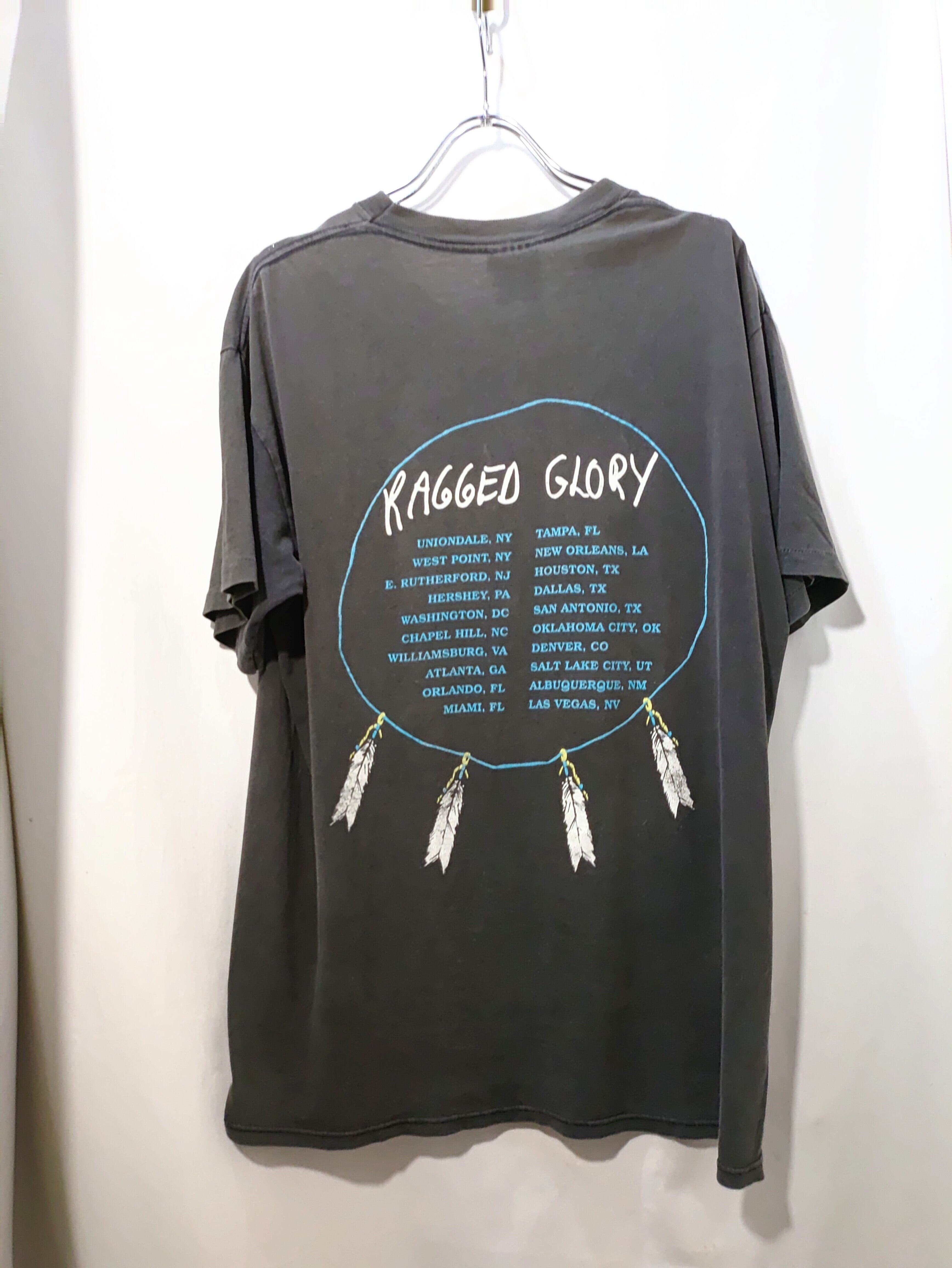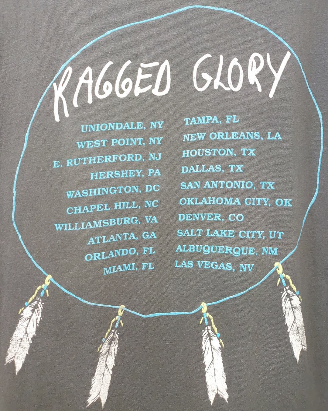 フォーク・ロックのシンガーソングライターであるニール・ヤングの20枚目のスタジオ・アルバムであり、ロックバンドの"クレイジー・ホース"との6枚目のアルバムで1990年リリースの「Ragged Glory」(傷だらけの栄光)のツアーTシャツです。