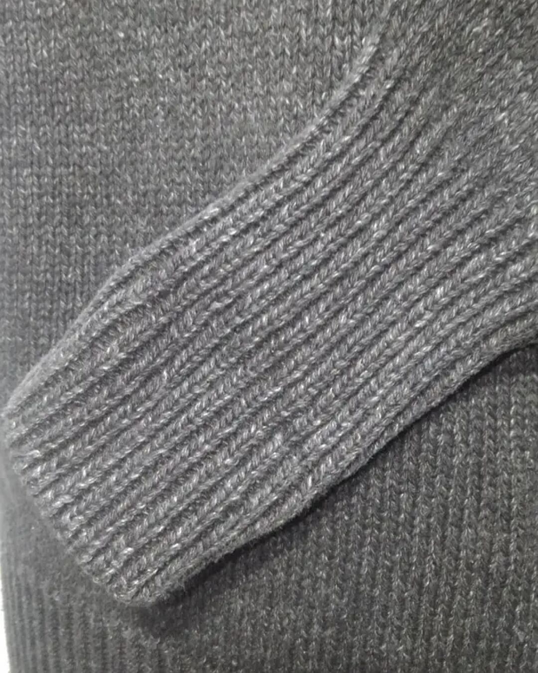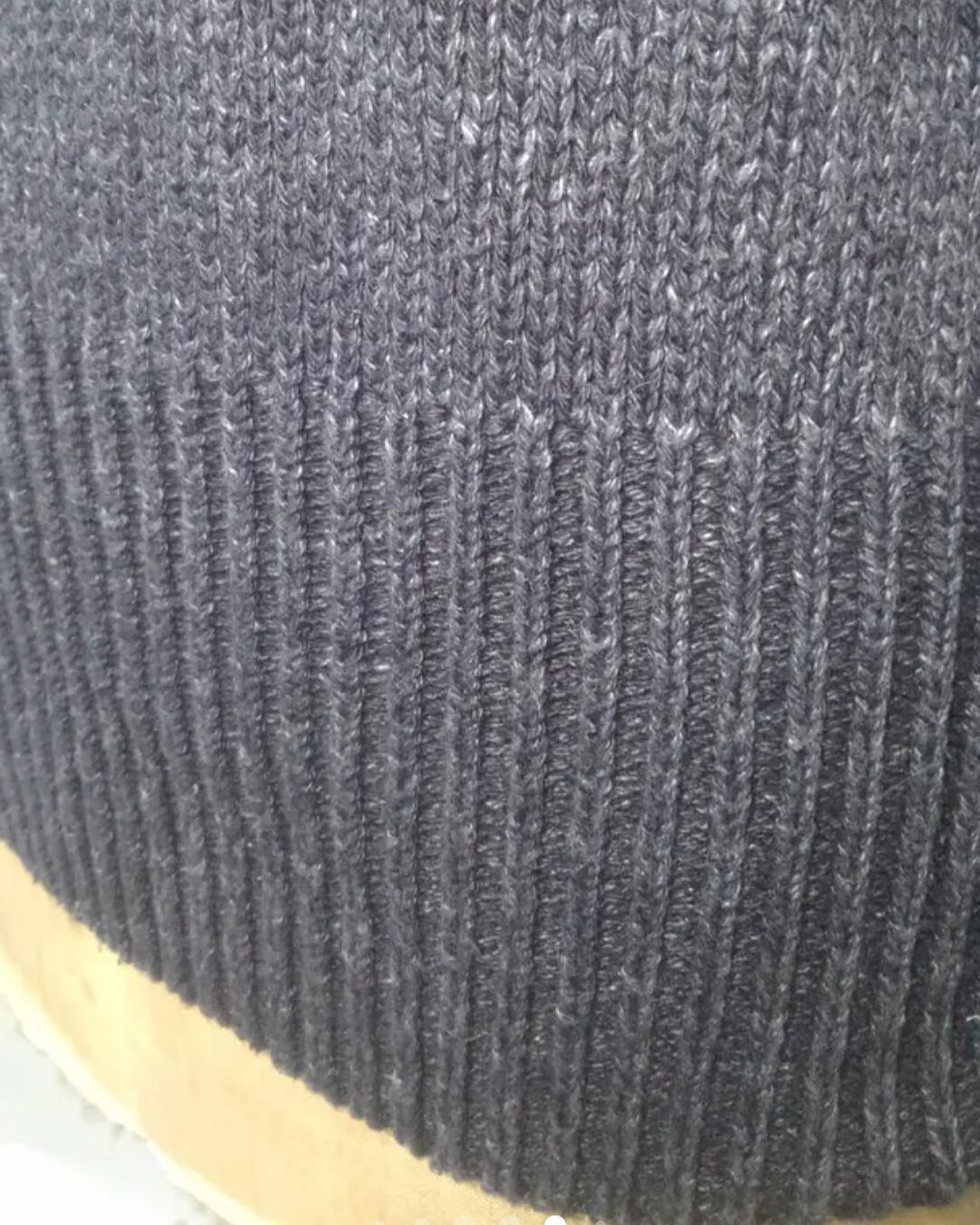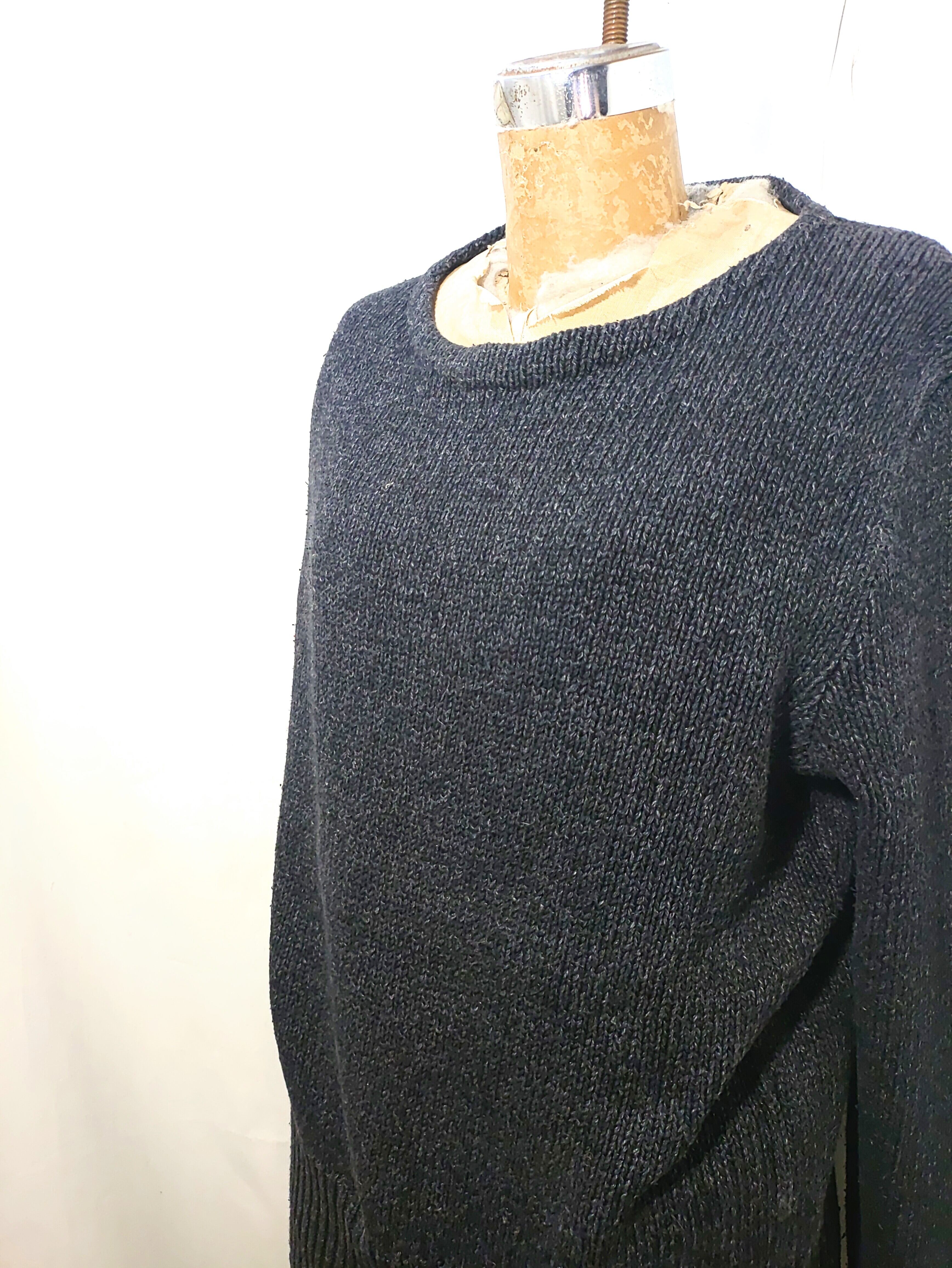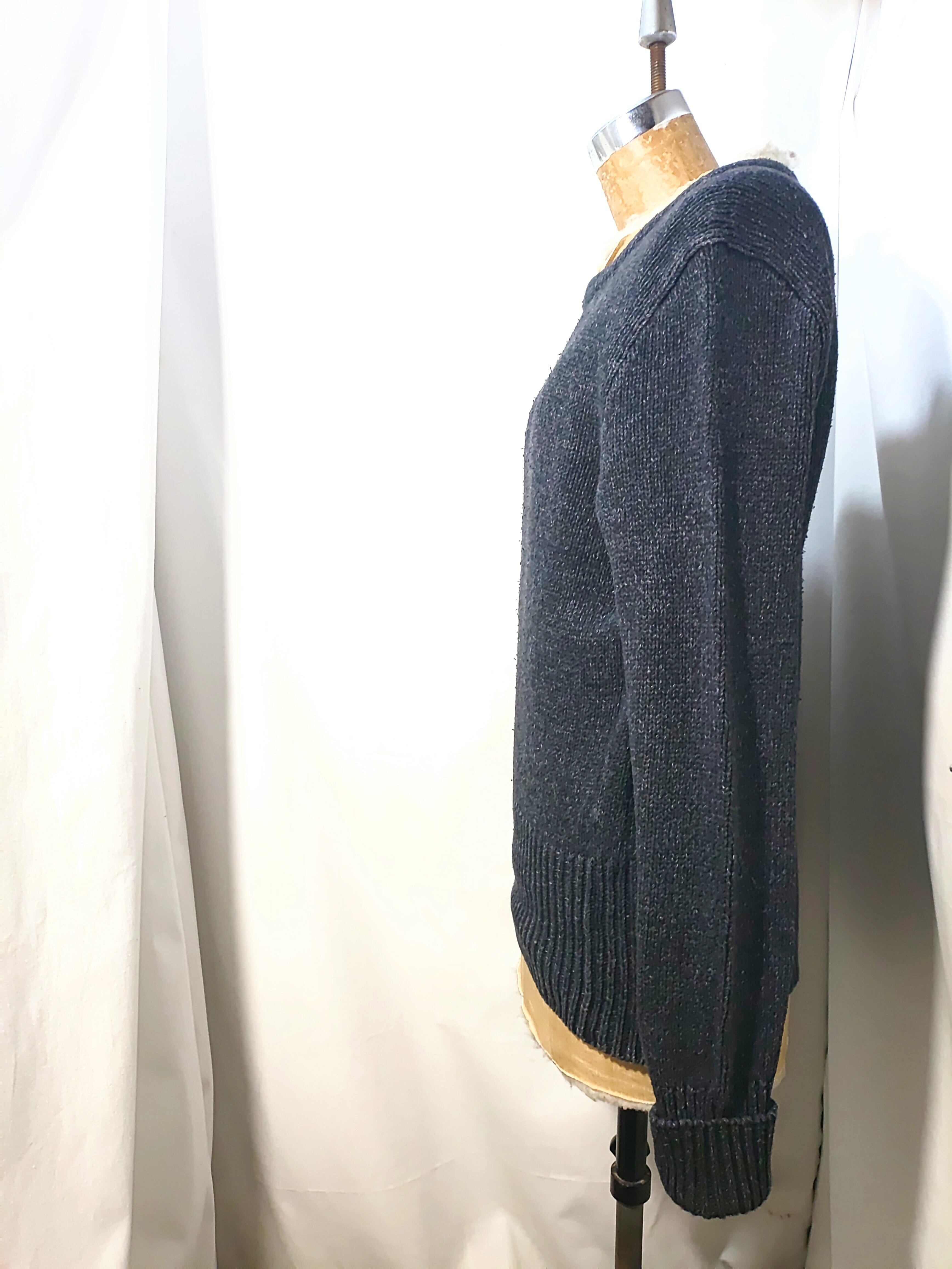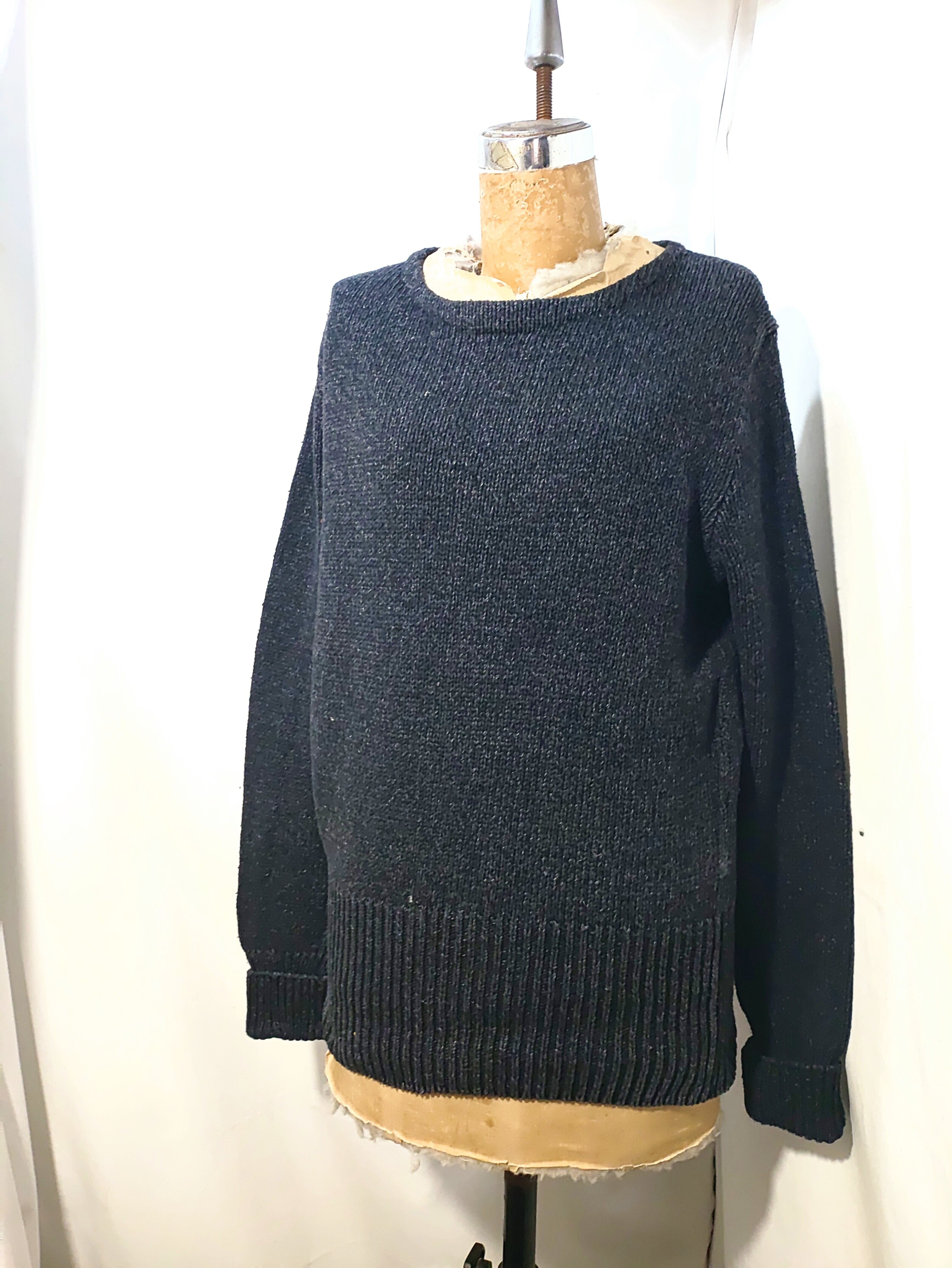 ゴマ塩風のブラックインディゴ染めの様な雰囲気のあるコットンニット生地のシンプルなプルオーバーセーター。