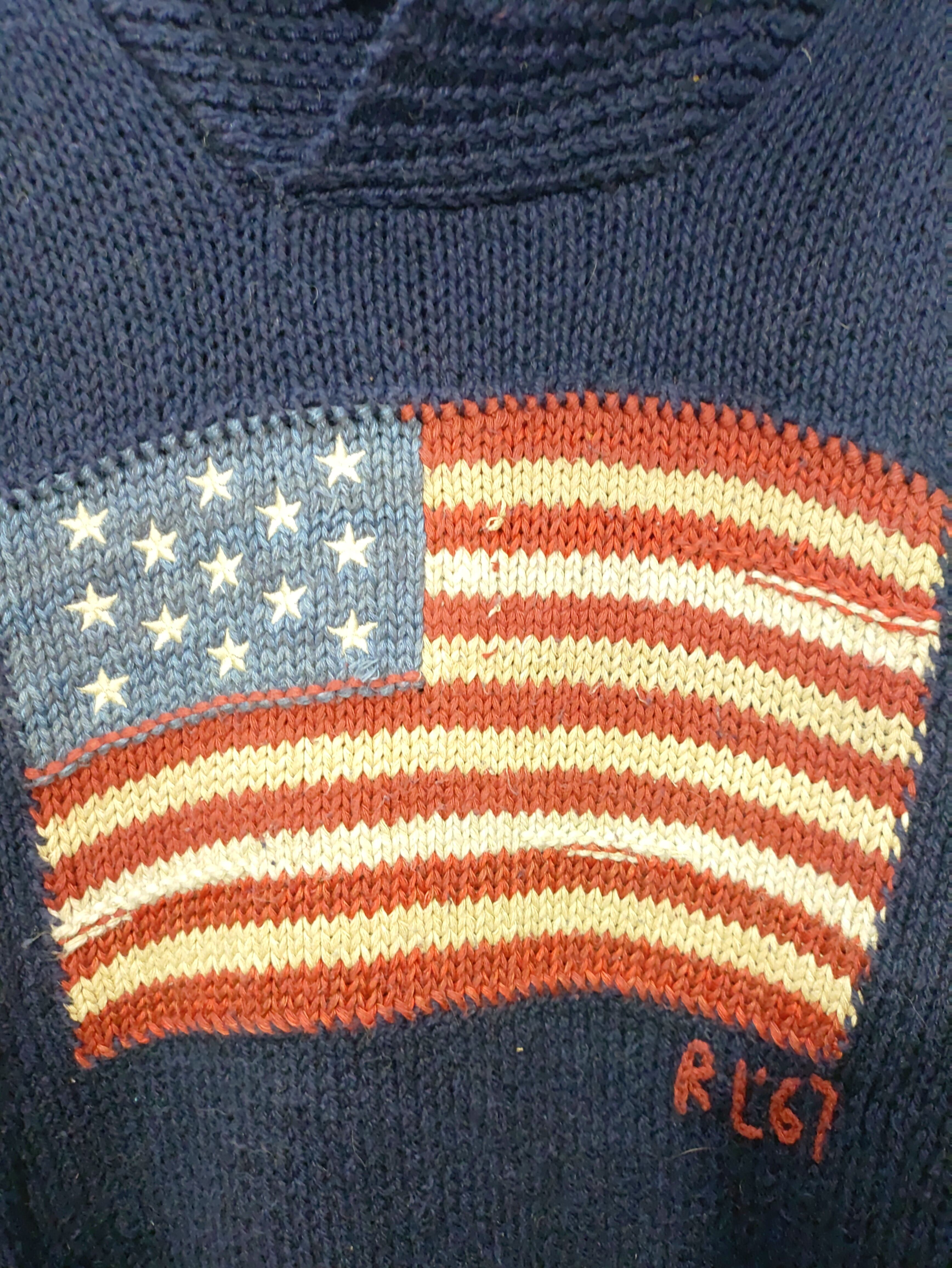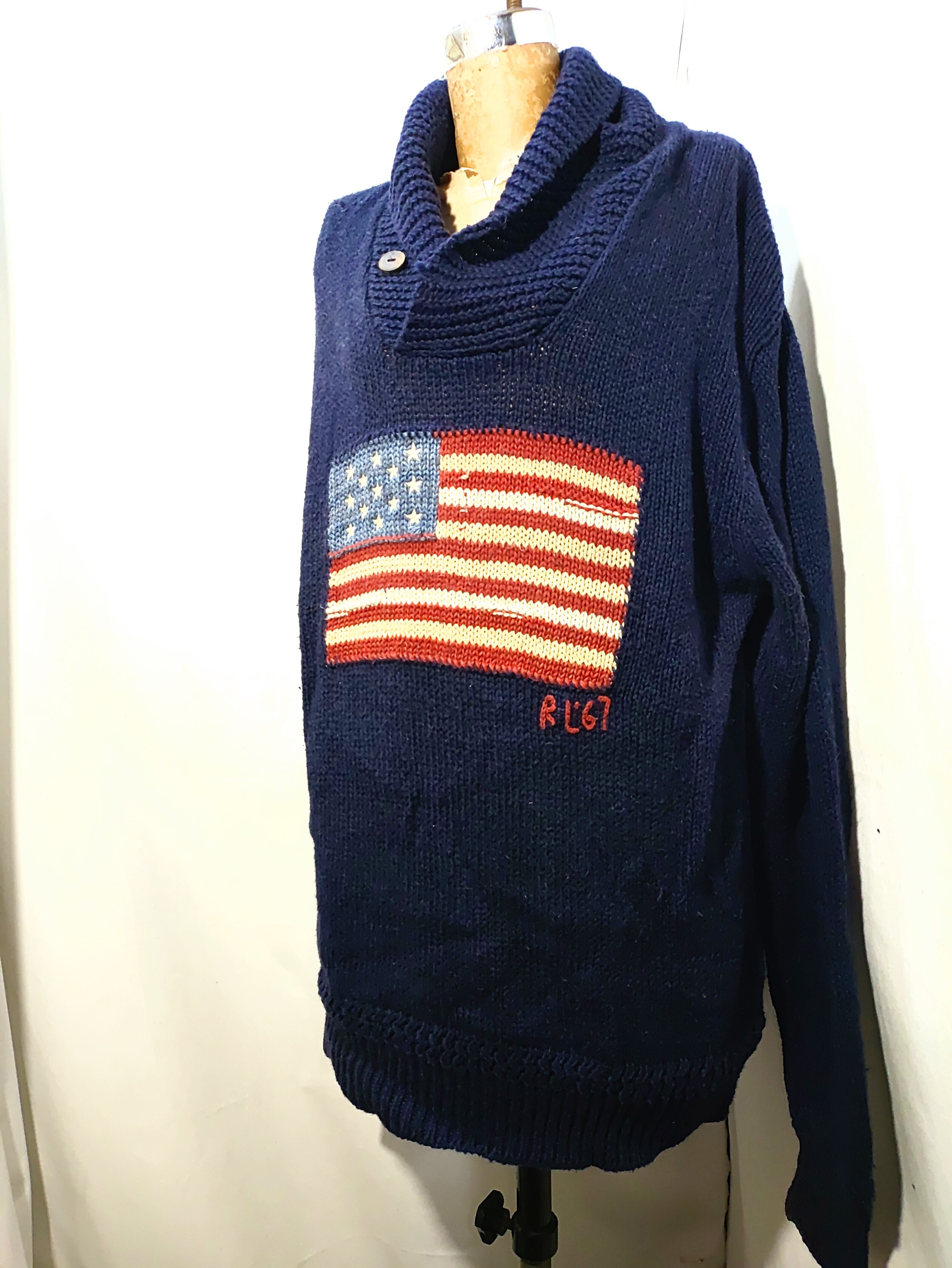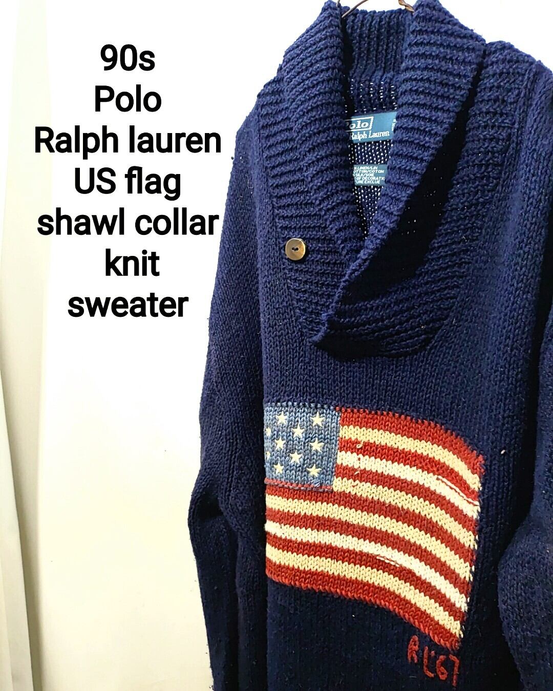 Vintage Polo Ralph lauren US flag shawl collar knit sweater 90s