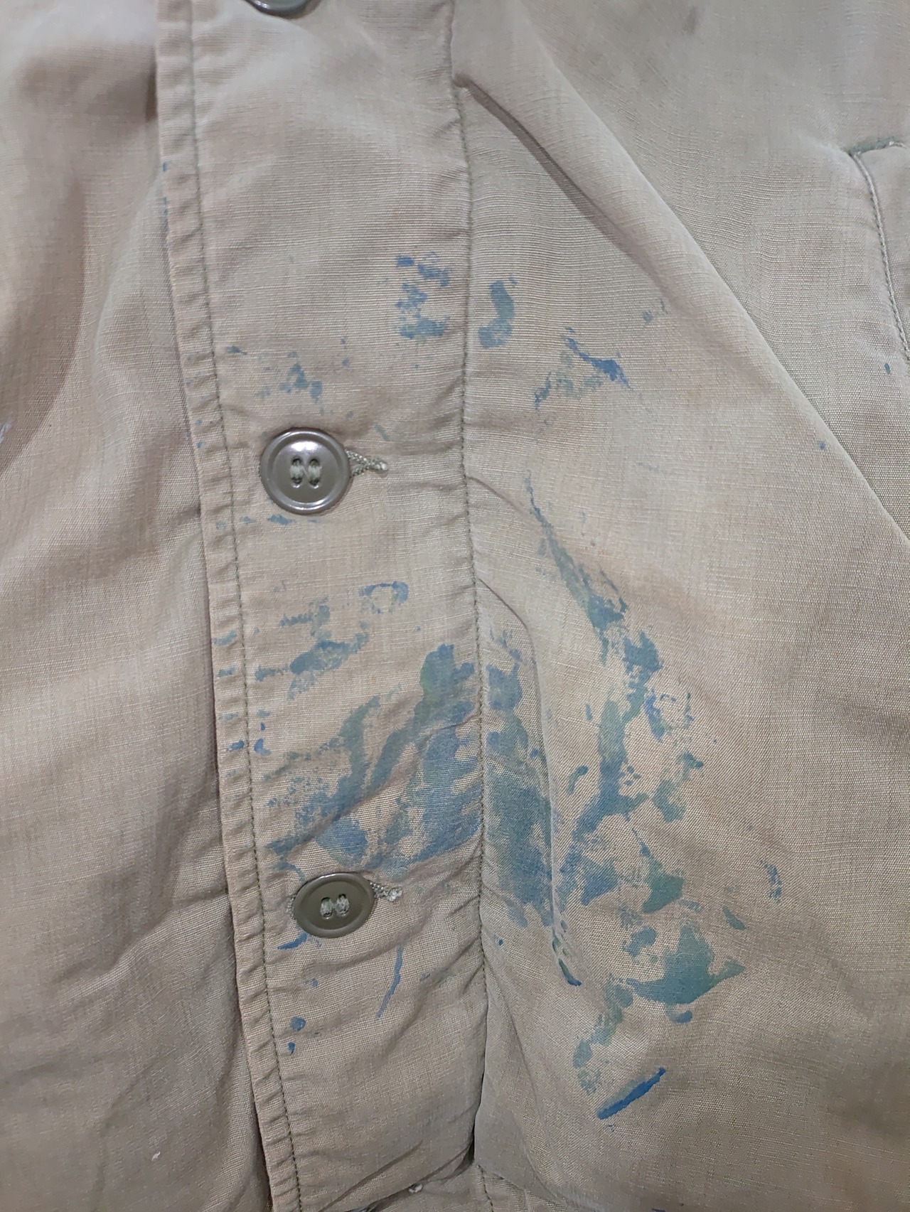 コットンポプリンは生地が薄く特に袖裏のダメージが酷い場合が多いのですが、年代を考慮すると比較的こちらは良好かと思われます。