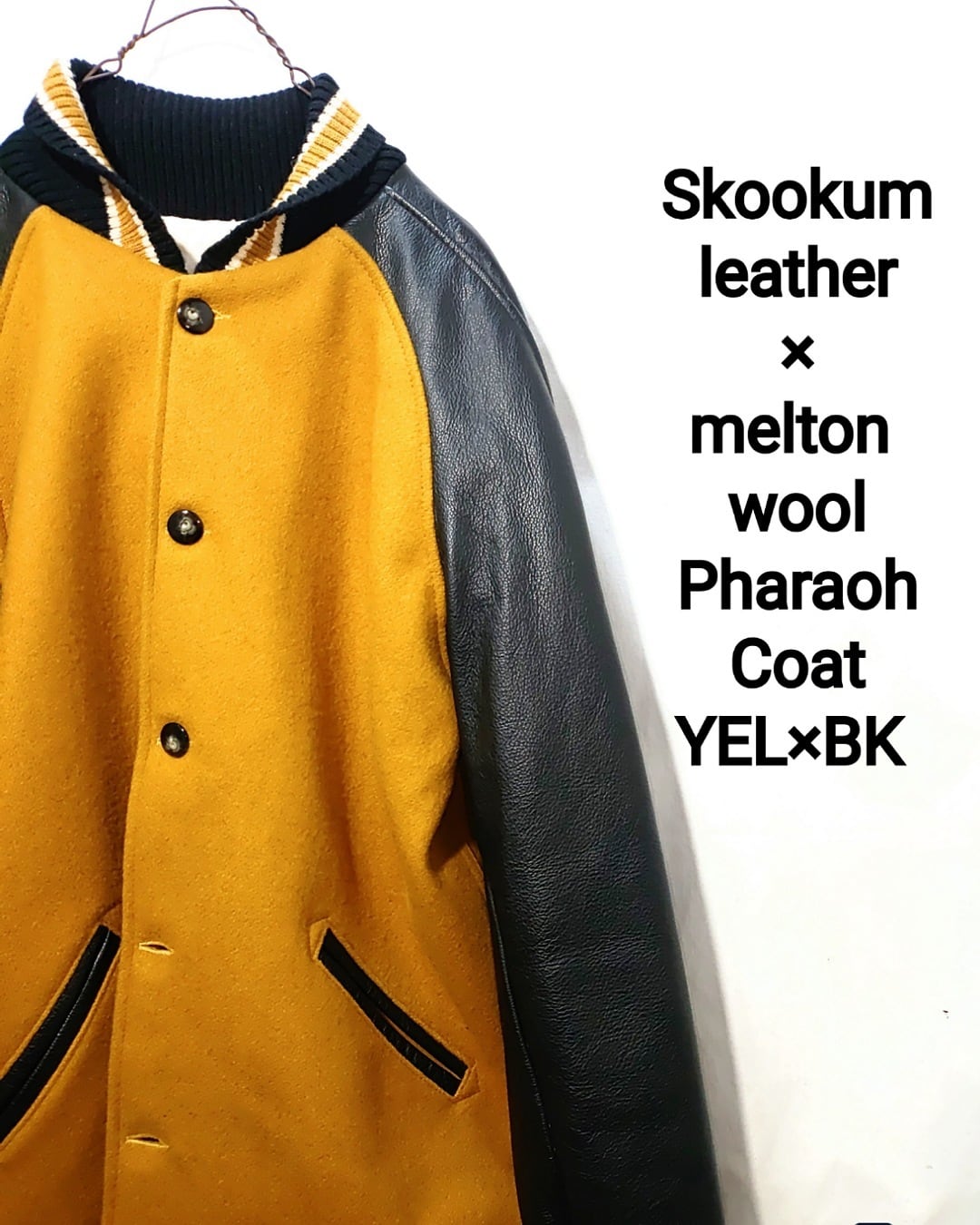 Skookum leather × melton wool pharaoh coat YEL×BK