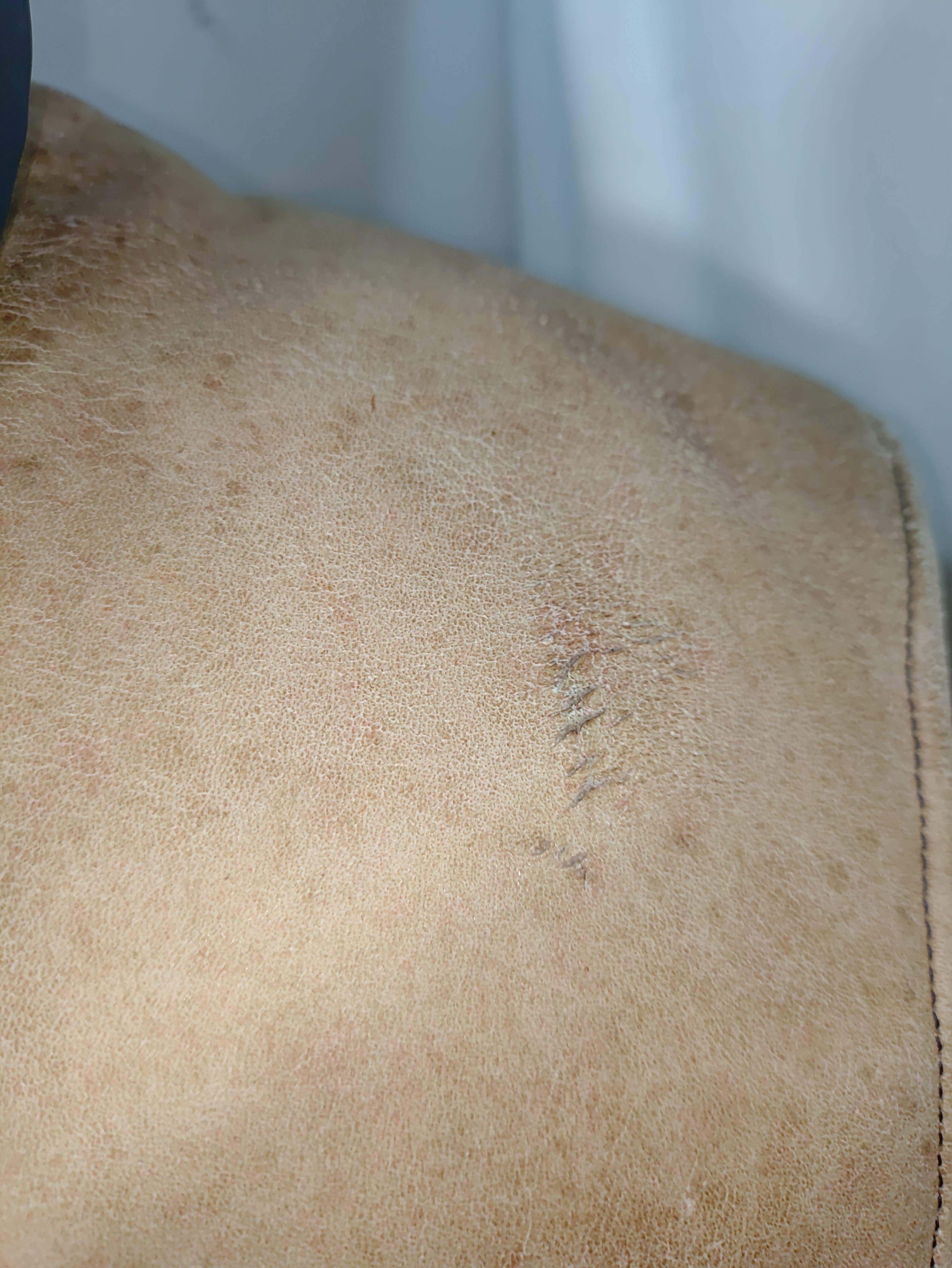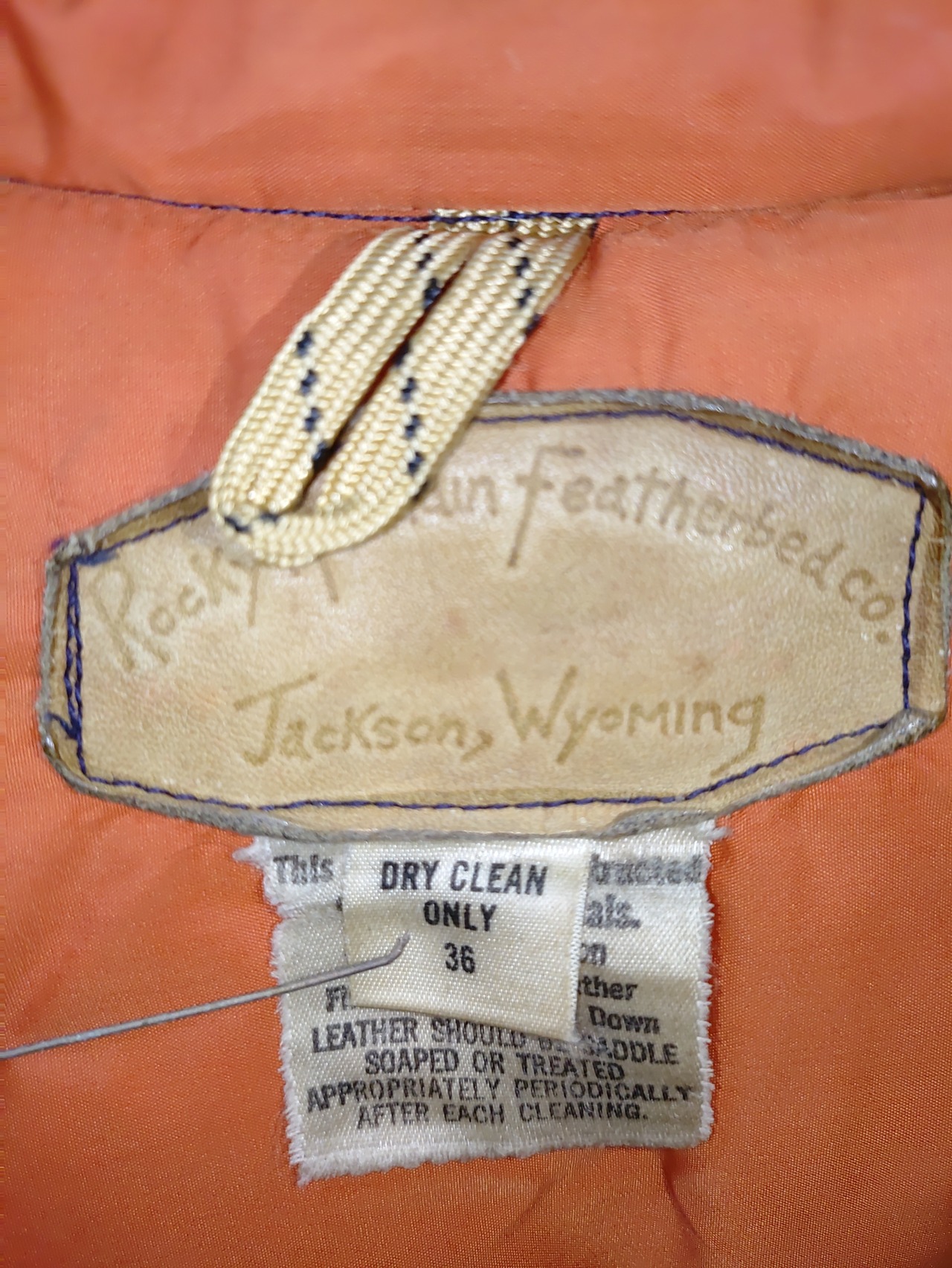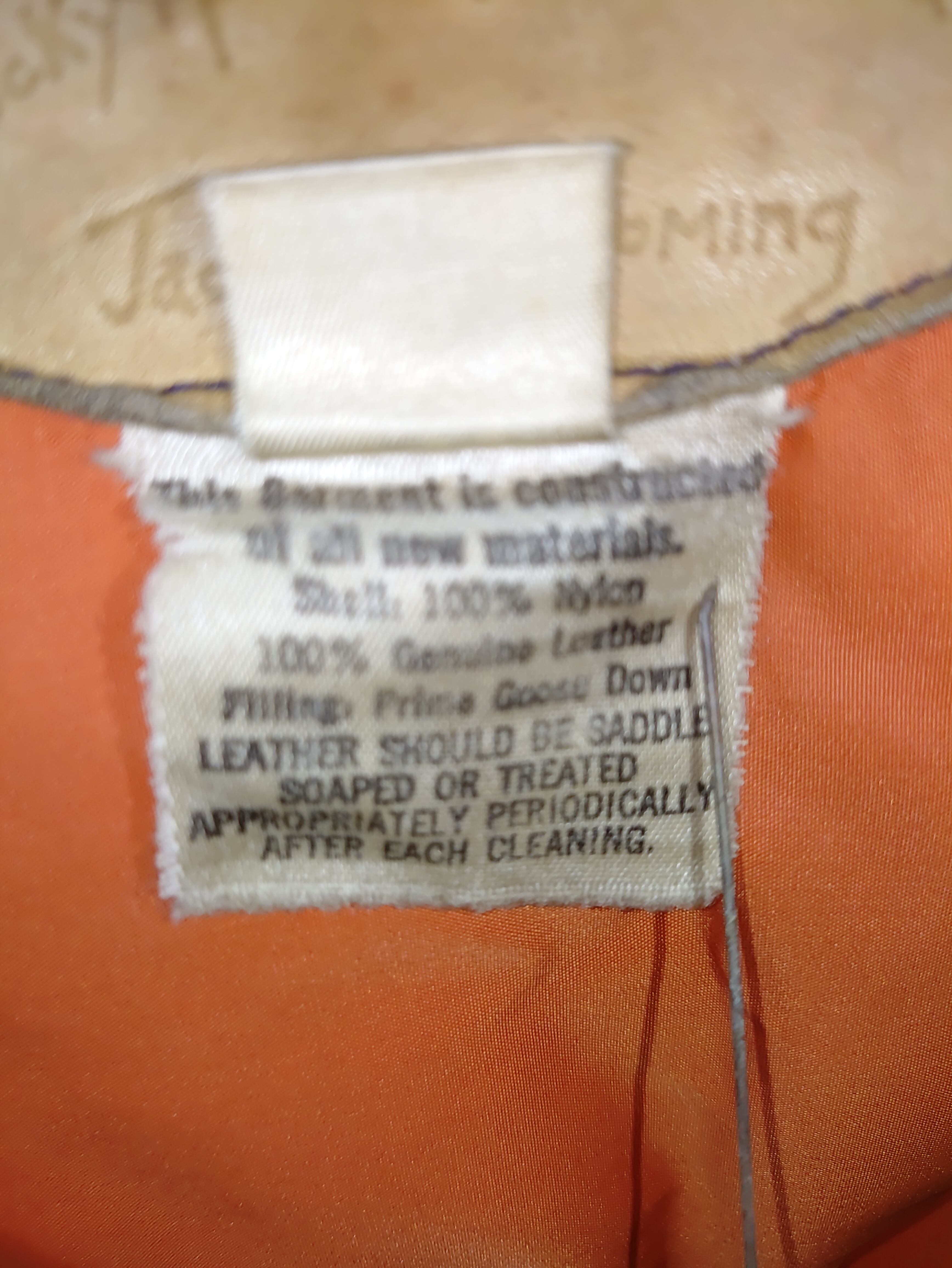 レザーヨーク部分にヴィンテージ特有の薄ジミはございますが、革の硬化もなくしなやかでナイロン部分も目立った汚れや大きなダメージはなく、ダウンのボリュームもしっかり残っています。