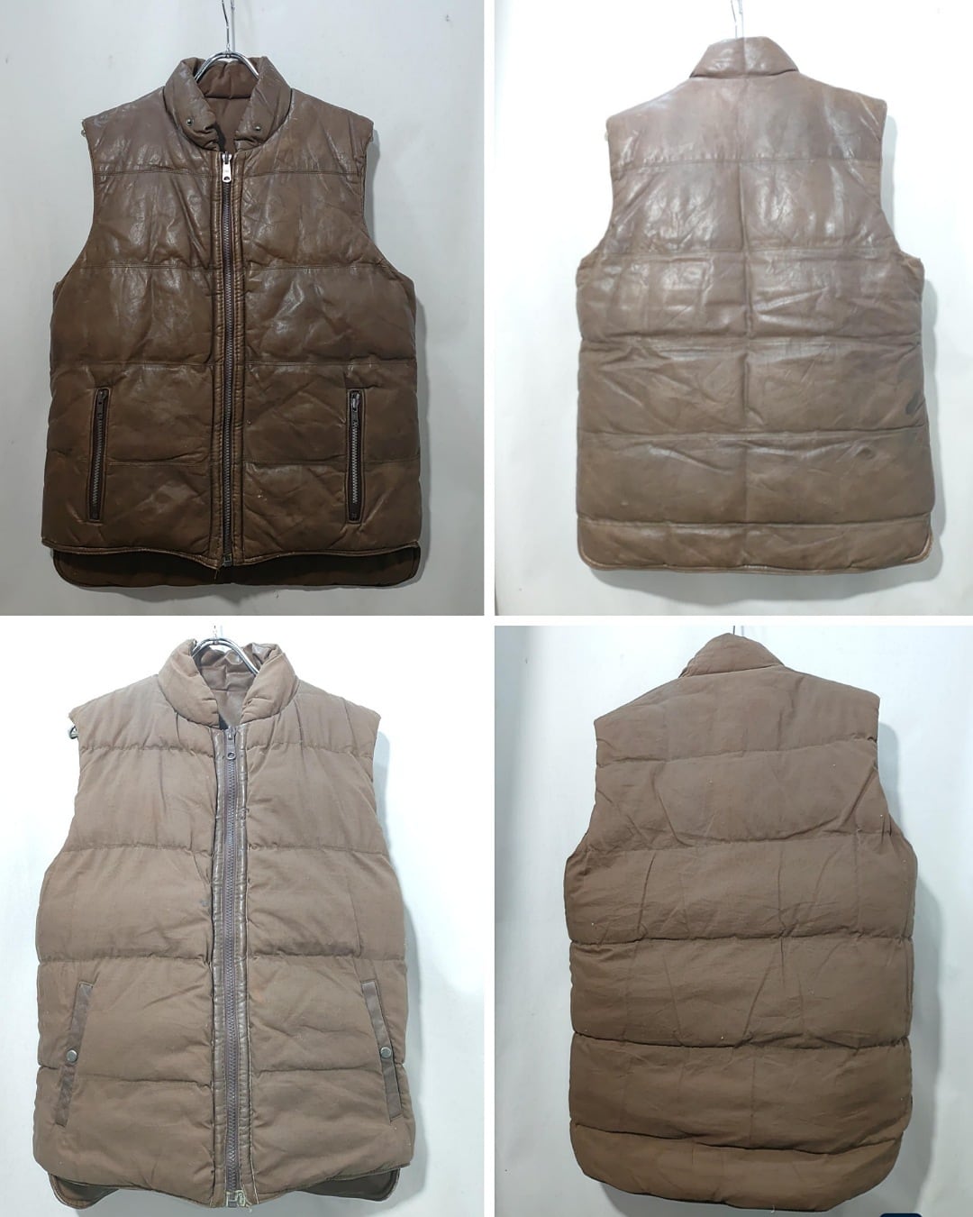 超一流ブランドの最前線で磨かれたセンスが、単なる無骨な古着とは一線を画し、このベストの細かなシルエットや素材選びに惜しみなく注ぎ込まれています。