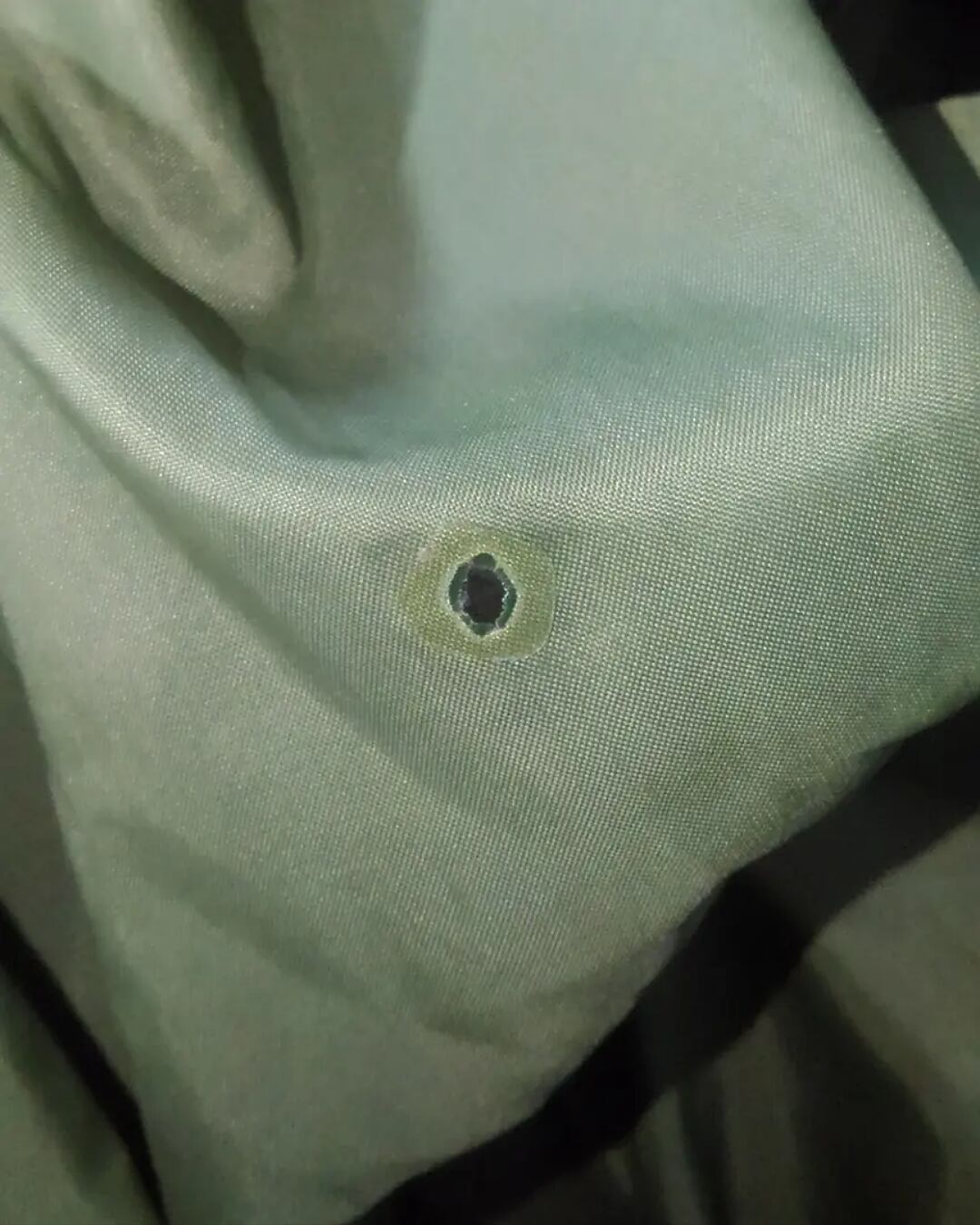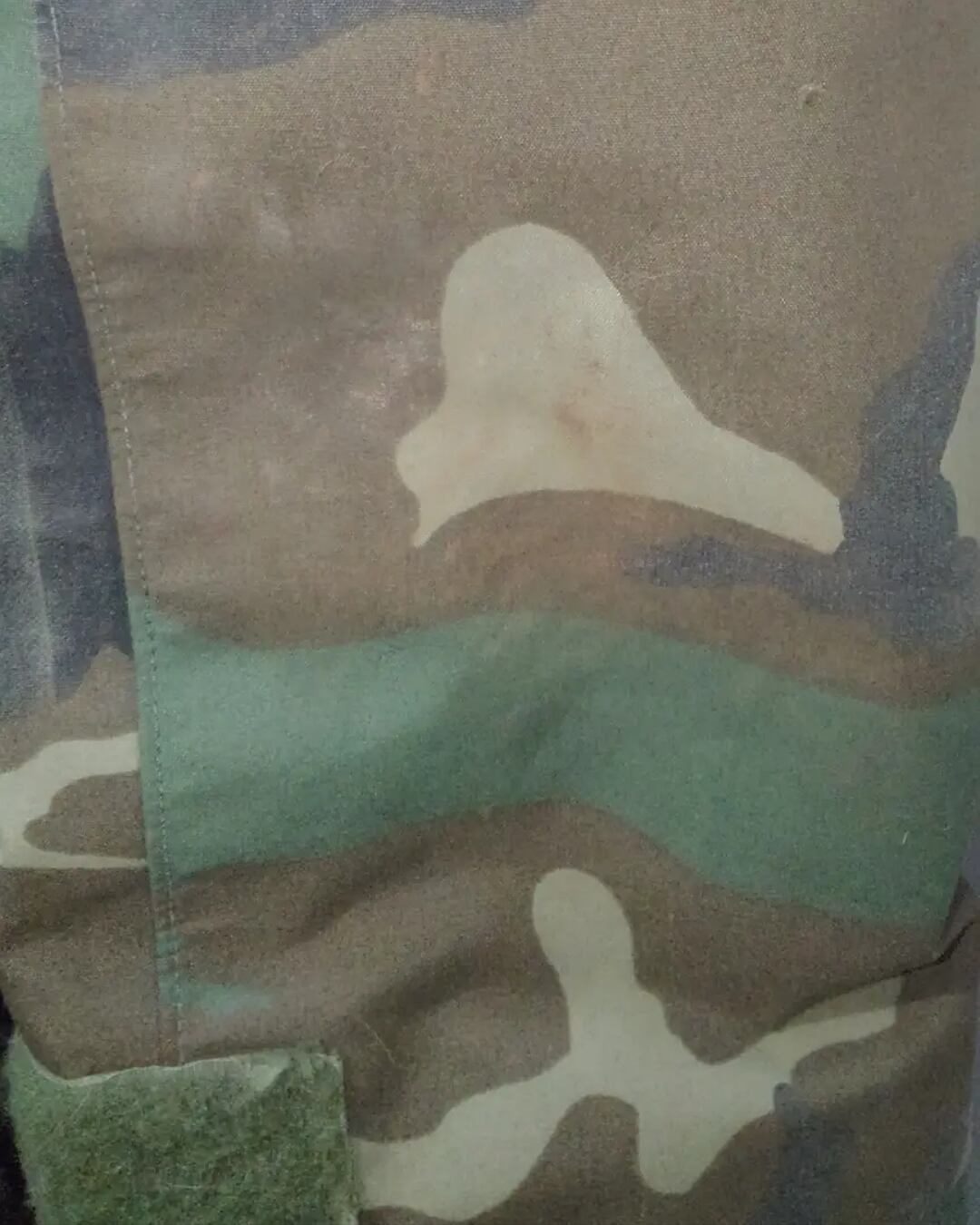全体的に使用感があり、細かな傷や薄汚れ、左肩口とフード部分にダメージがありますが、テント用の補修テープでリペアしてあるので支障はなく着用時にそれほど目立つモノではありません。