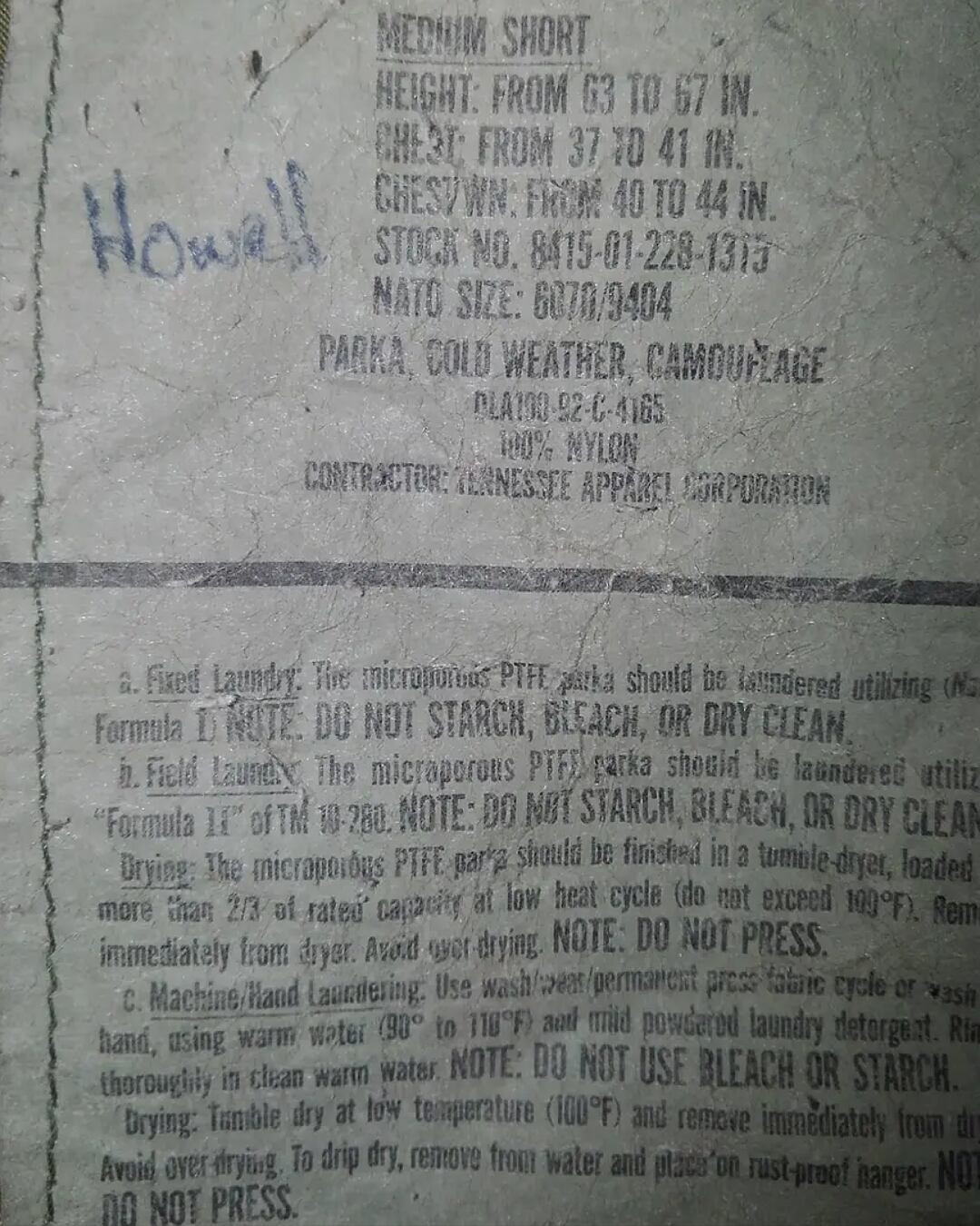 米軍放出時に押されるDRMO(Defense Reutilization Marketing Office)の赤いスタンプがライナーに入っています。