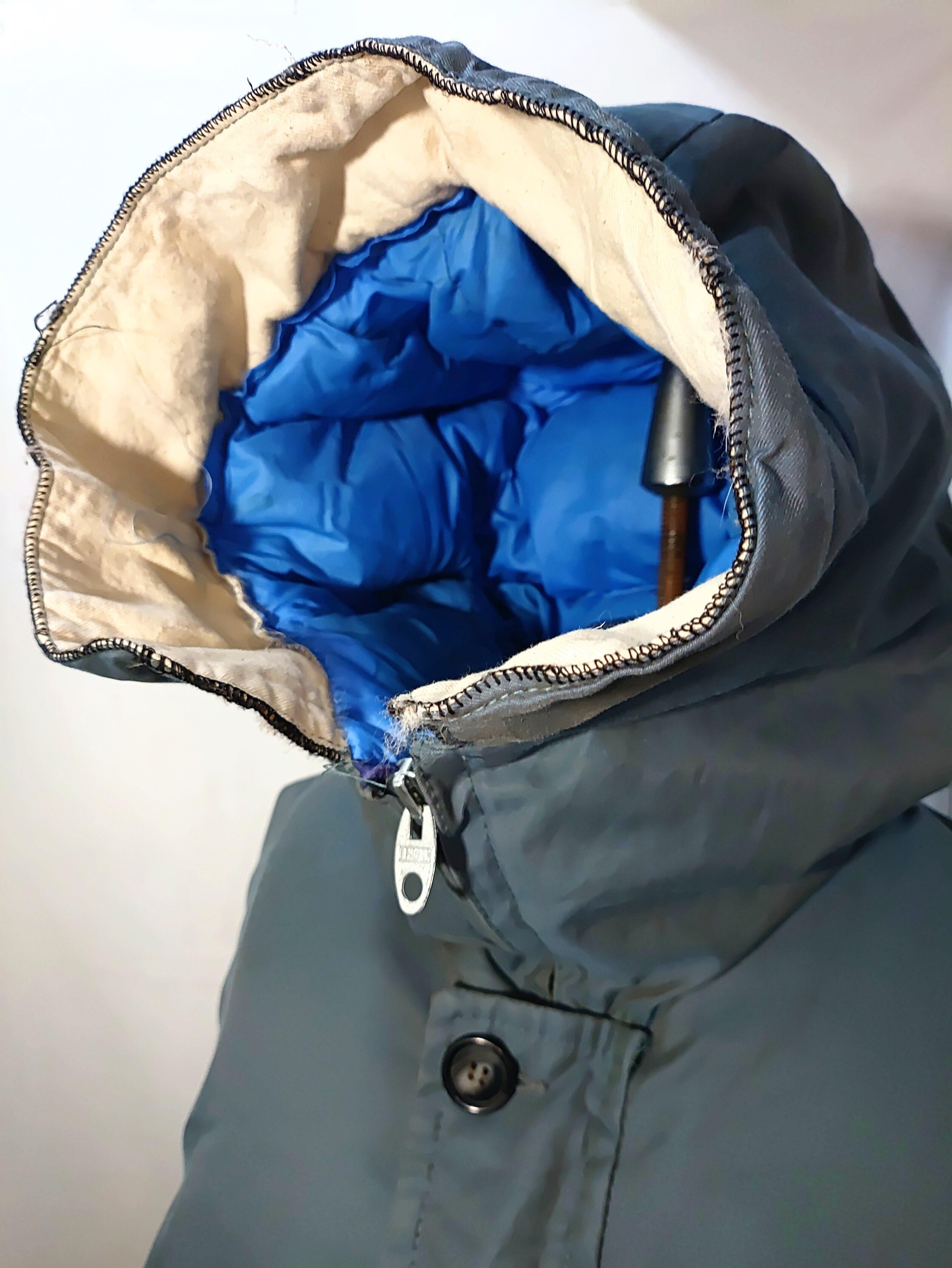 ダウンはフード部分までパンパンで50-60年代の個体としては驚くほどダウンのボリュームが残っており、現代のハイテクダウンにも劣らない防寒力があり、フードの立ち上がりも抜群です。