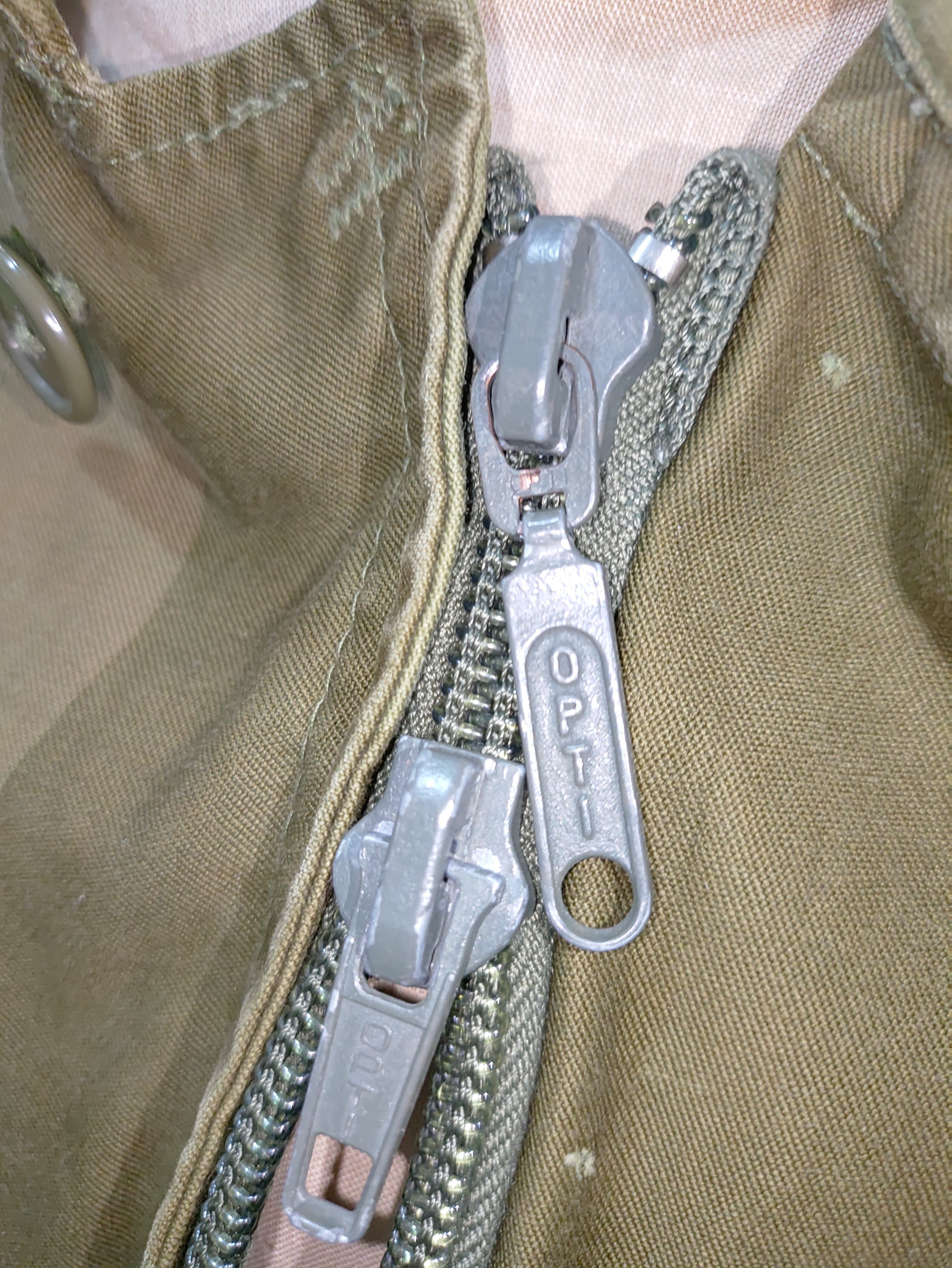 フロント比翼はスナップボタンと「OPTI社」製のジッパーの二重構造。