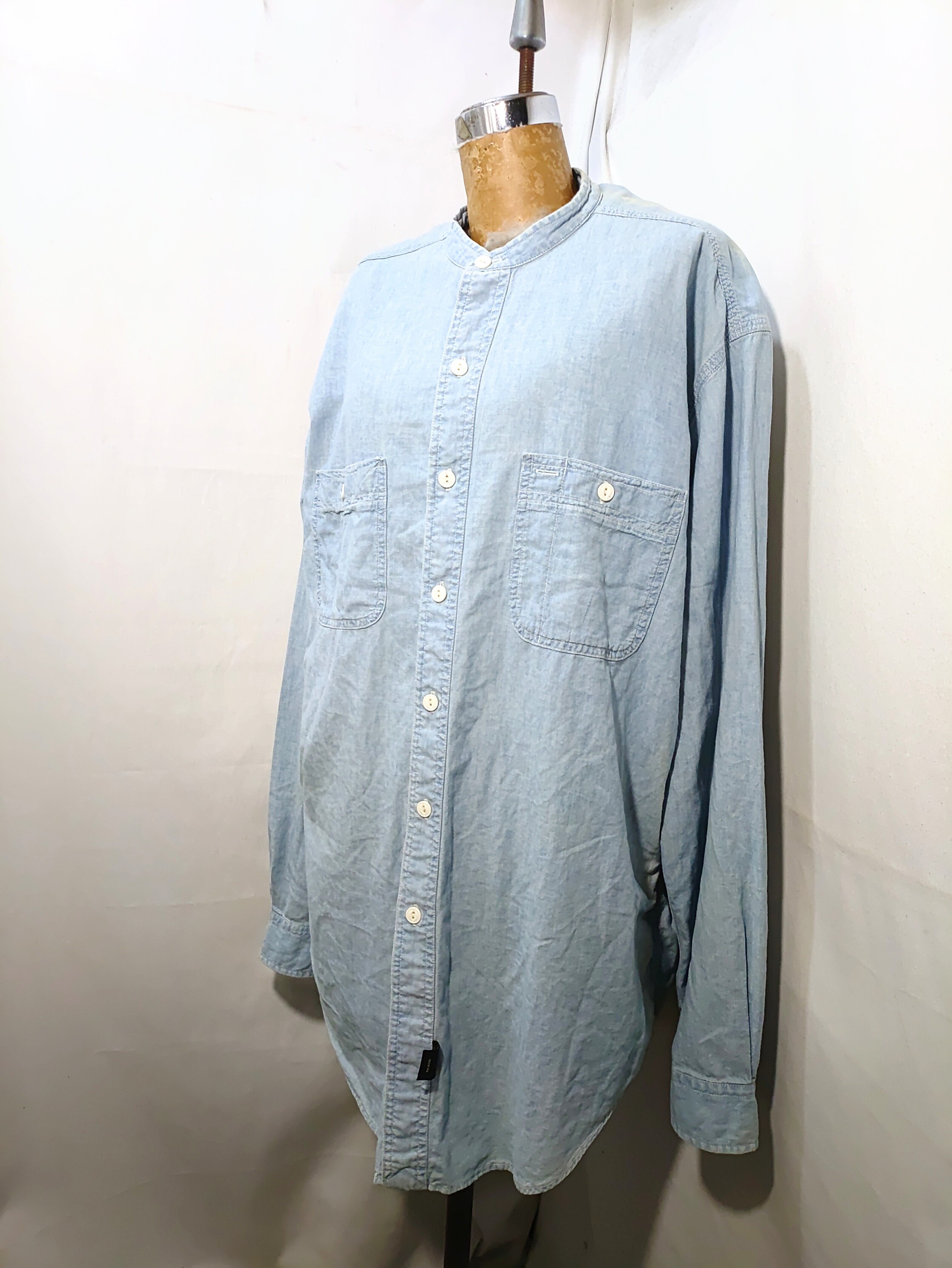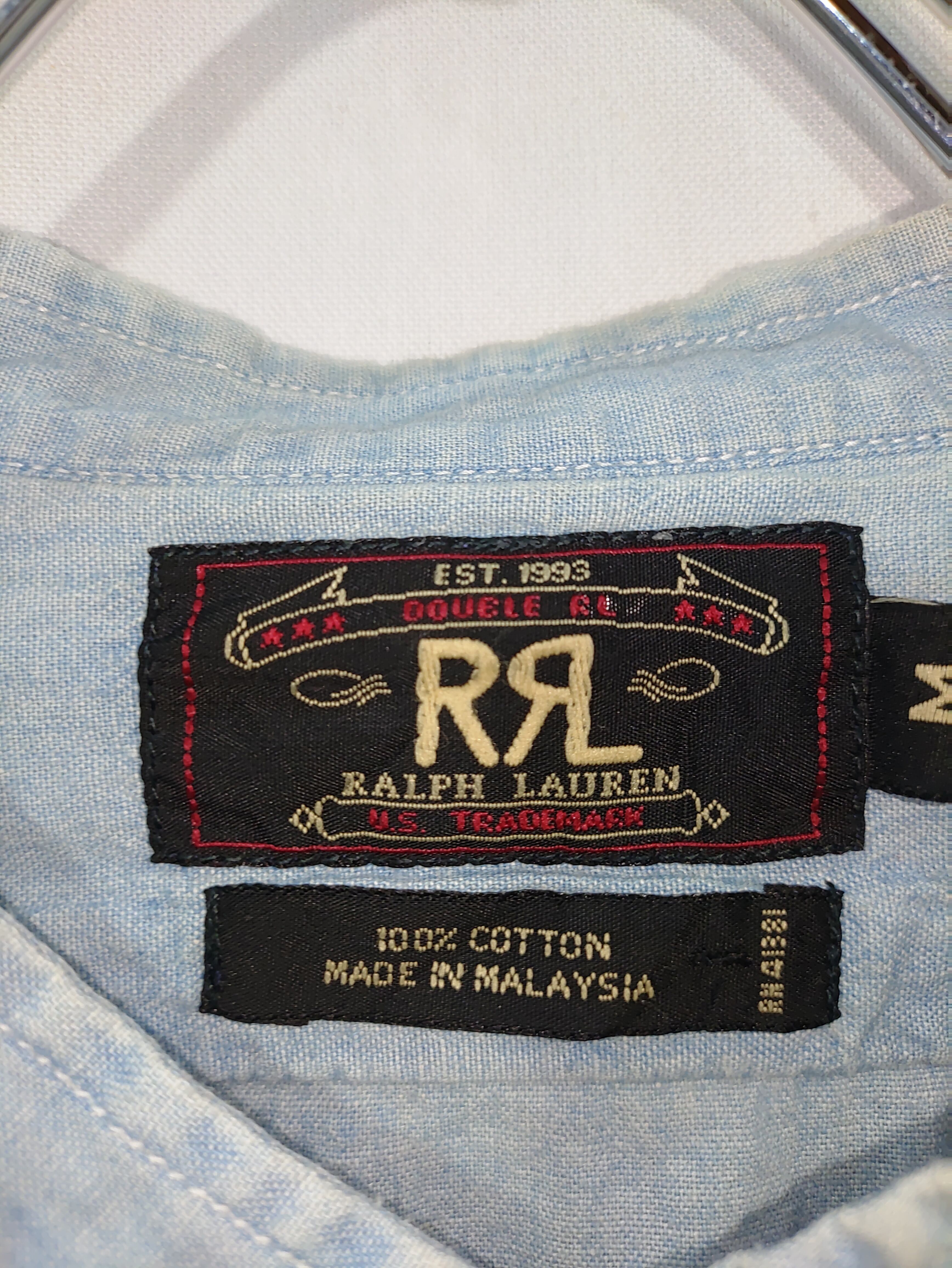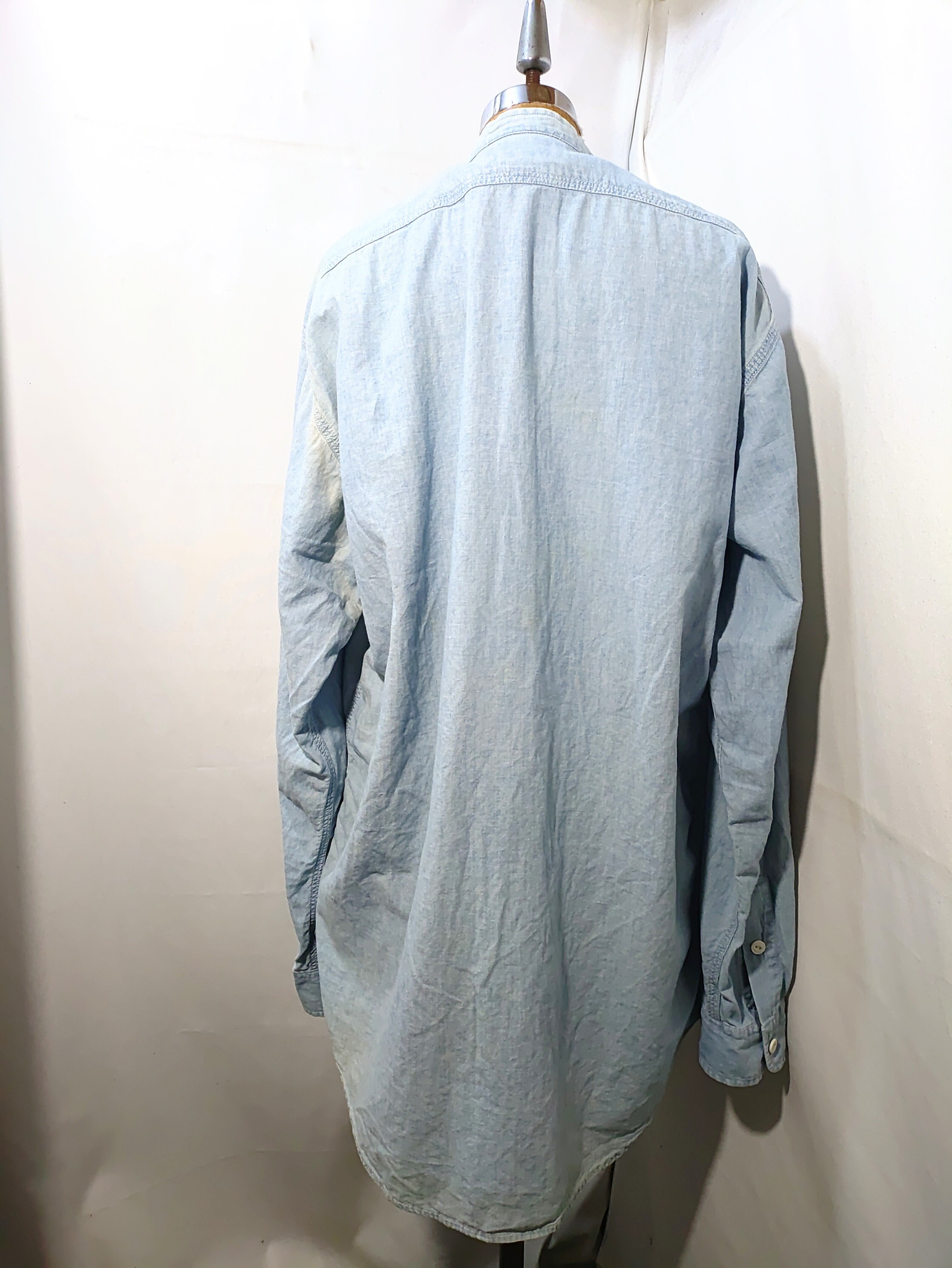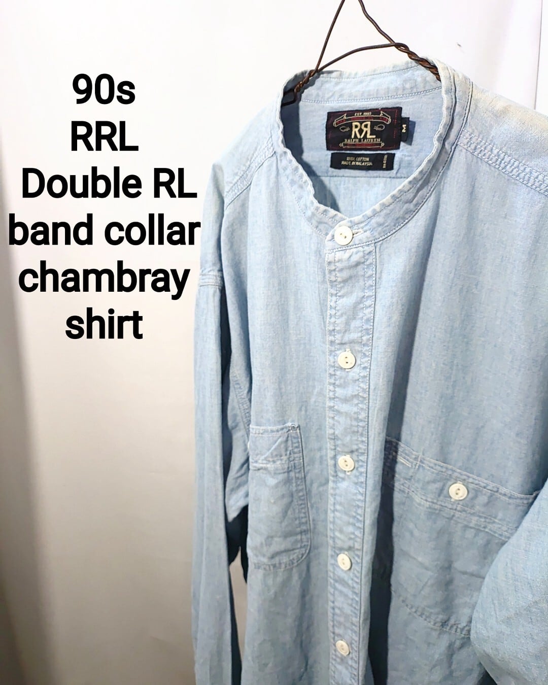 90年代頃のブランド初期である「三ツ星タグ」が付いたRRLのバンドカラー シャンブレーシャツです。