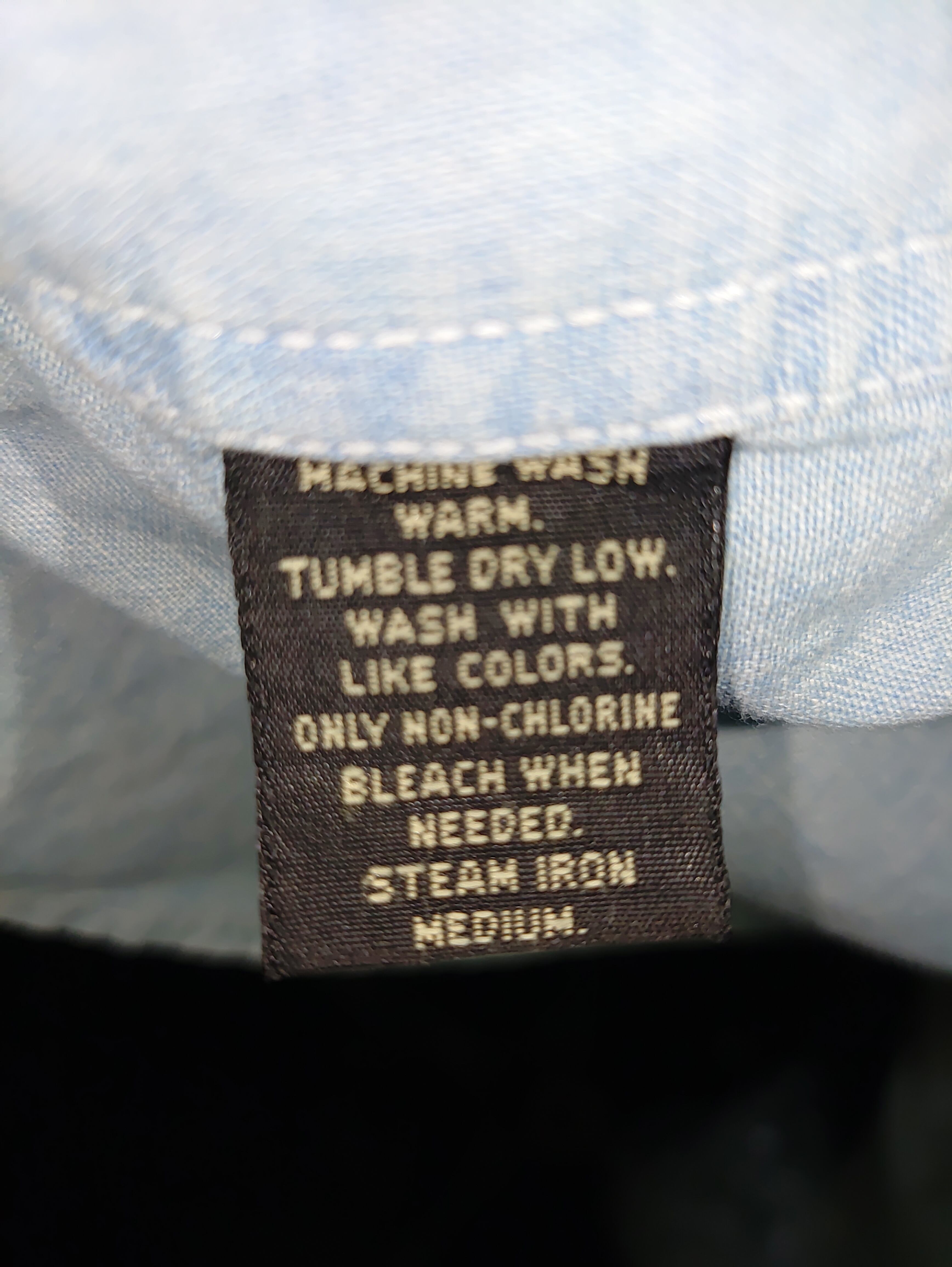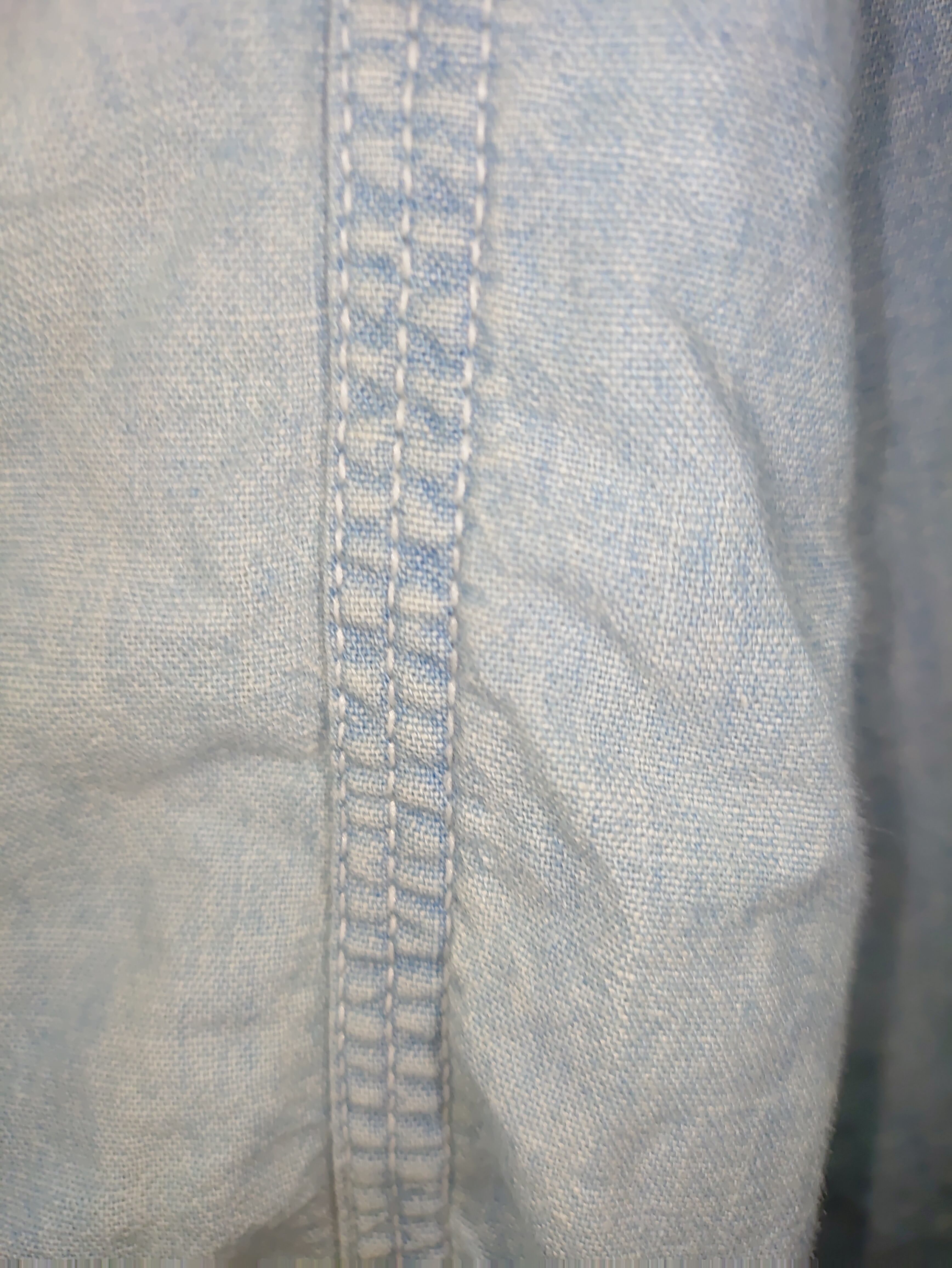素材は経年変化を楽しめる100%コットンで、淡いブルーに色落ちしたシャンブレー地はこの年代特有の非常に深みのある表情をしています。