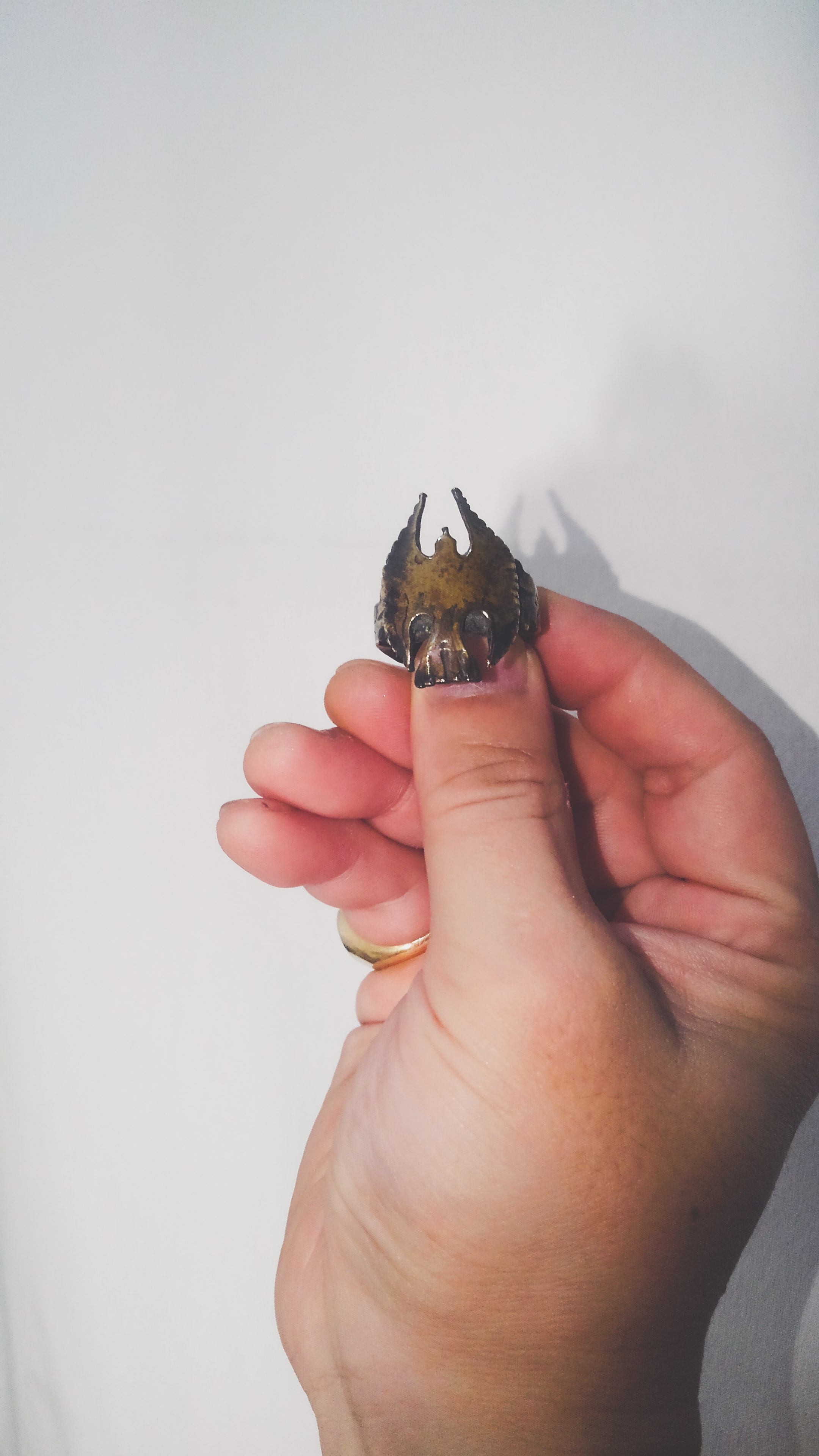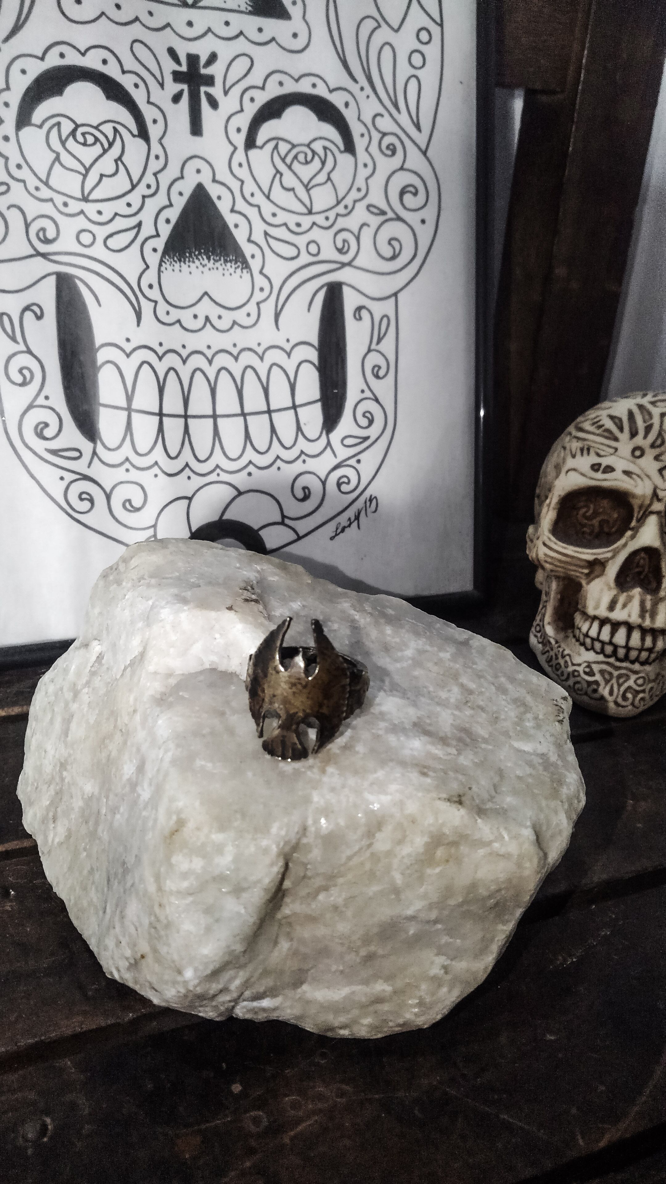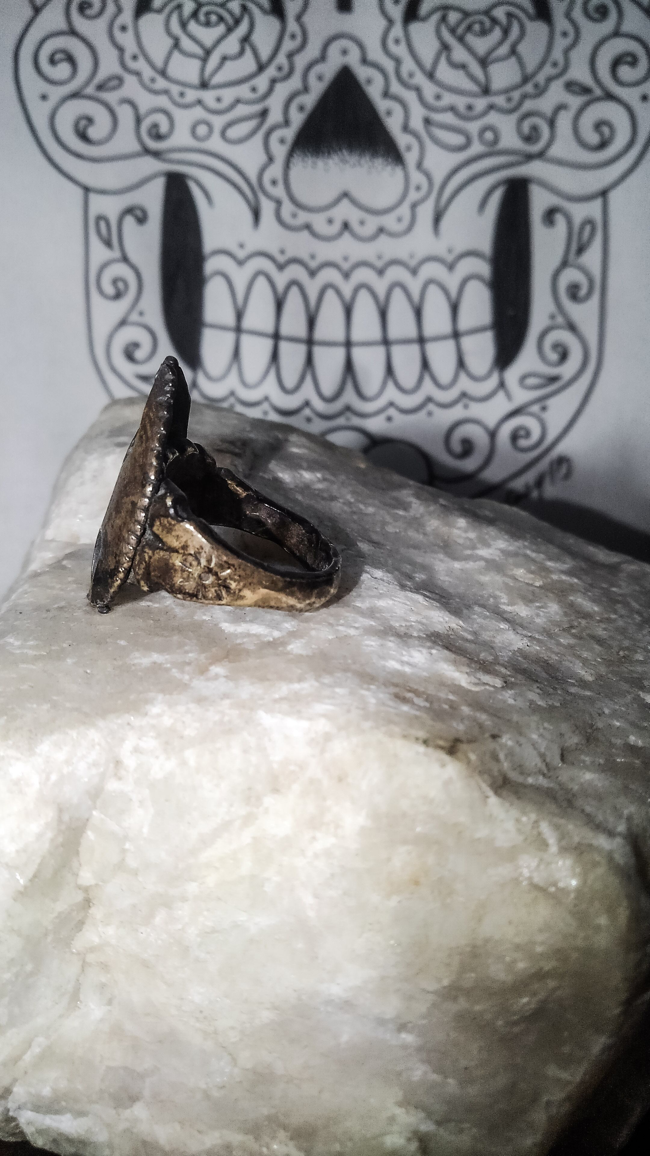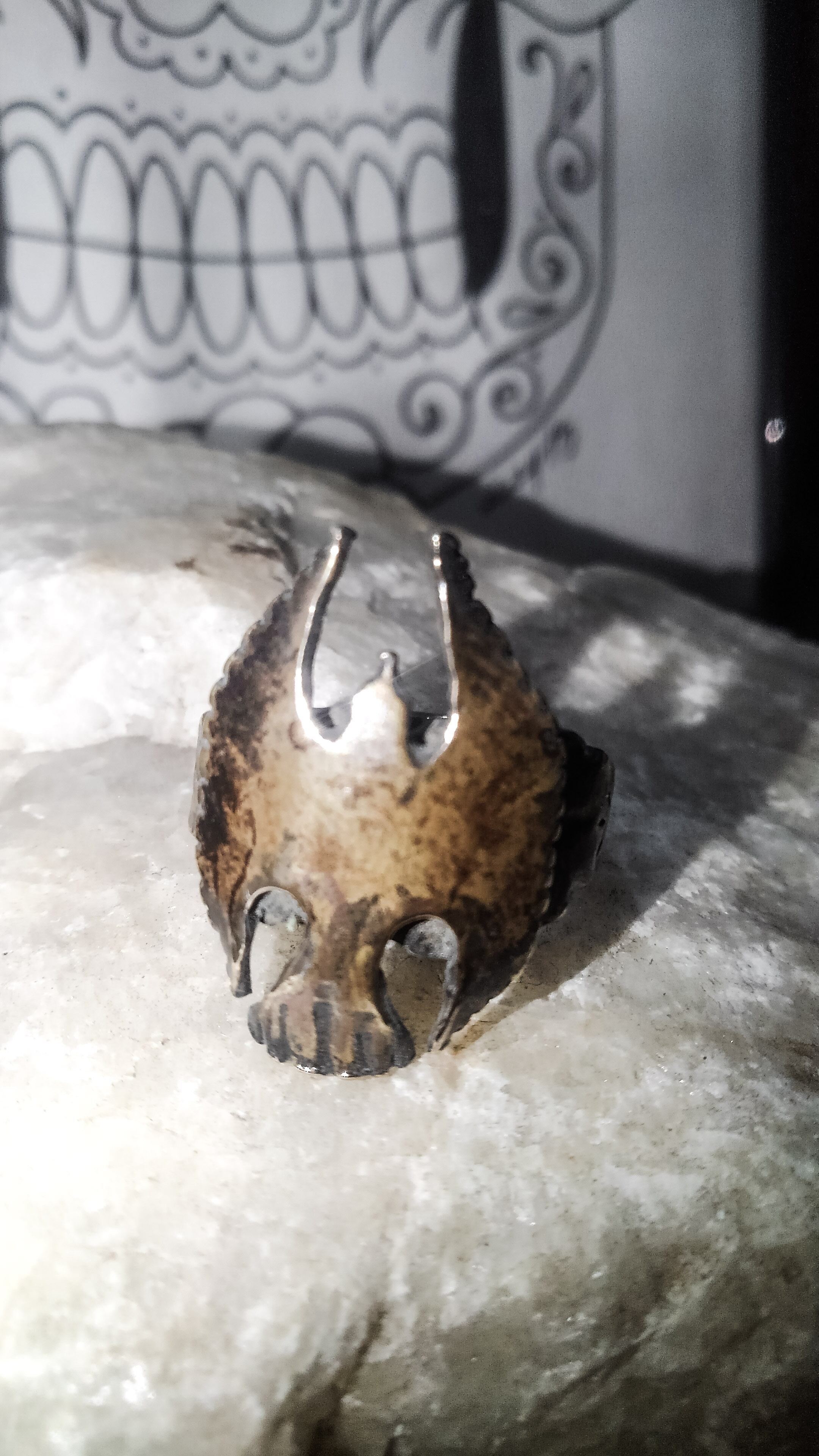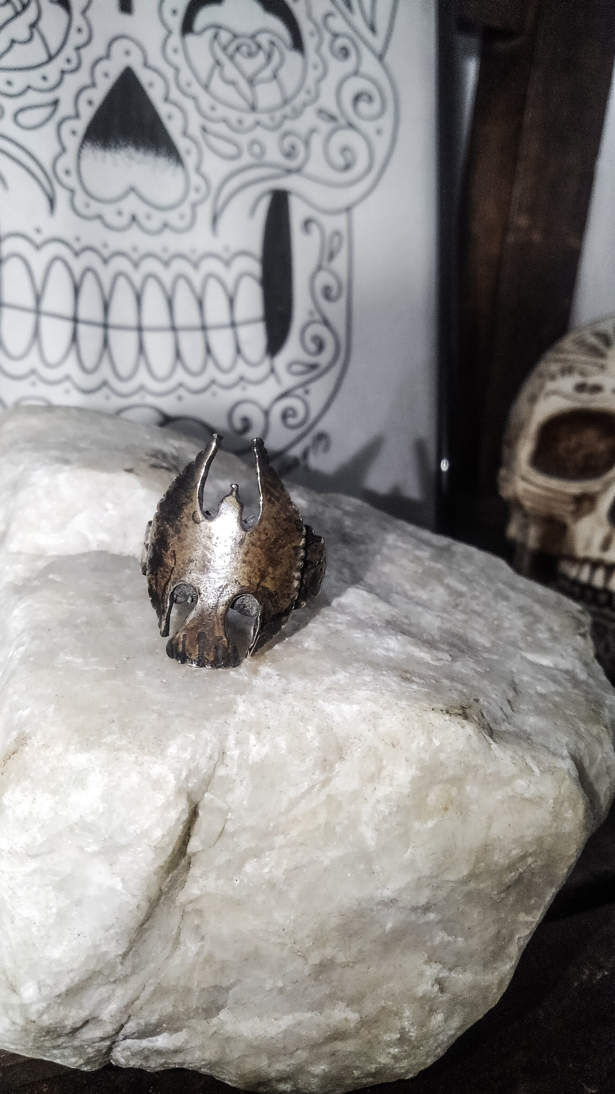 ネイティブアメリカンの部族の間に伝わる神鳥である"サンダーバード"をモチーフに地金を削り出し表現した真鍮リング。