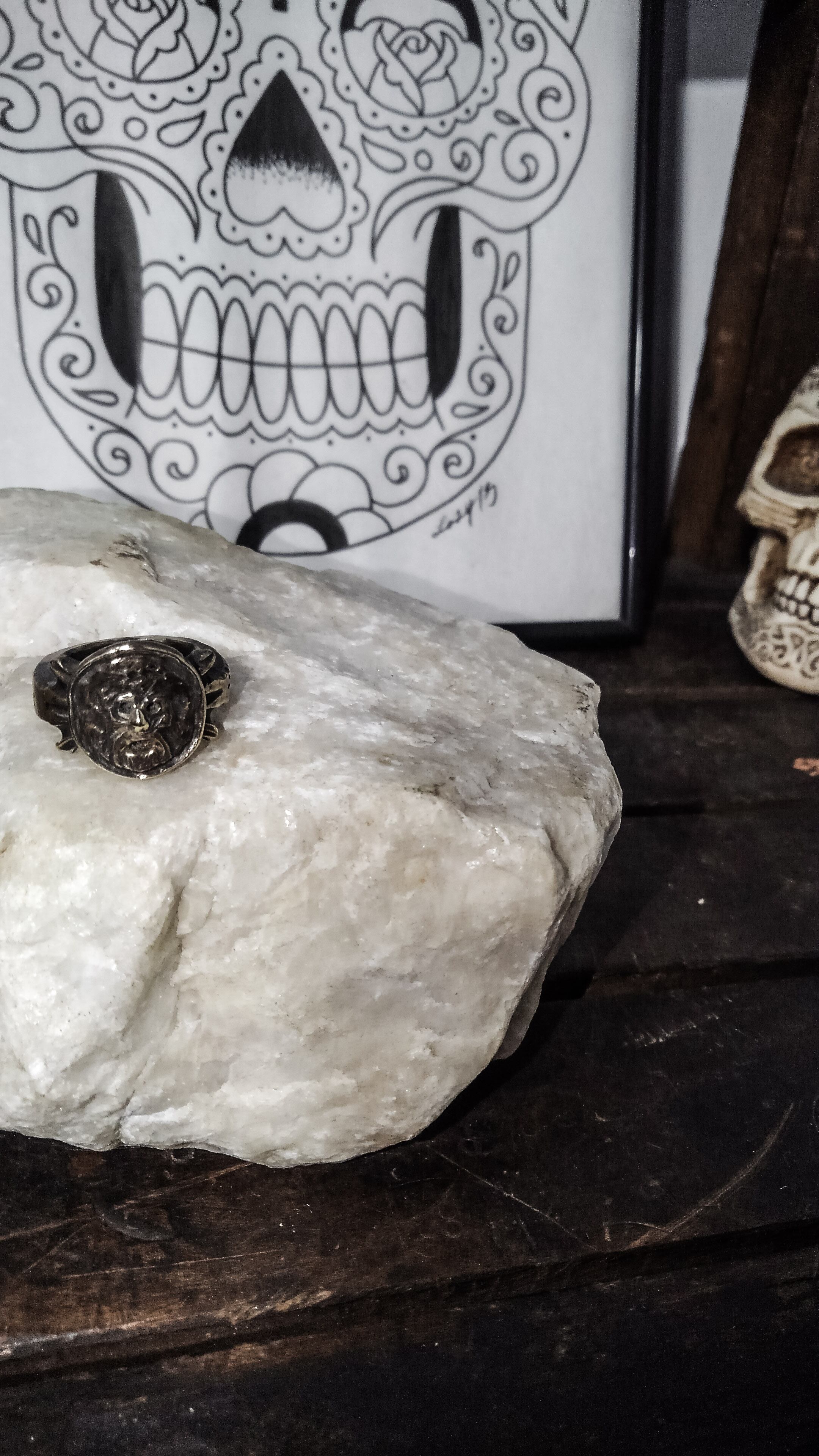 ローマにある『真実の口』をモチーフに作製した指輪です。