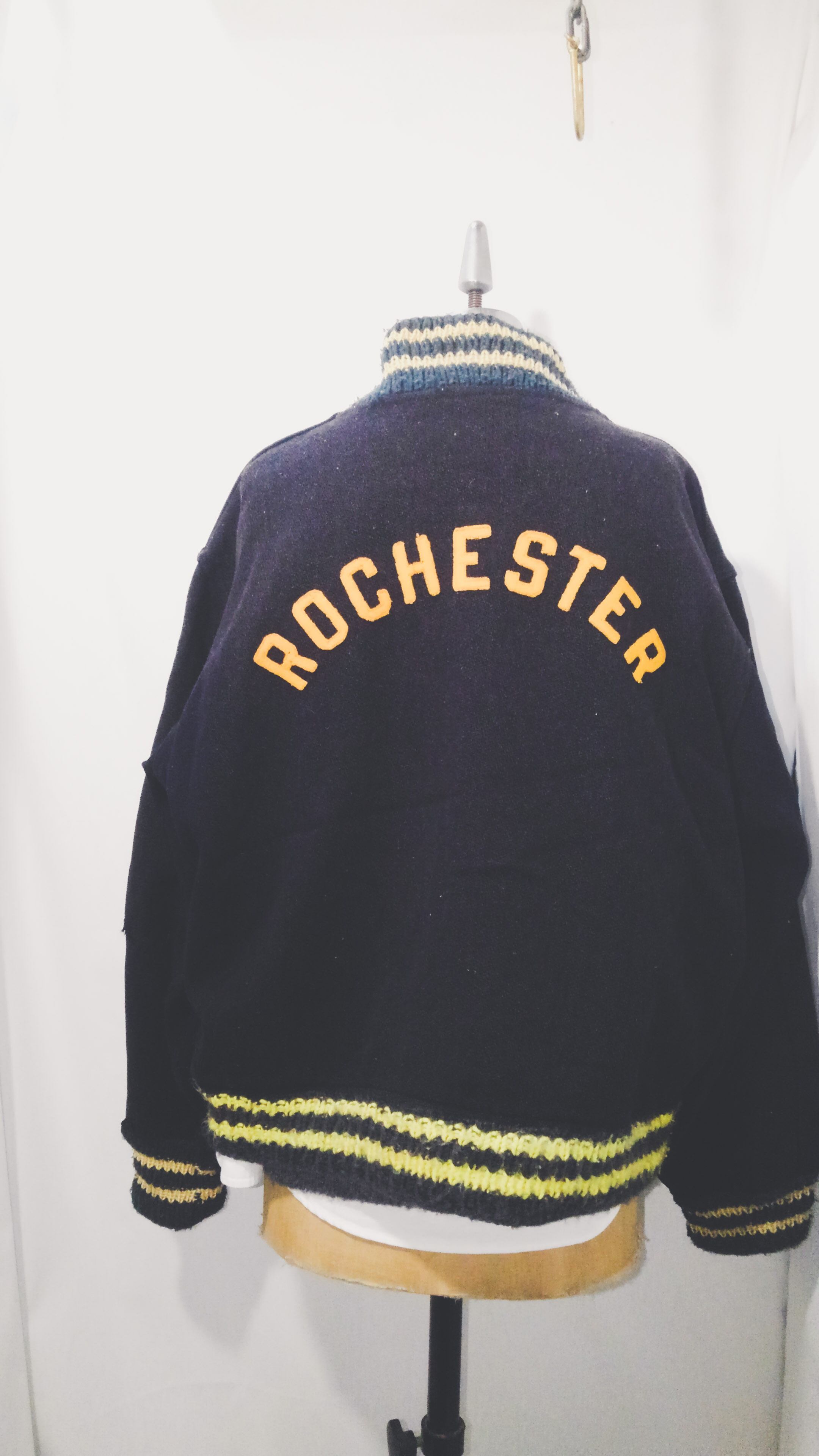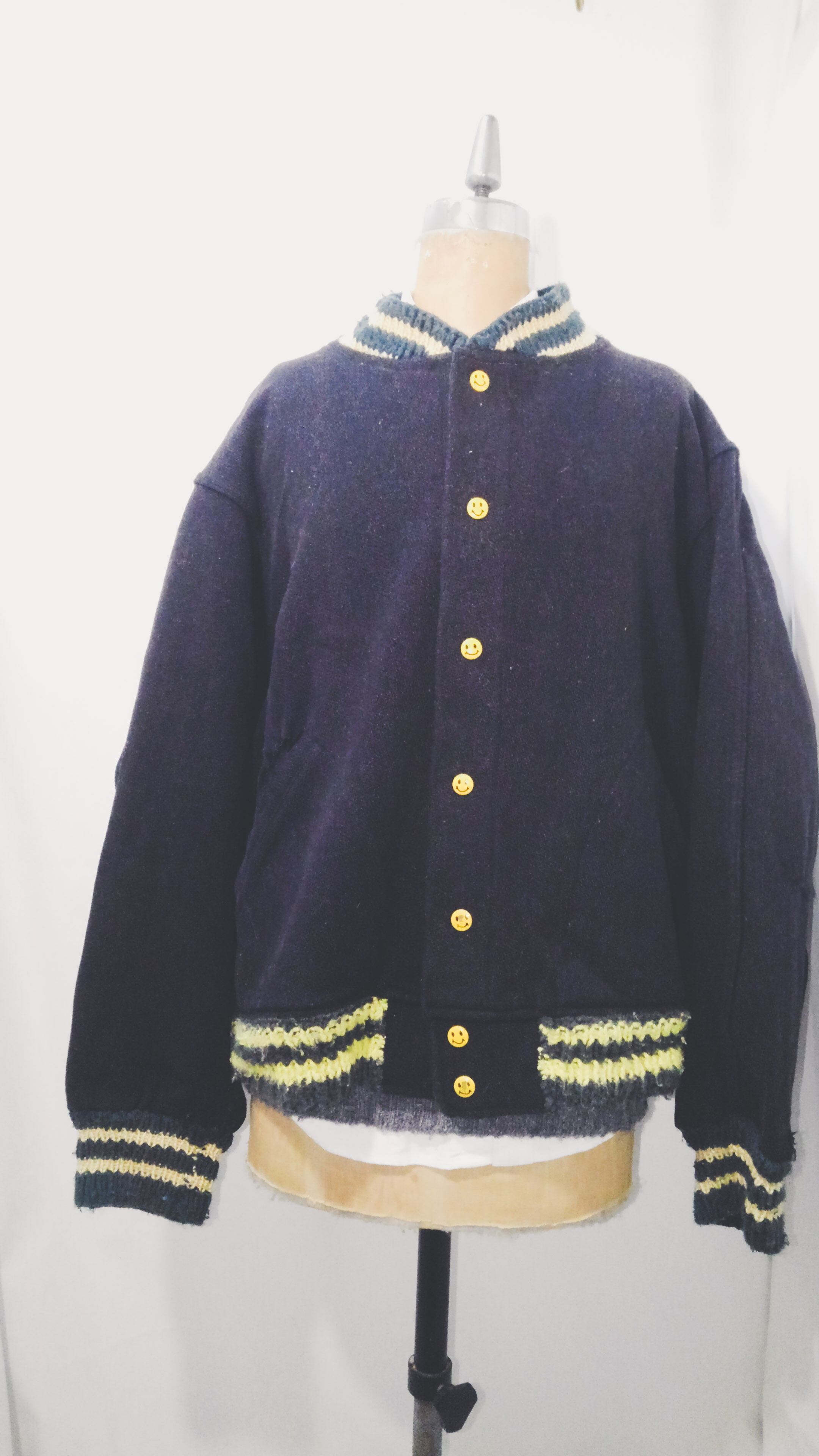 素材はウールでリブは全てニット素材のスタジャンタイプ。前オーナーのリメイクなのかフロントのスナップボタンは全てニコちゃんマークとかなりの珍品。