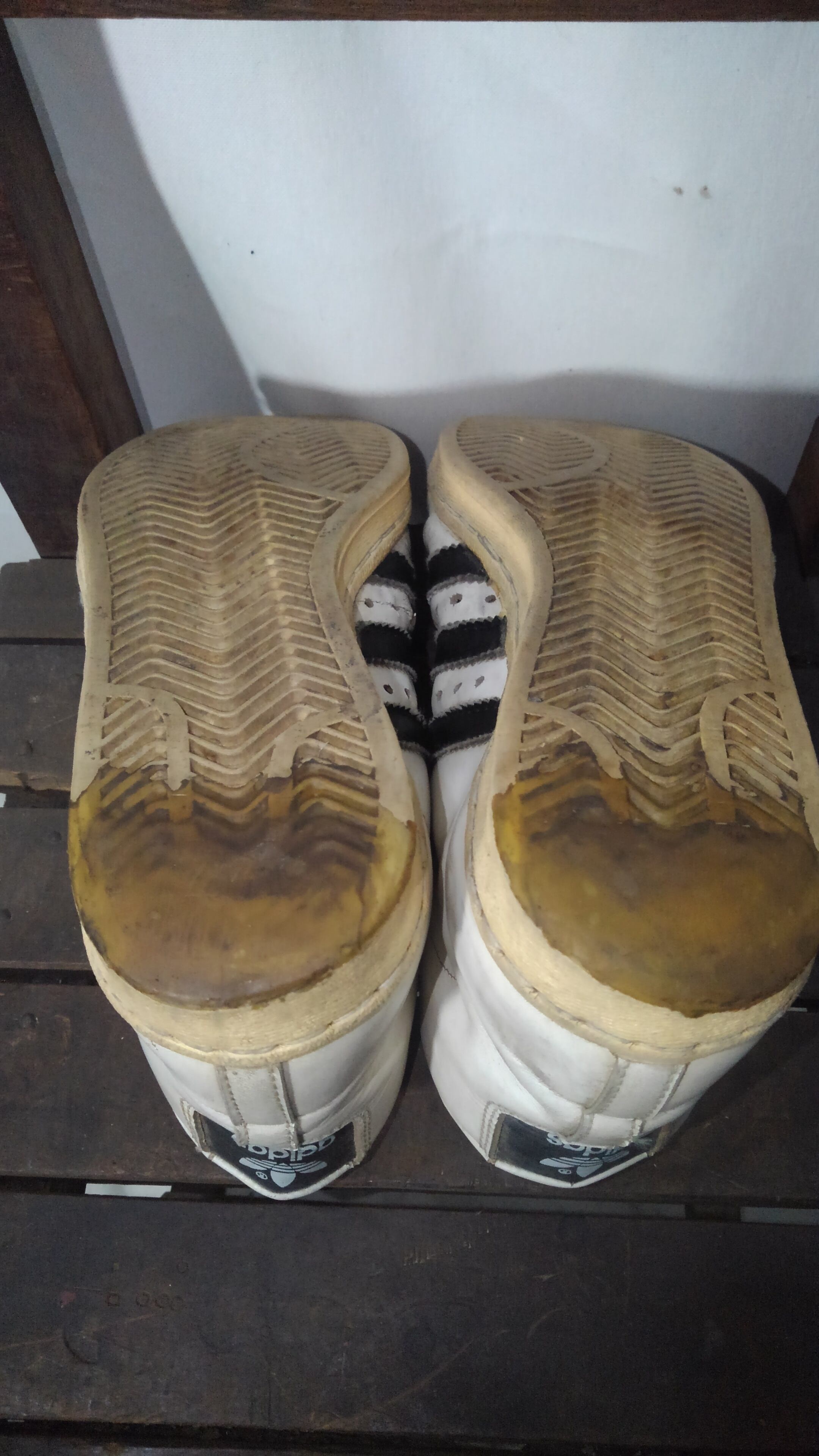 ソール踵部分リペアあり、アッパーひび割れ
