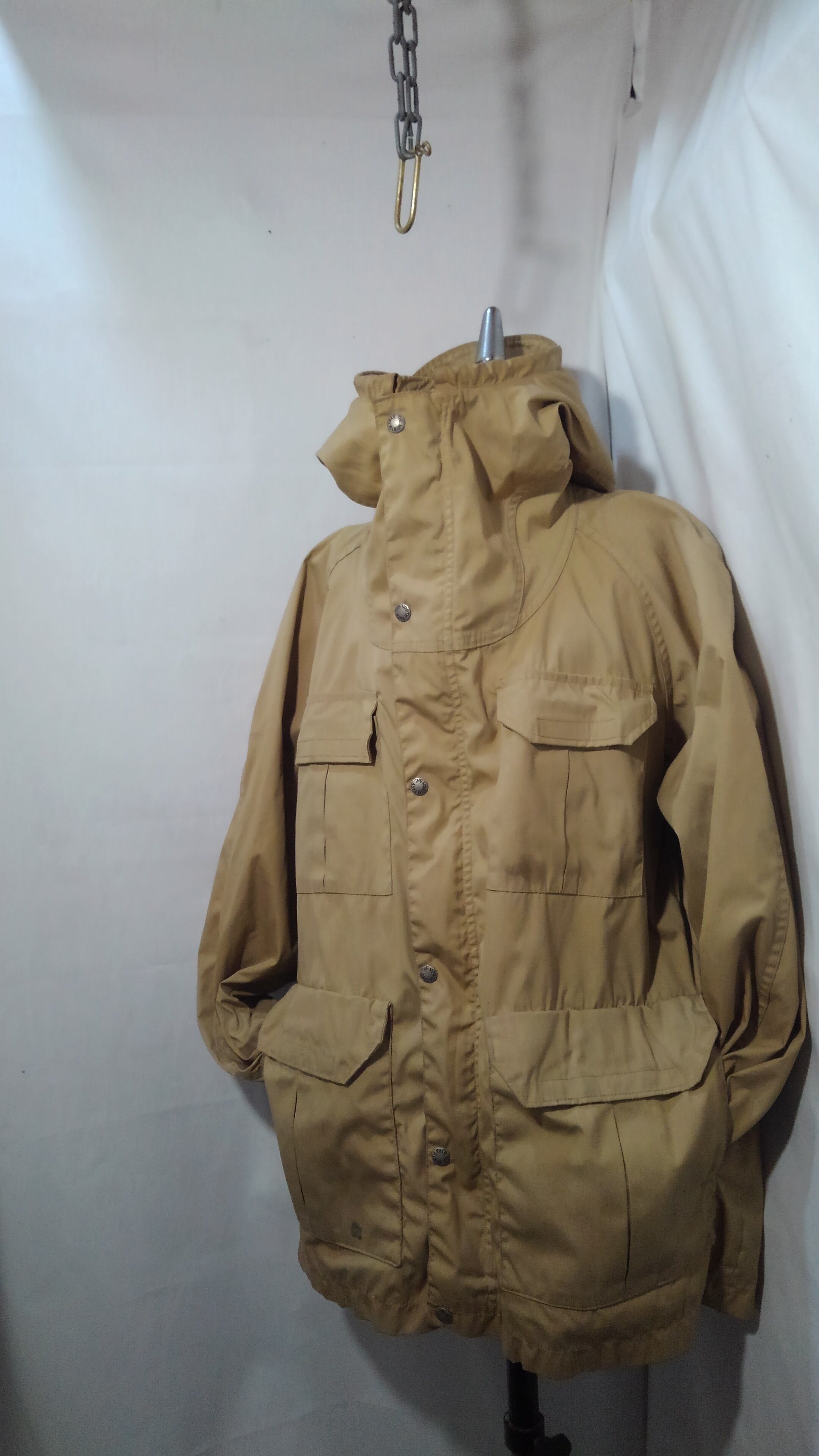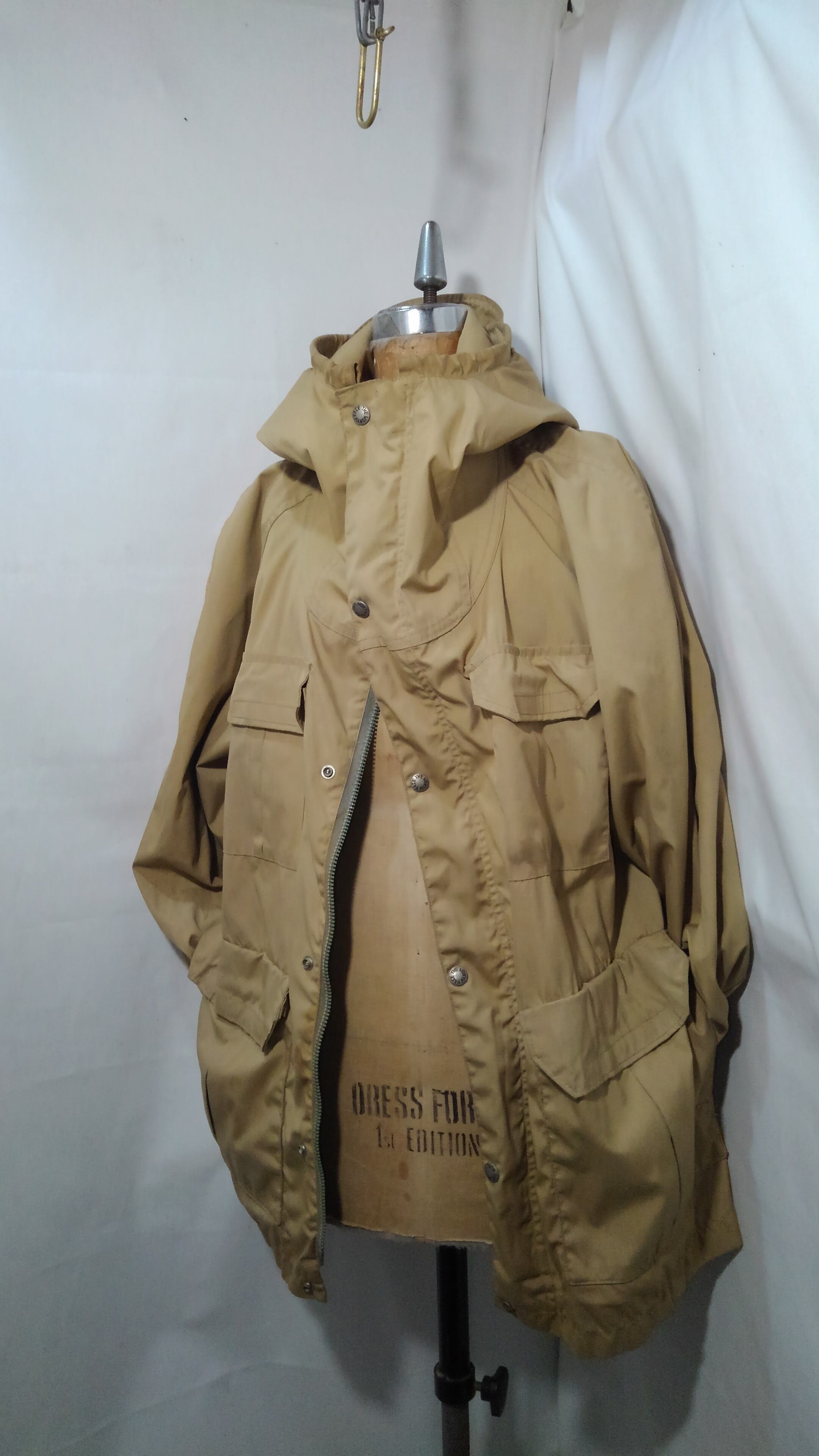 70年代から80年代頃のTHE NORTH FACEの マウンテンパーカーです。日本でのライセンスが始まる前のオリジナルの希少な茶タグモデルです。ベージュ×ネイビーのアースカラーはスタイルを選ばずとても合わせやすいです。着丈は長めで、ハーフコートのような感じで着用して頂けます。