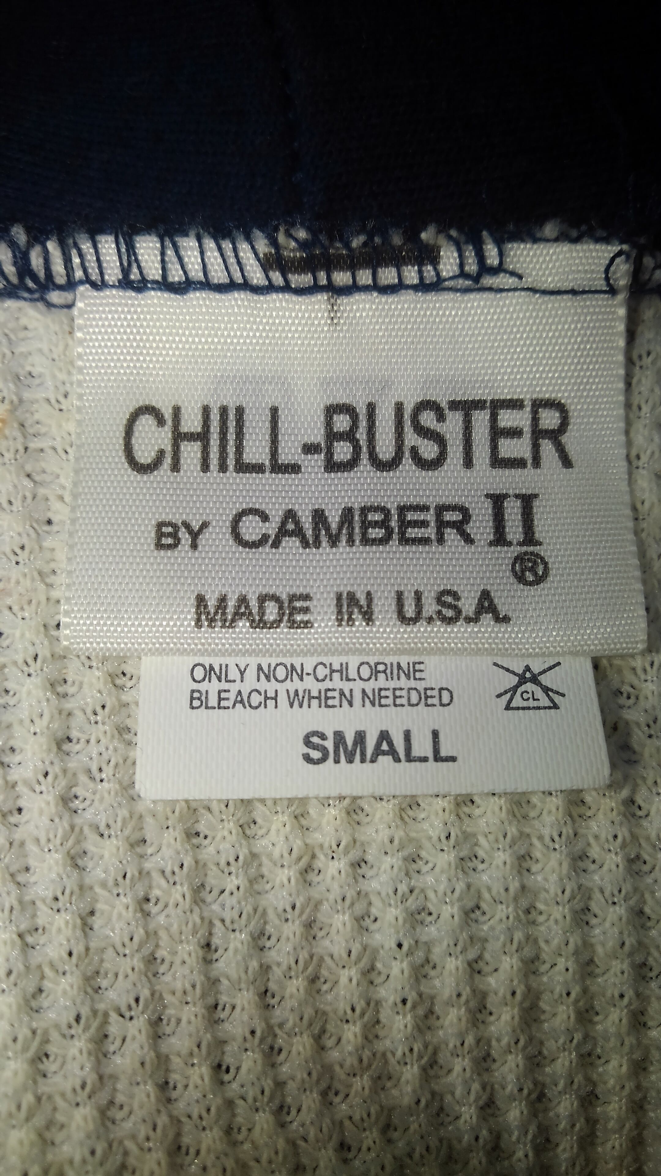キャンバーのスウェットの中でも人気が高いのはこの『CHILL BUSTER』と言うモデルで7.5オンスのスウェット生地に6.5オンスサーマル生地を裏地に使っている為、アウターとしてもインナーとしてもちょうど良いと言うのが人気の理由ですね。