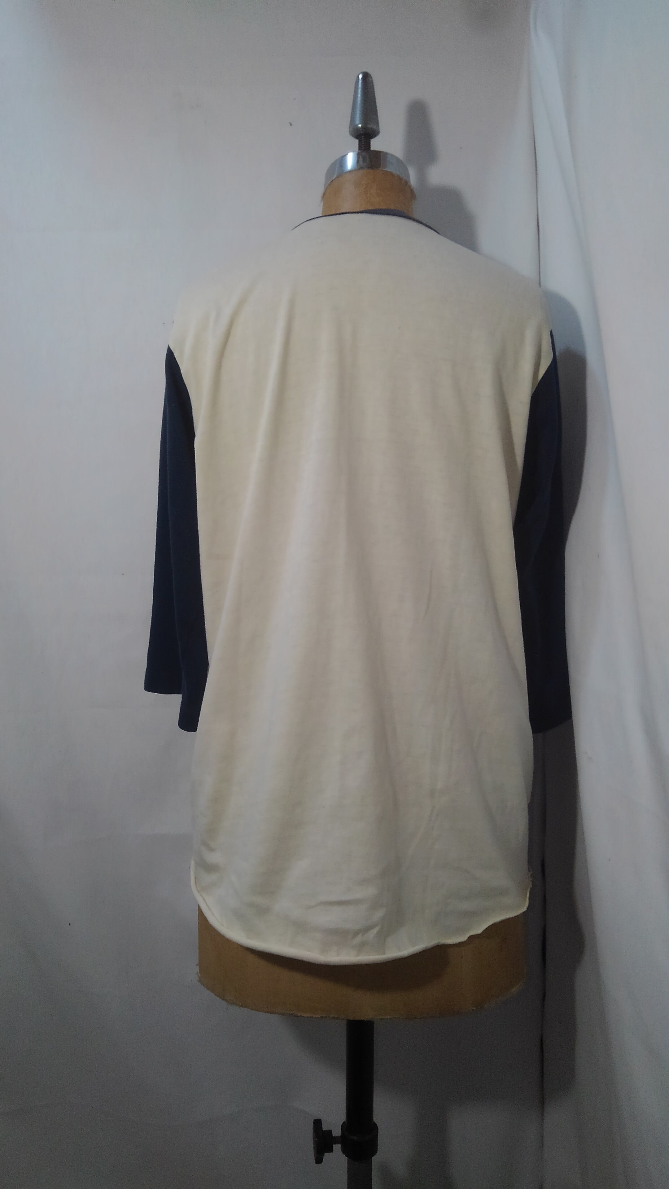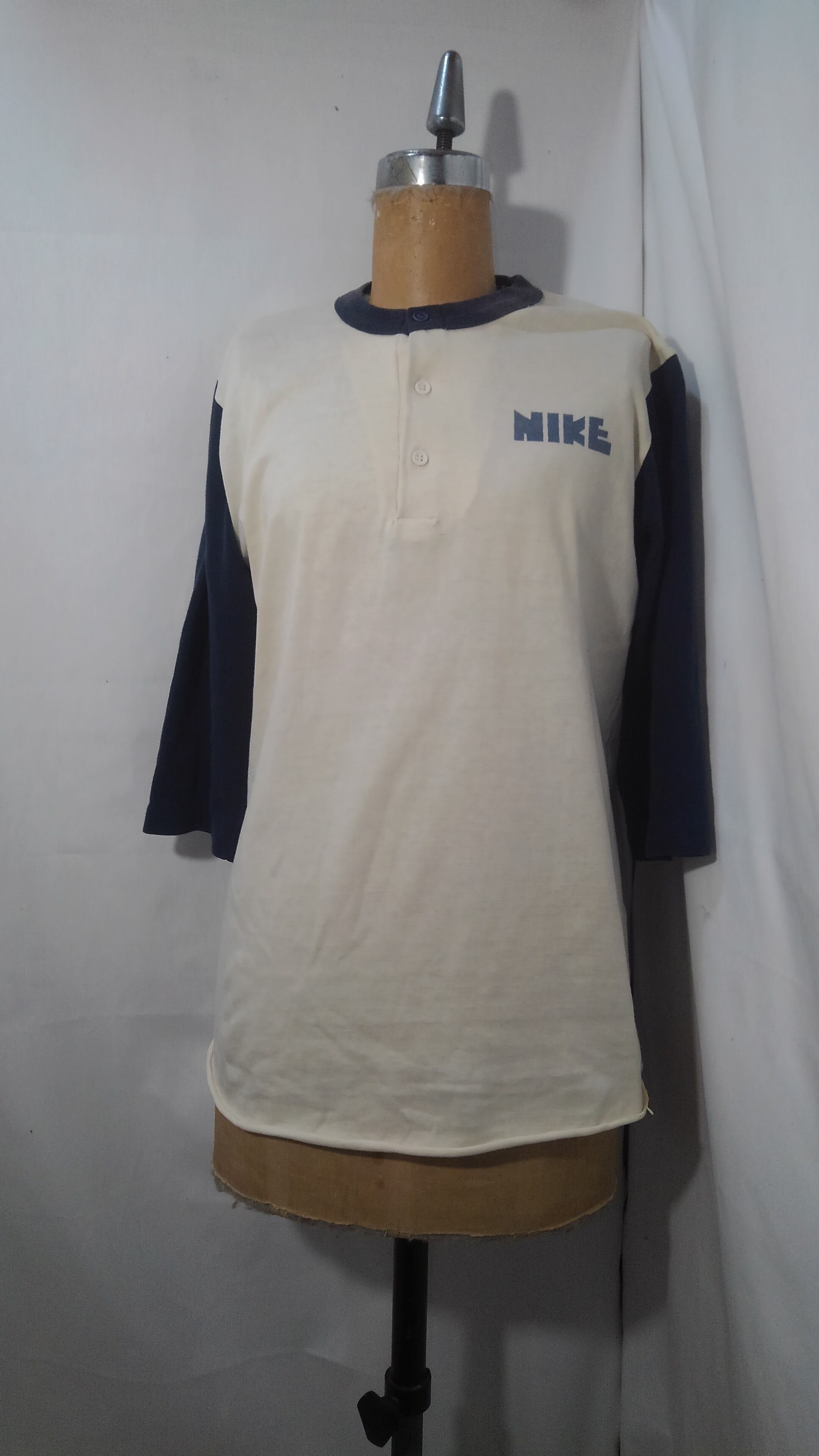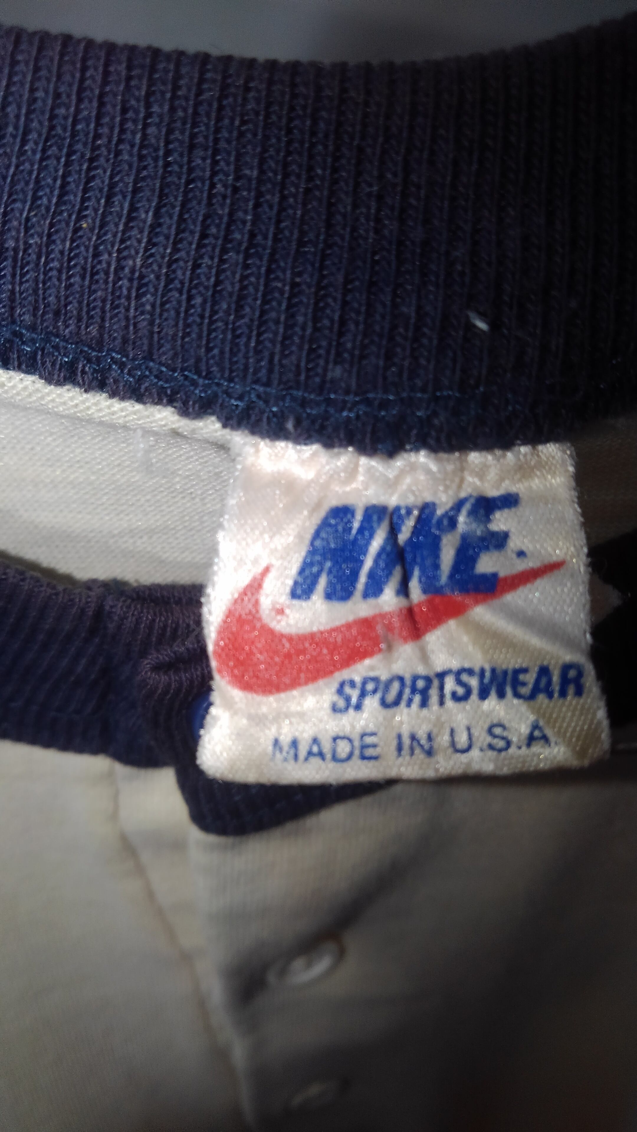 ヘンリーネックの七分袖で特徴はトップボタンの色を首リブの色にあわせてあるところです。細部までこだわった作りで、近年は復刻も沢山出ていますが、オリジナルは本当に少なくなって来ました。NIKE好きの方には是非オススメのアイテムです。