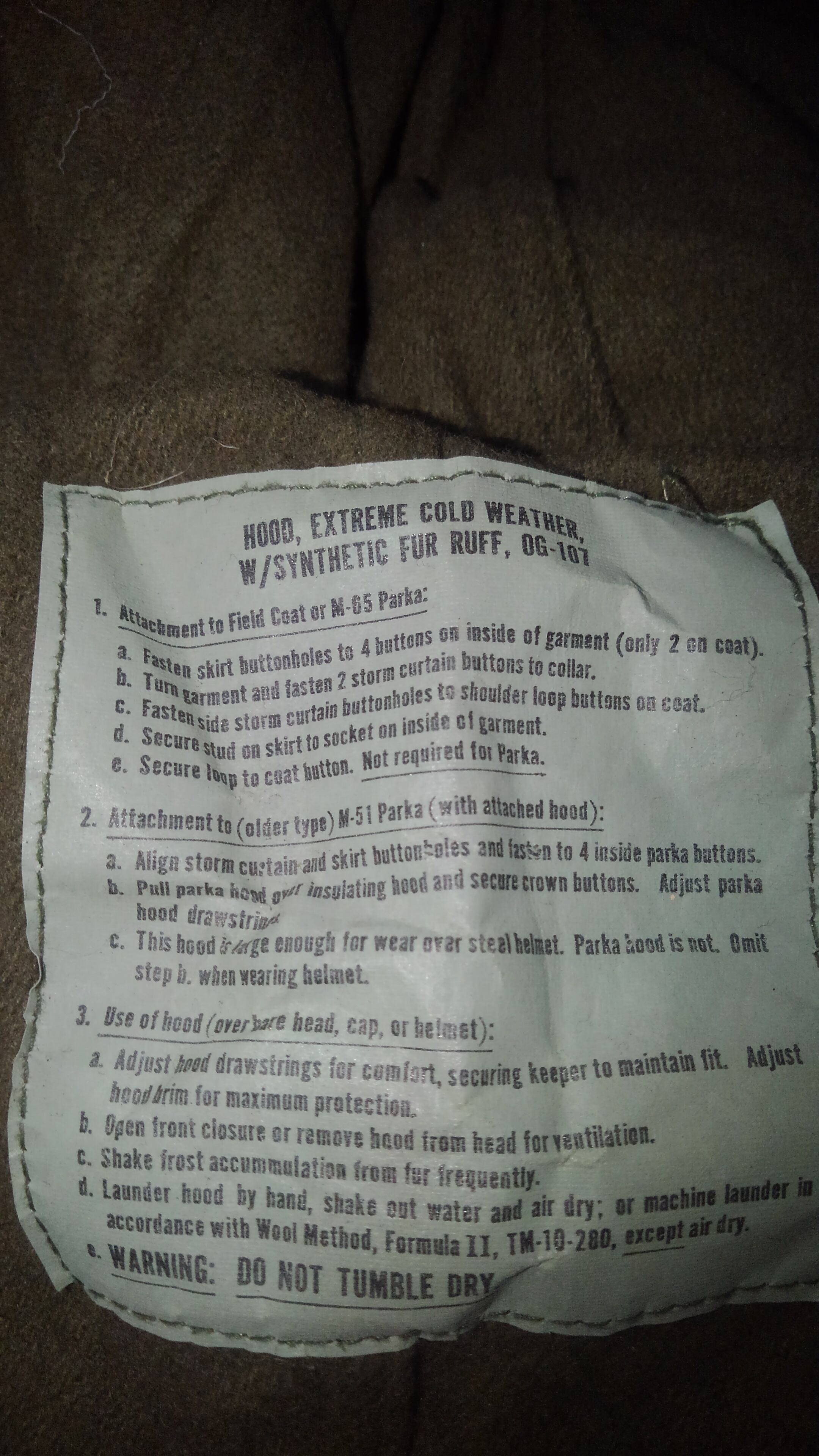Vintage M-65 parka or Field coat Hood dead stock 80s