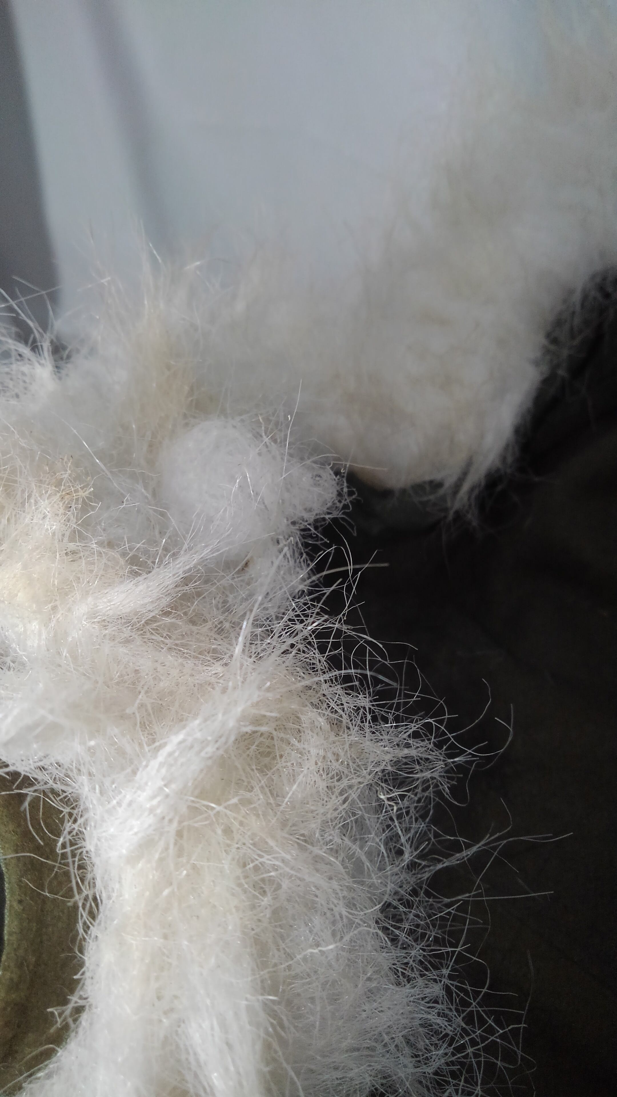 アクリルのファーは、汚れたり、抜けたり、縮れたりしてきます。
