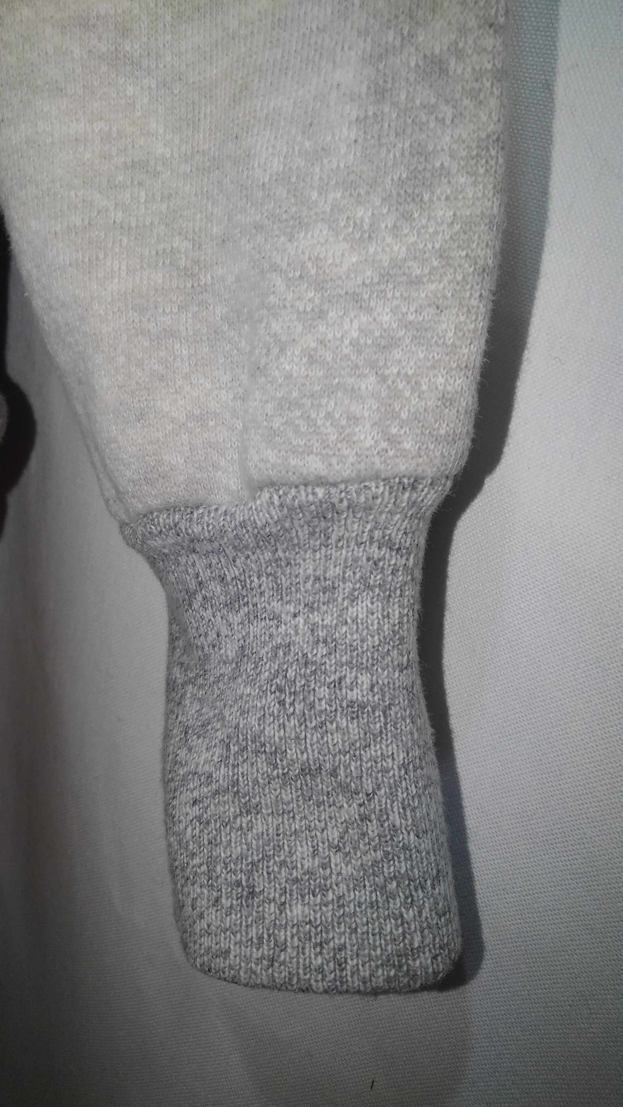約10cmほどある長いリブは通称「ハラマキ」と呼ばれ縫い目のない筒状の物と言う事から「吊り編み機」で作られたのだと思います。