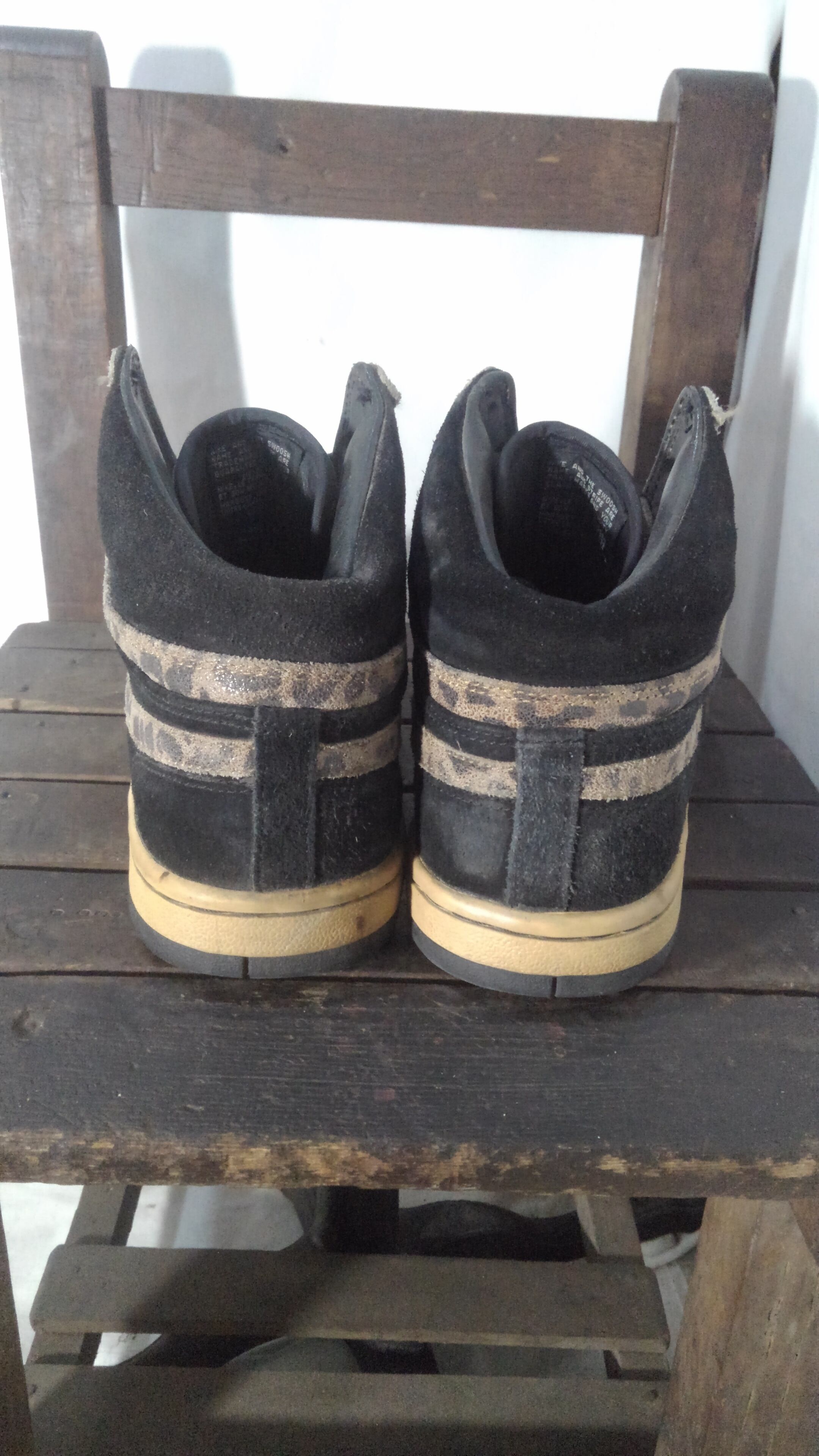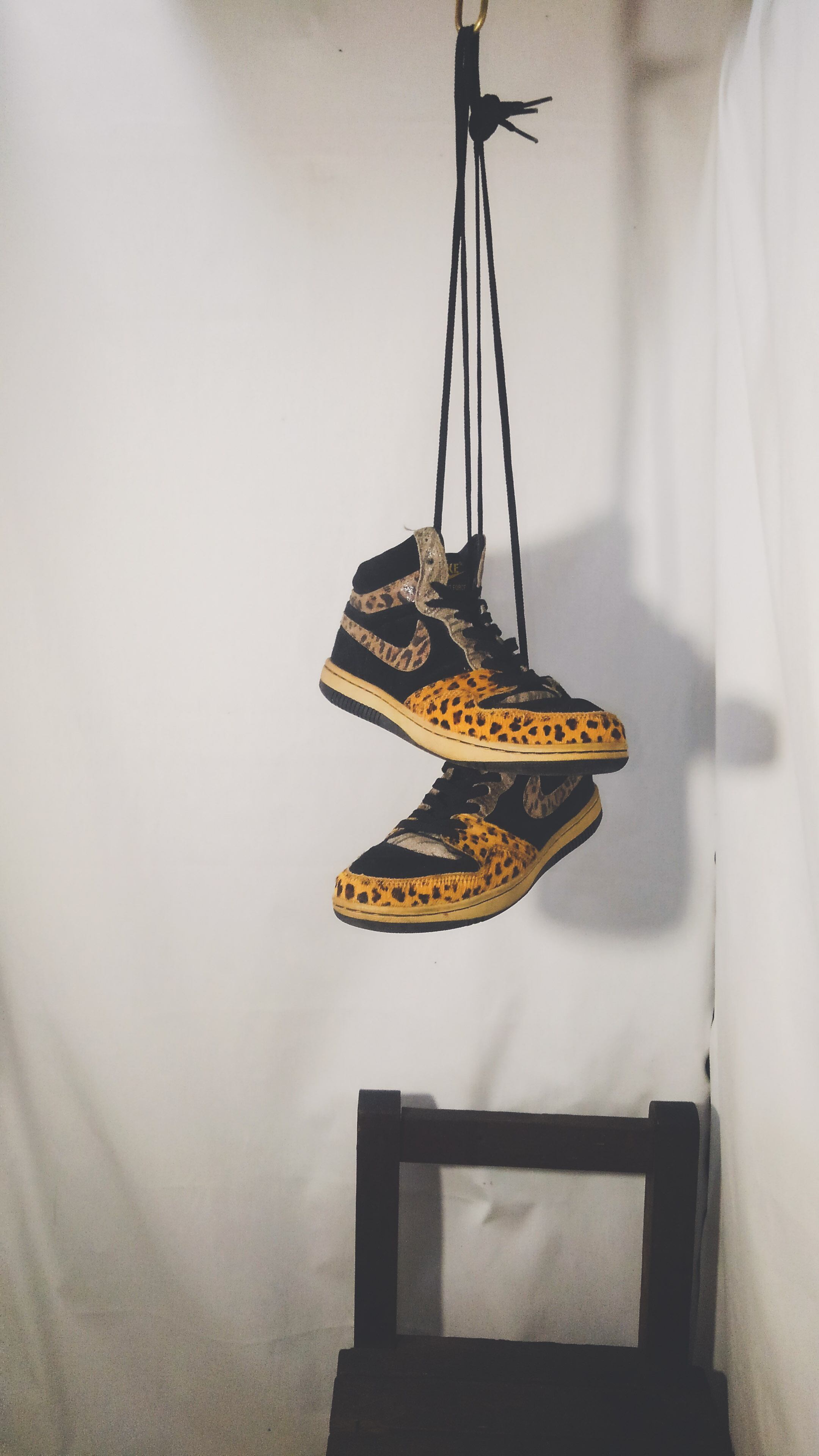 アッパーはブラックのスエードをサイドパネルと甲の部分に使用し、スウッシュやシューホール、つま先の補強にはハラコ素材。つま先部分とスウッシュがレオパードでシューホールの部分はタイガー柄が採用され獣を表現しているですね。