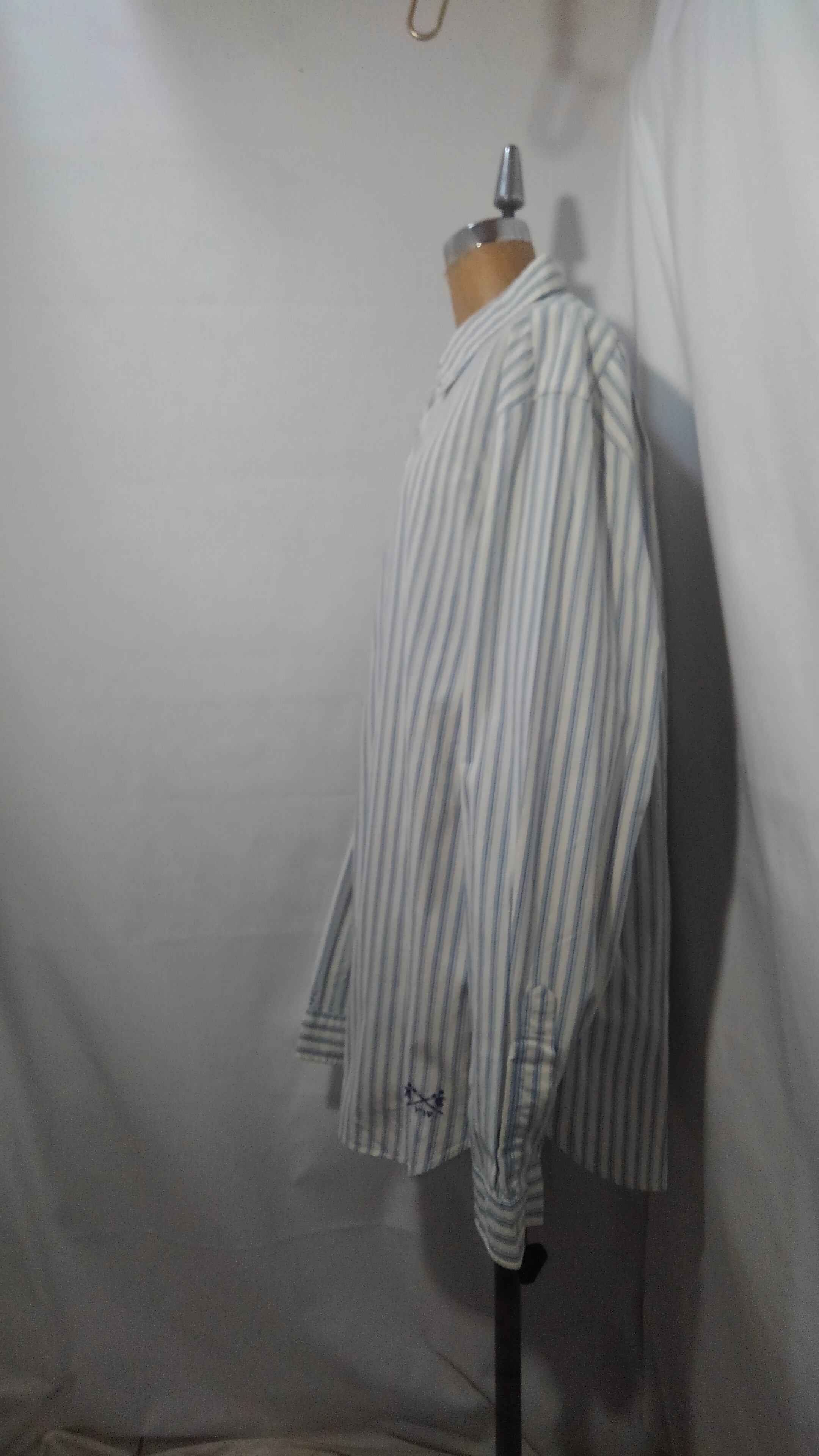 色合いは白地に淡いブルー系のストライプで