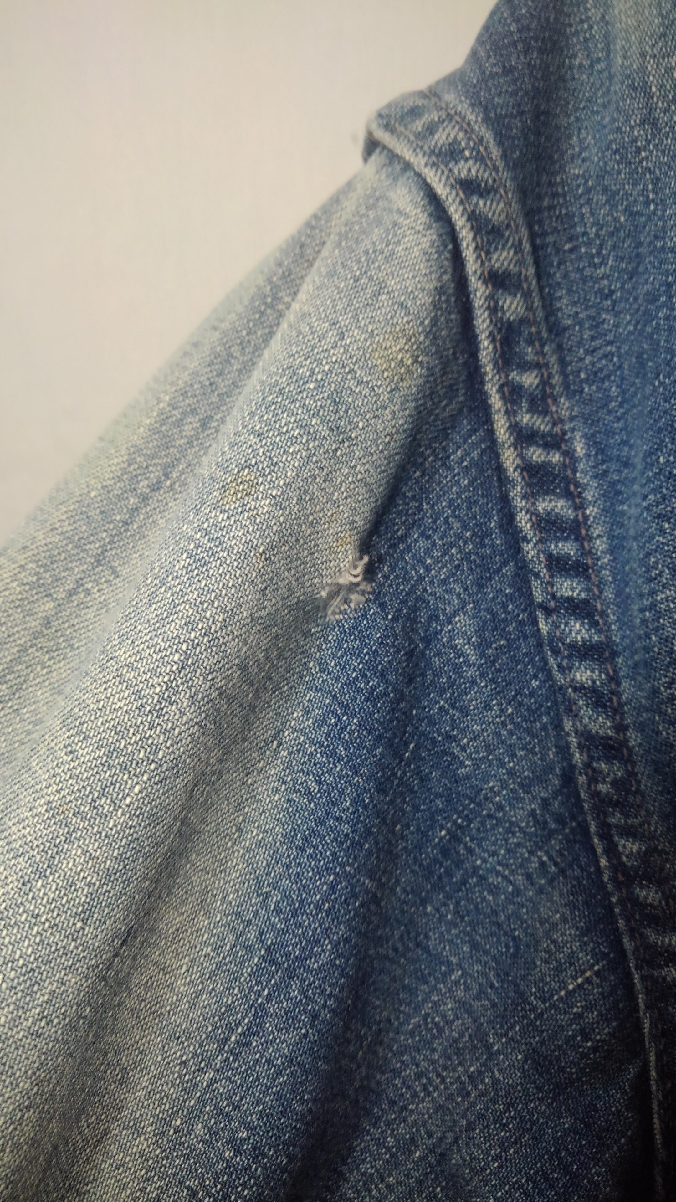 右半身に色抜け細かなピンホール、袖口にダメージが多少ありますが、ビンテージ特有の物としてご理解いただける方なら気になるほどではありません。