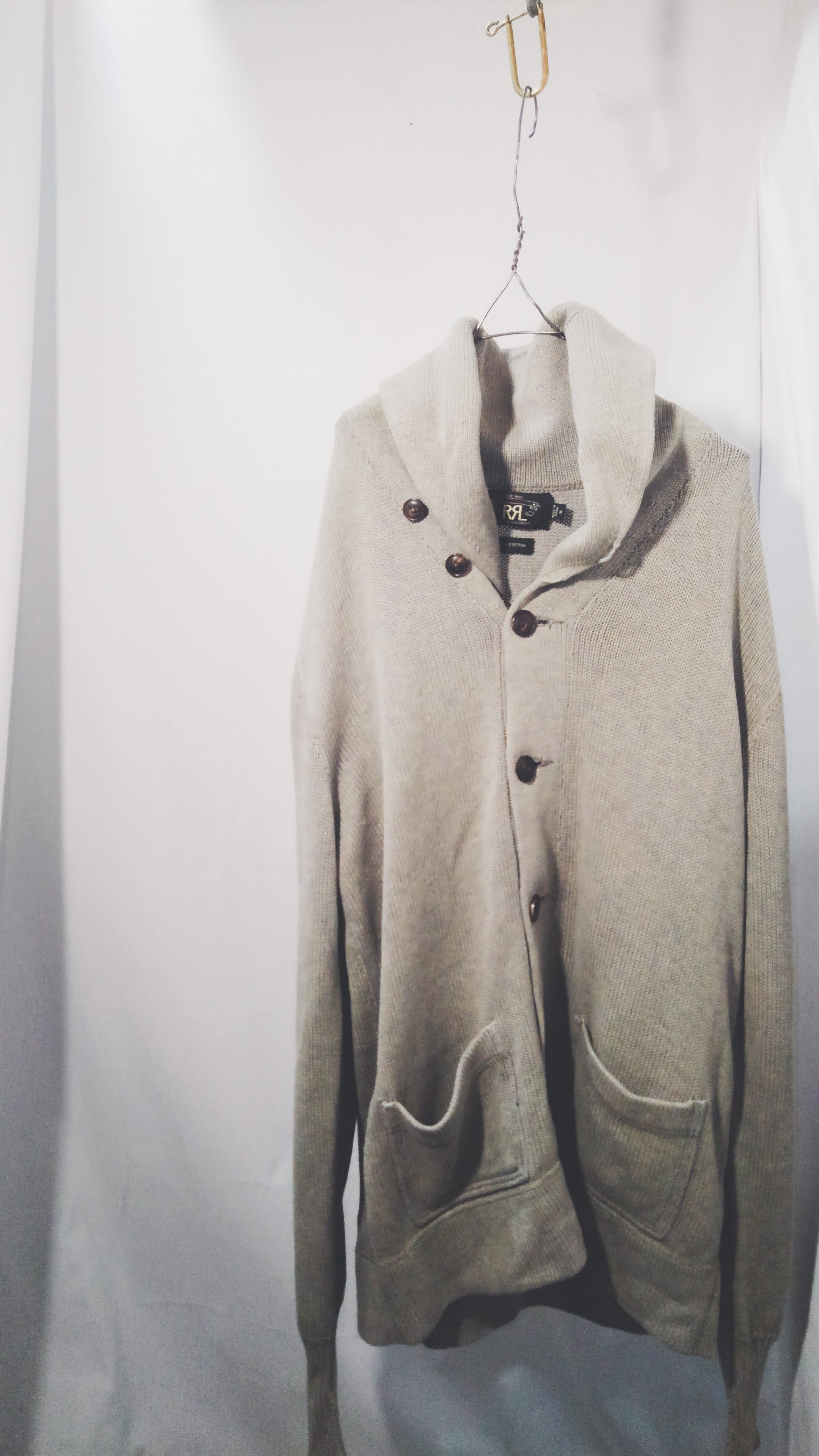 30~40sの肉厚なウール地のショールカーディガンを彷彿とさせるRRLのハイゲージのショールカラーカーディガンです。