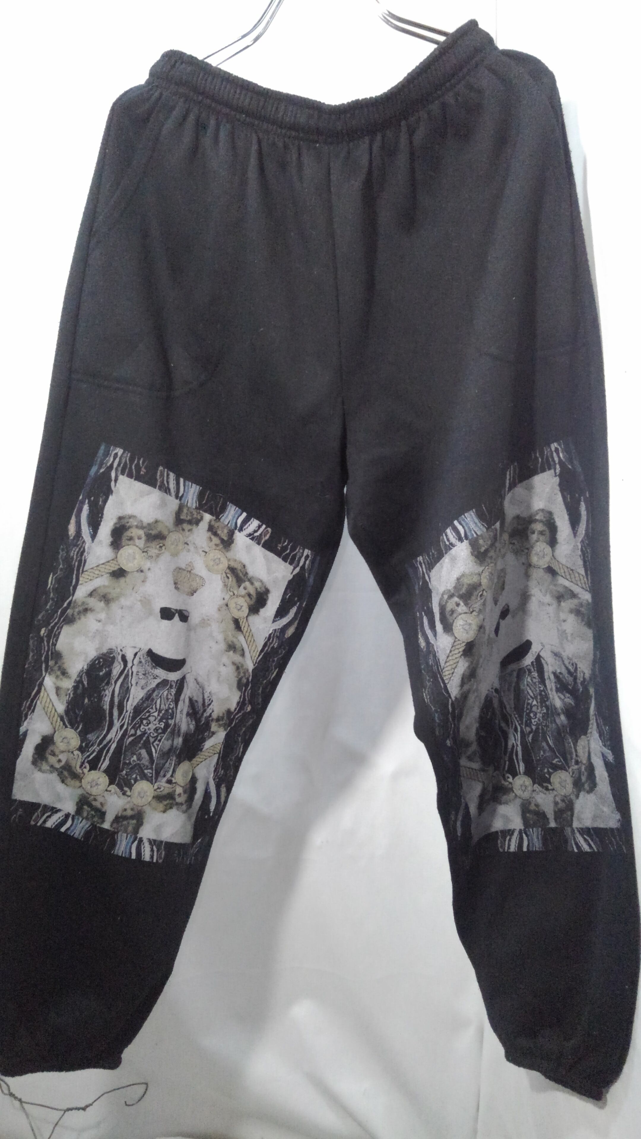こちらのスウェットパンツも両膝辺りにある絵画の様なプリントが奇抜な発想で度肝を抜かれます。普通のスウェットパンツではあきてしまった物足りない方の為のスウェットパンツです。