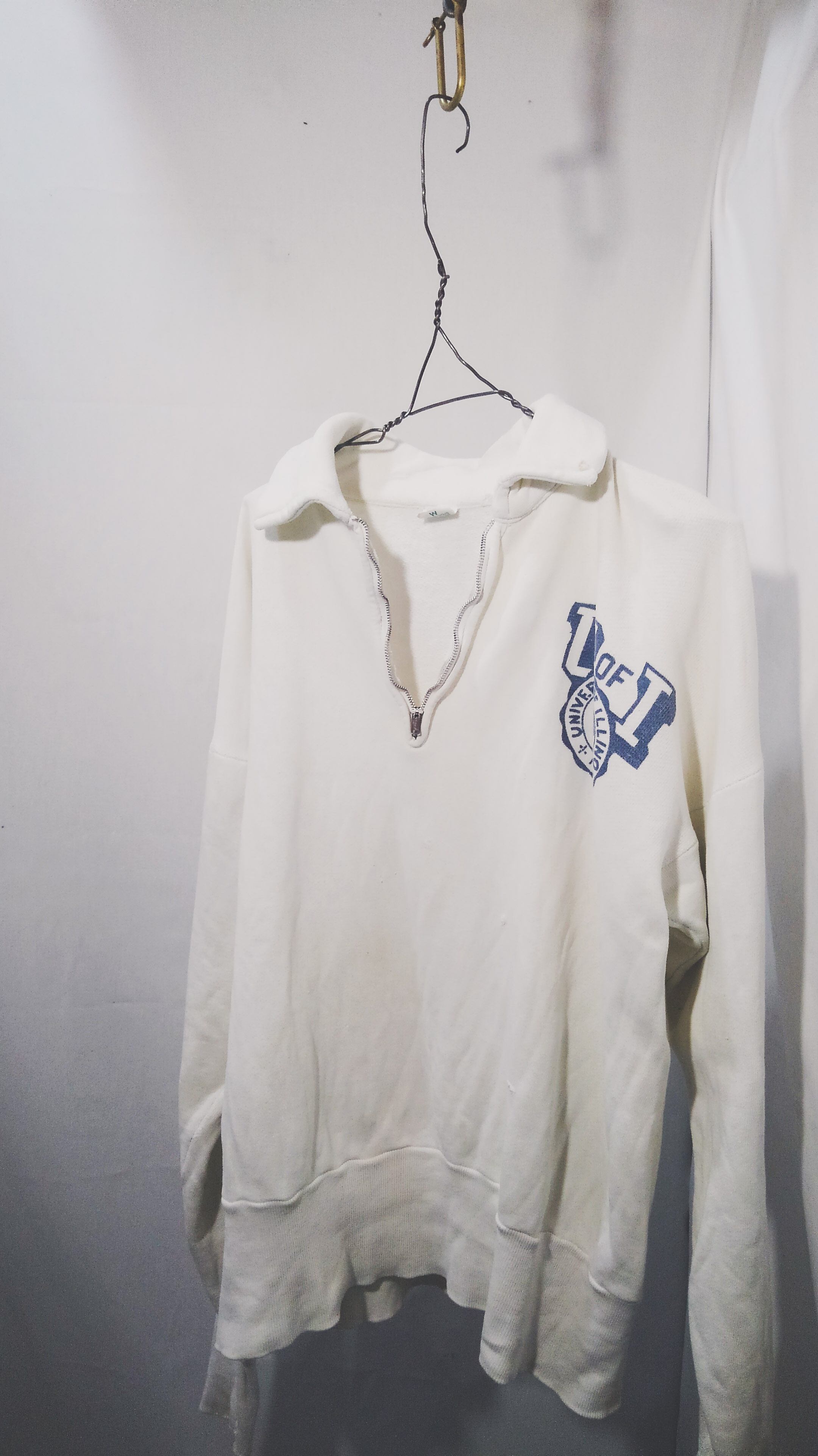 現在、スプルースボディのスウェットでカレッジ物、ピンロックのハーフジップ、水性染込みプリント、ロングリブ、ノーシームでコットン100%と言うディテールの揃った物はなかなかの希少モデルとなっています。