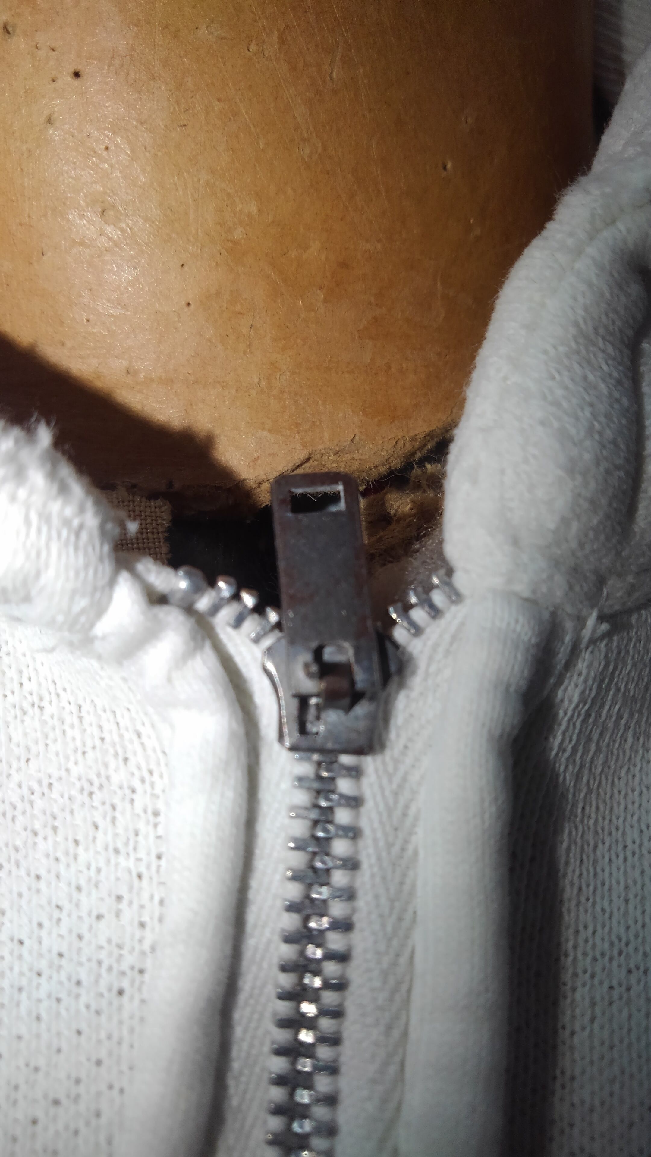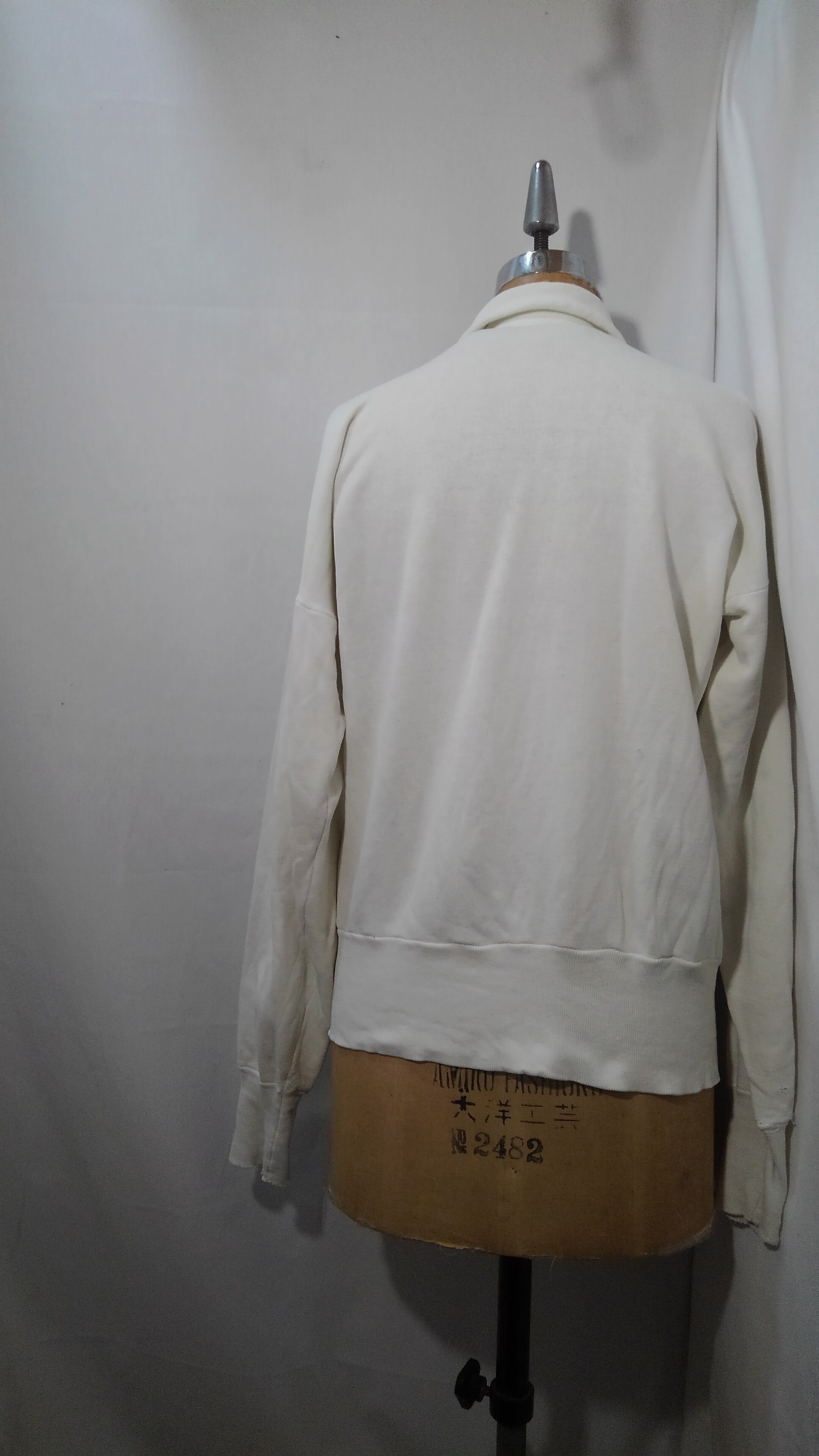 こちらはRマーク無しの水性染み込みプリント、ジップはFALCON社の片爪ピンロック式でこの年代特有の釣り編み法式の縫製の為、セットインスリーブで両脇は筒状のシームレスとなっています。