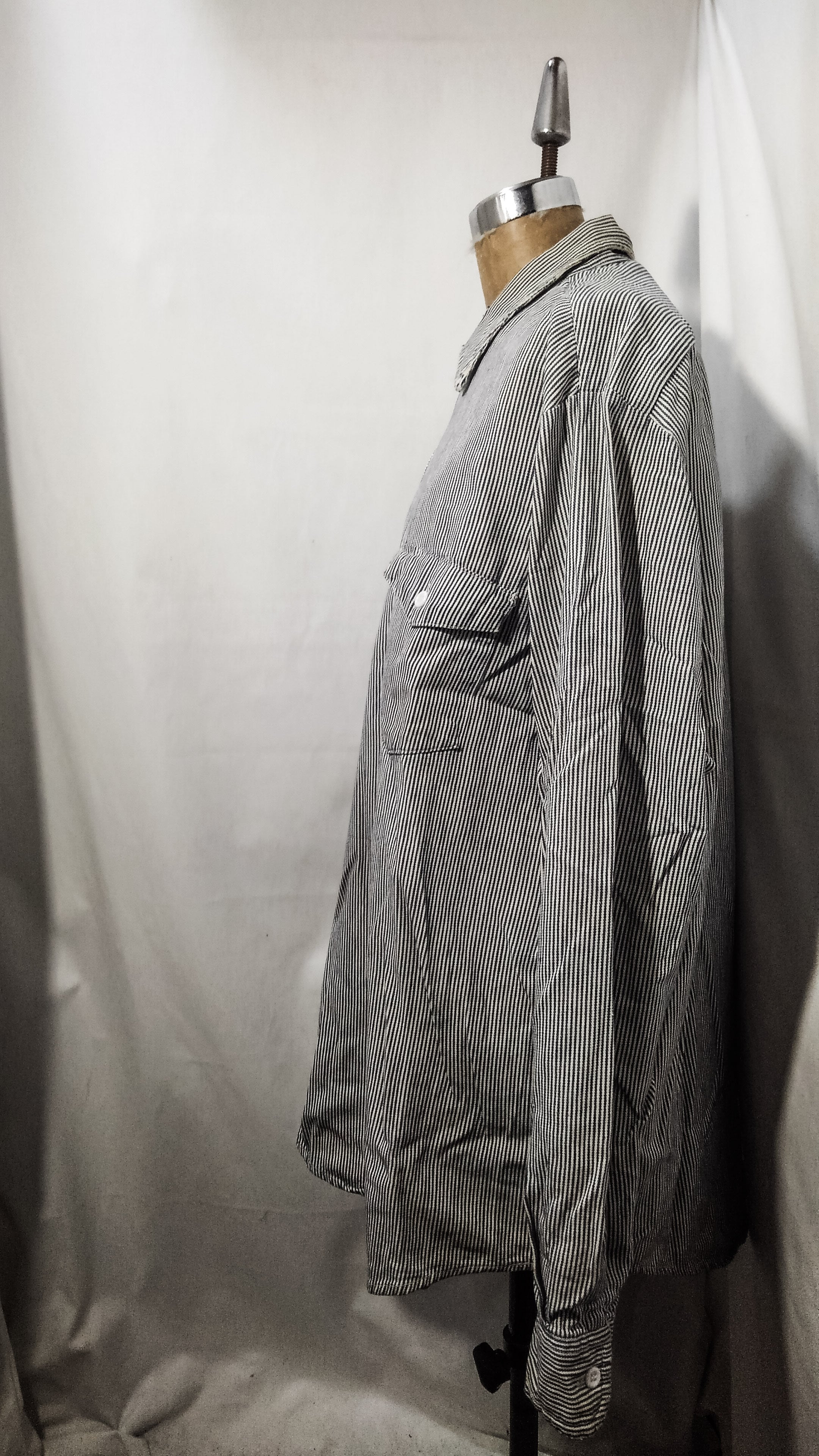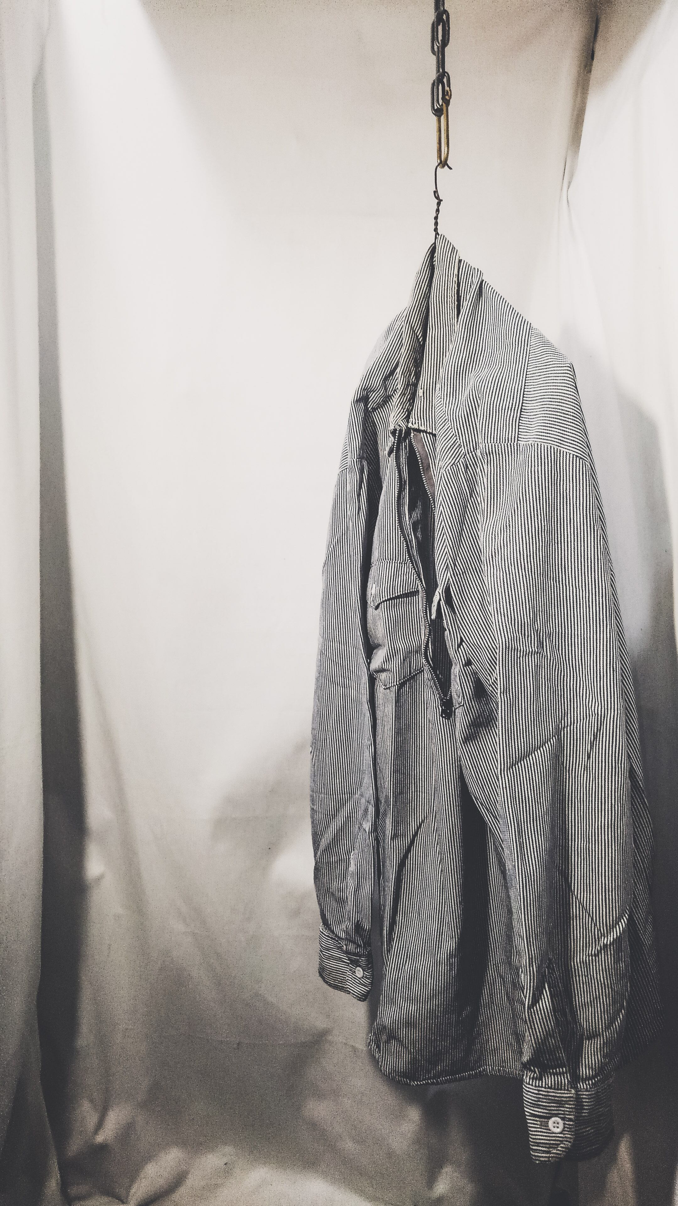 ハーフジップにヒッコリーストライプとワークウェアらしいディテールが魅力的です。
