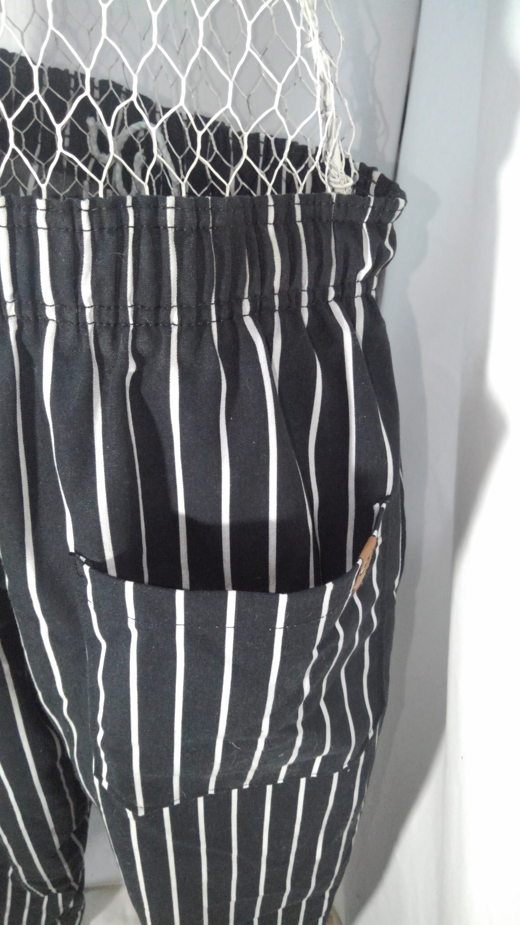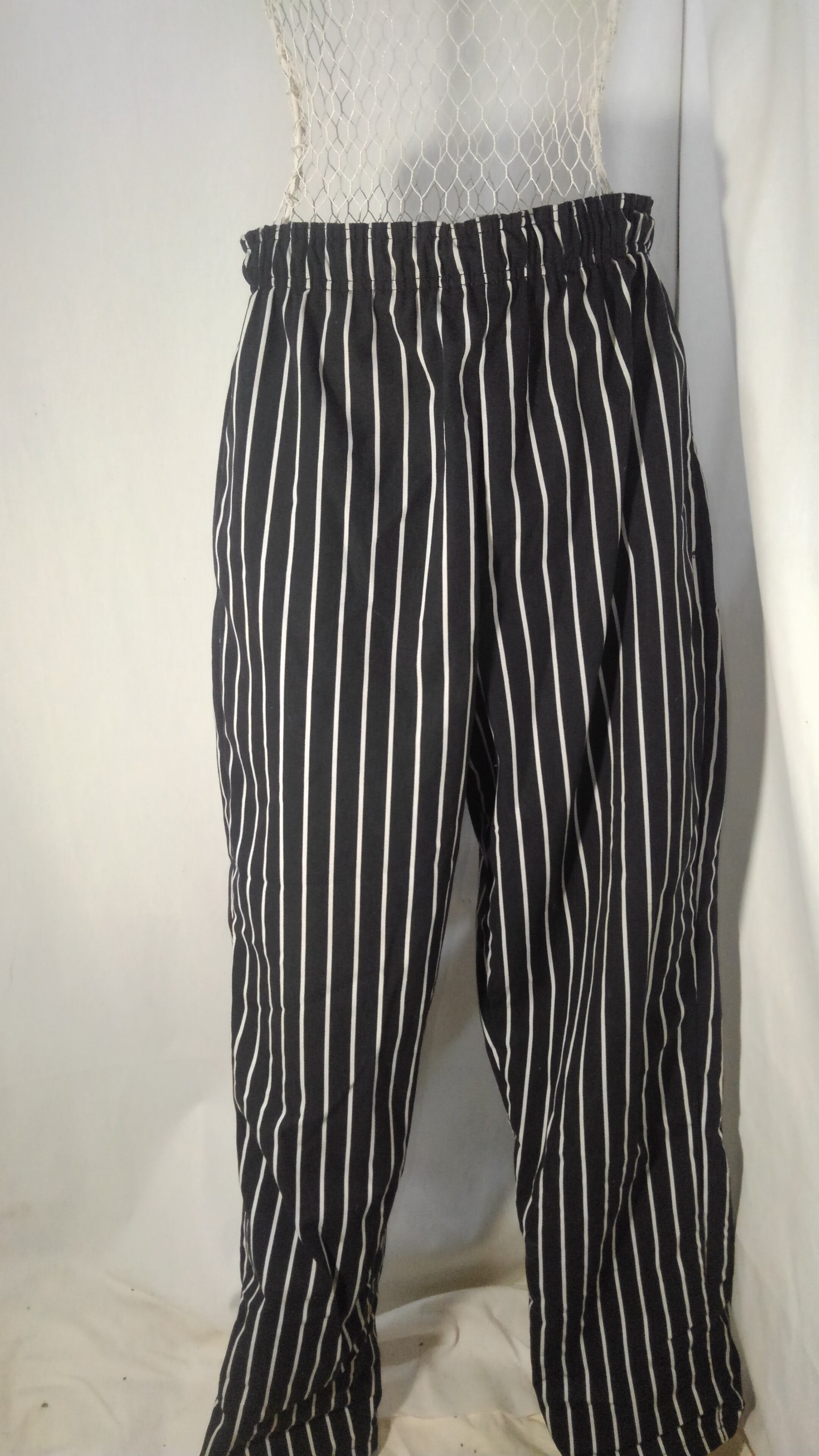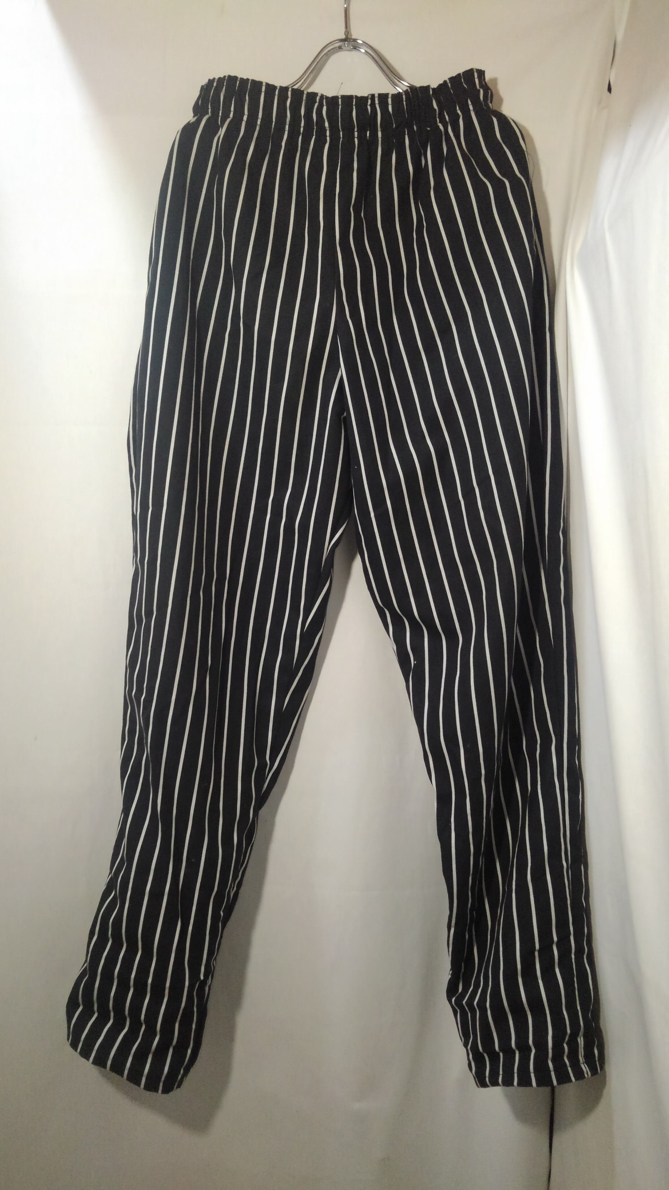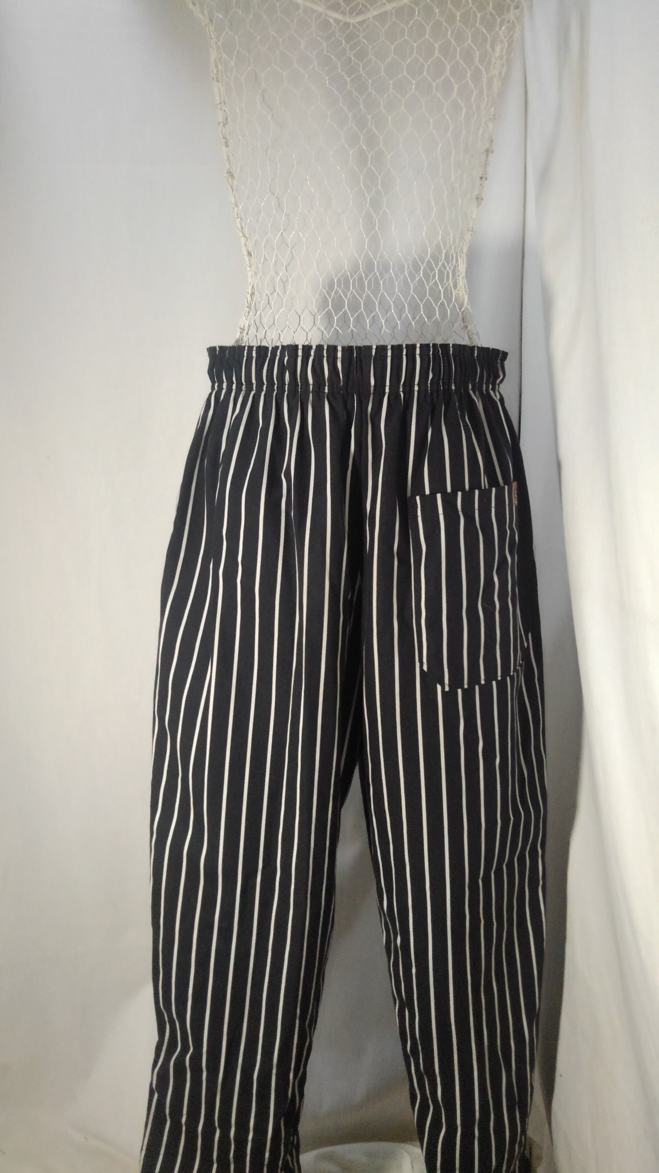 その名の通り、シェフ(料理人)向けに作られたパンツです。太めで、裾に向かいテーパするシルエット。ウエストはゴム&紐のイージーな作り。ポケットは、両サイドのスリットポケットと、ヒップの大きめパッチポケット。ポリ100%の生地は、シワや汚れに強く気負う事なくガシガシ穿いて頂けます。