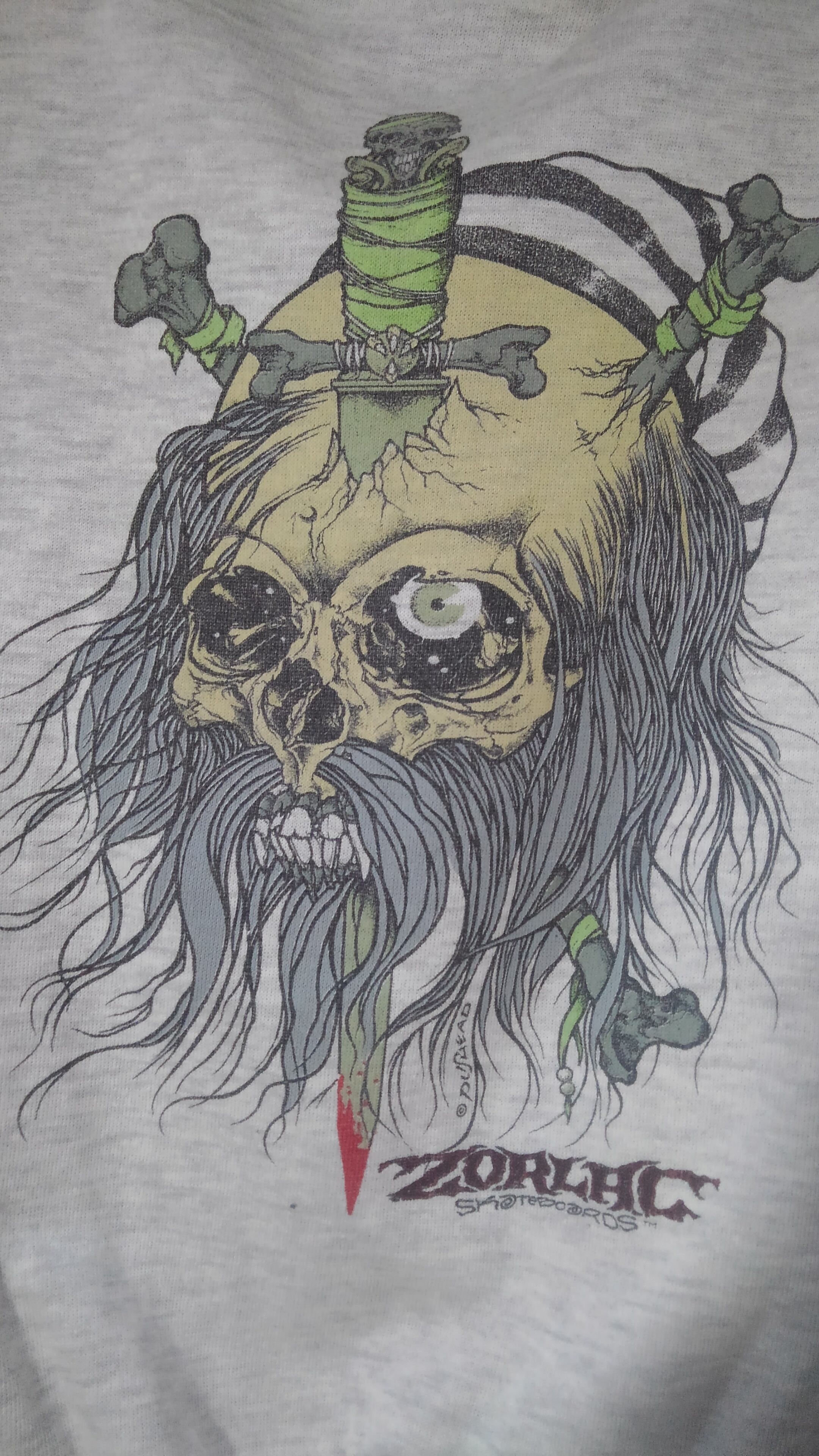 1976年創立のTexasハードコア・スケートボードブランド『ゾーラック』。メタリカや数多くのアーティスト達のアートワークが有名の『パスヘッド』が手掛けたmummy prisonerのプリントが入る人気の一着です。当時のオリジナルの証でもあるCASUALTYタグがしっかり残っています。