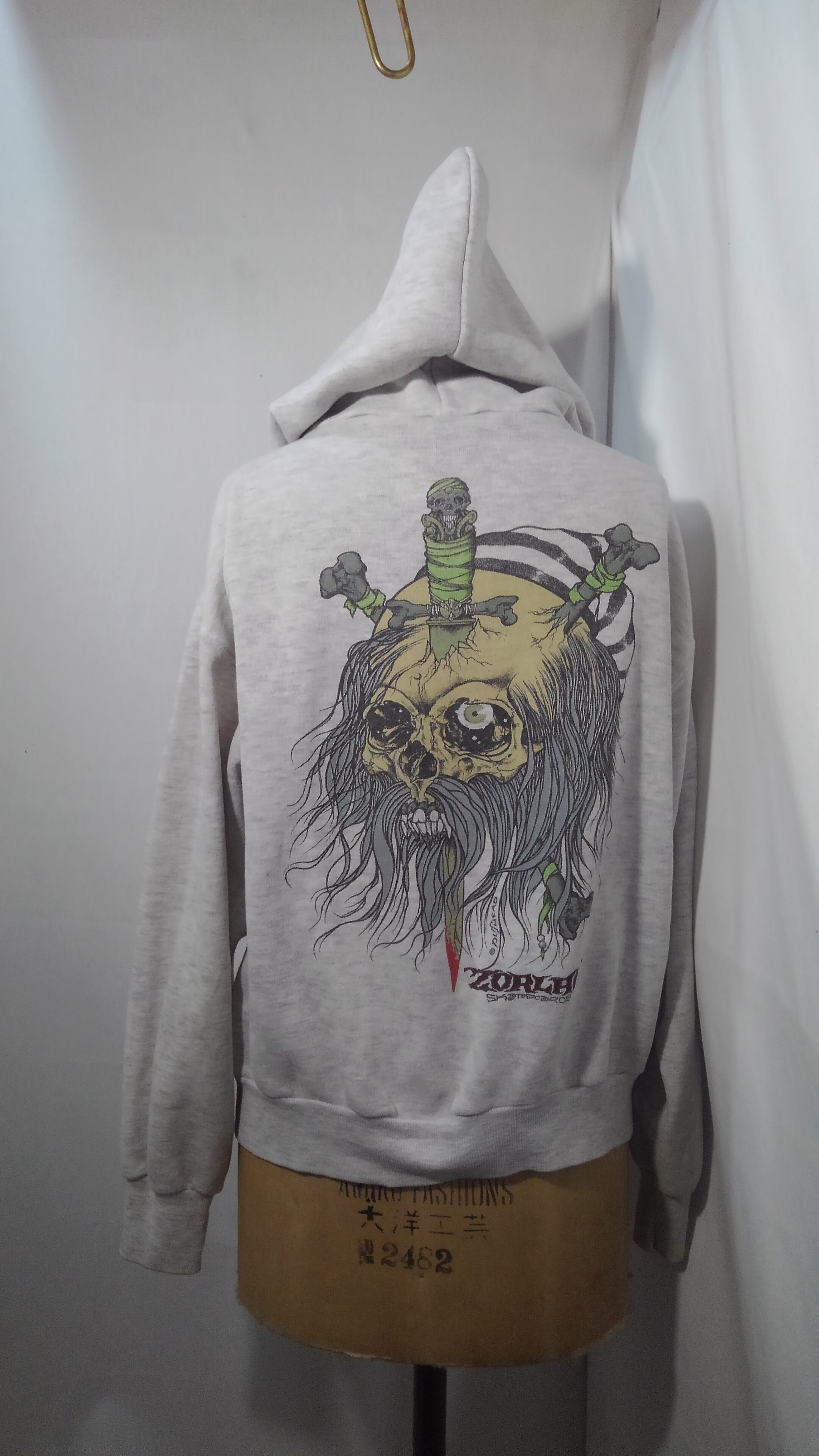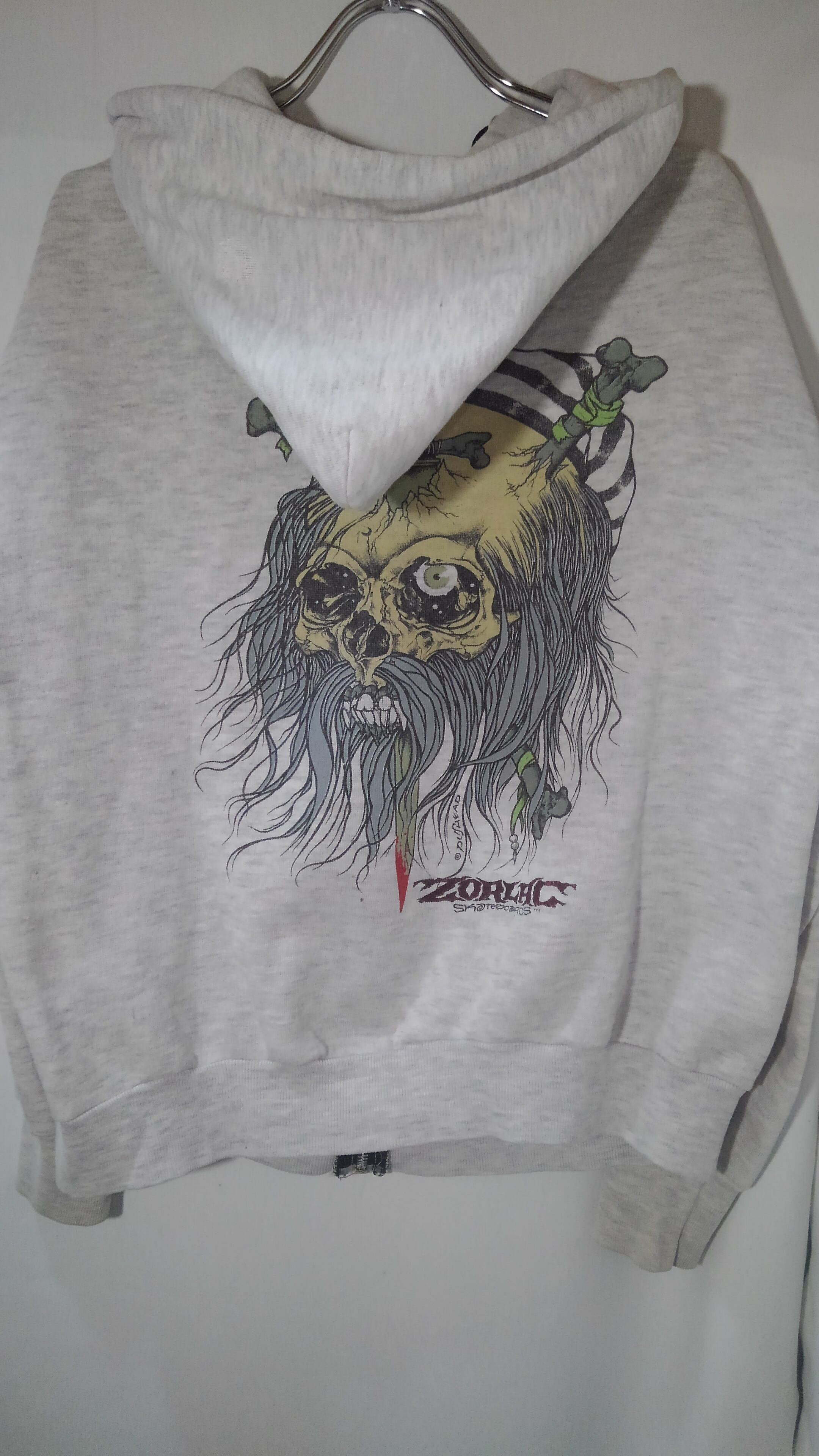 Old skate zorlac zip-up hoodie sweat shirt "mummy prisoner" pushead 90s
