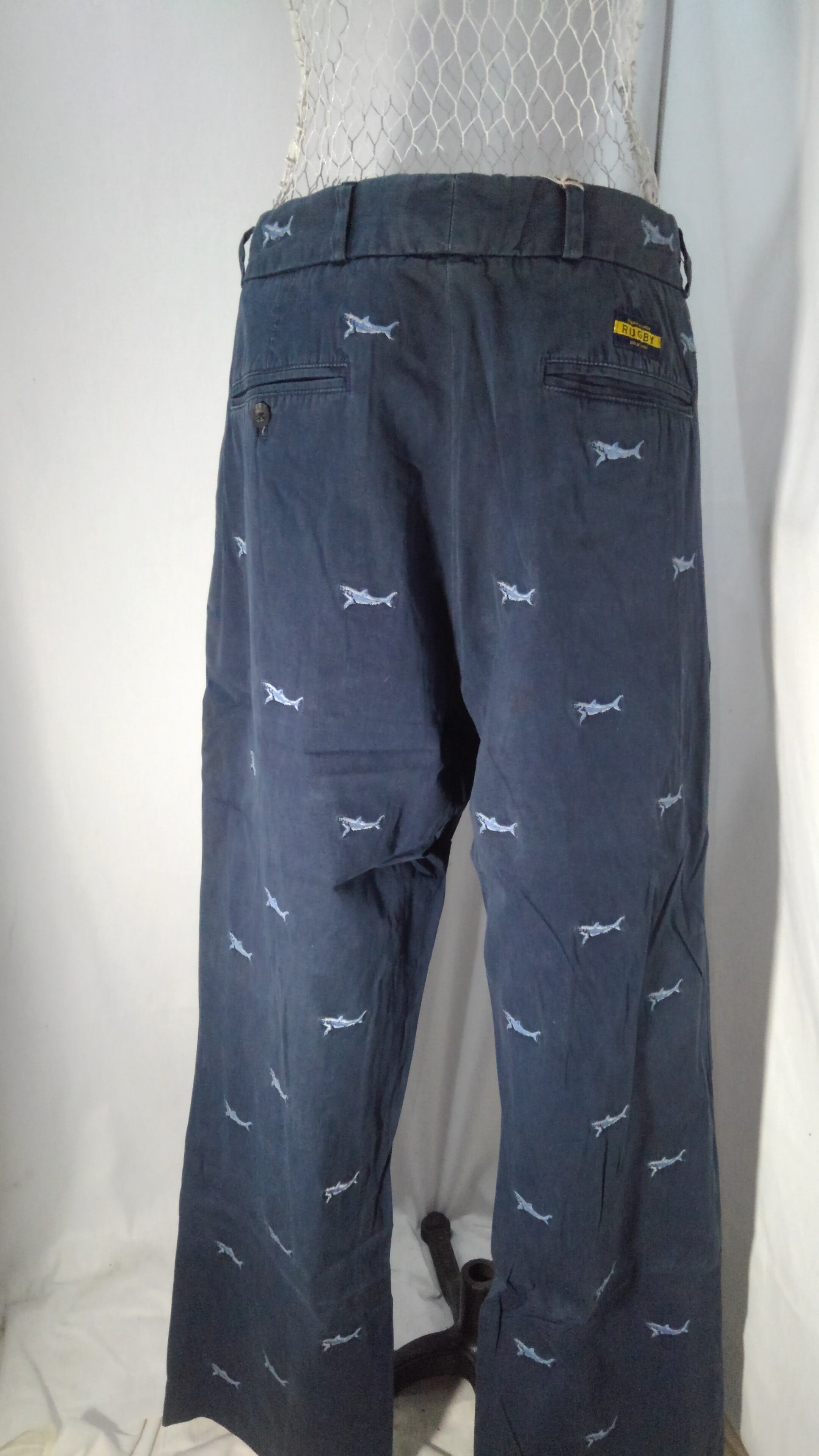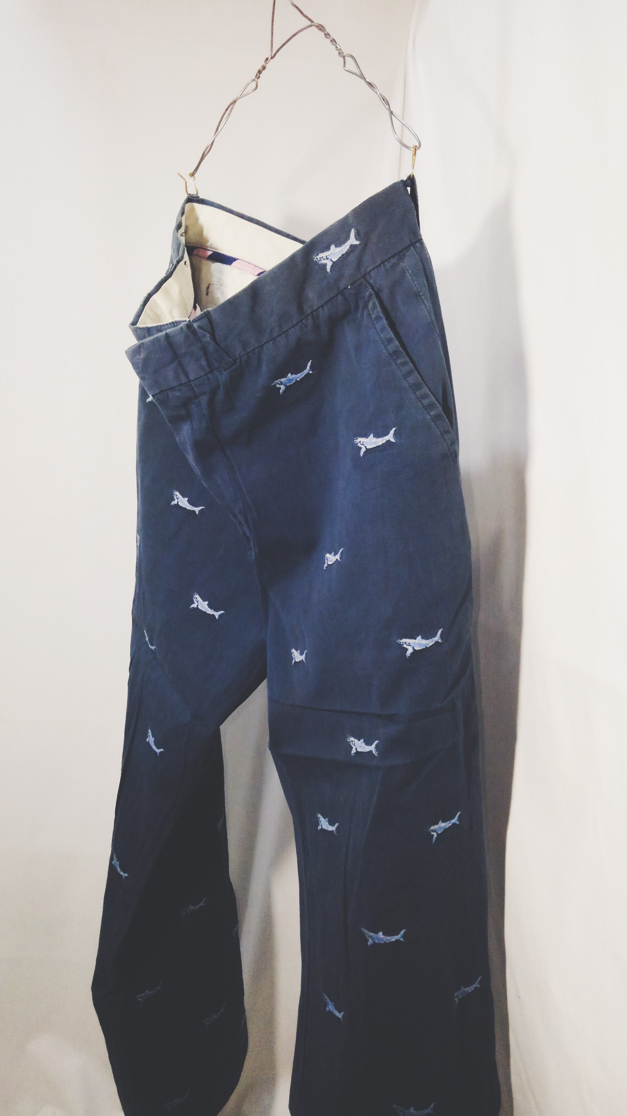 詳細は不明点ですが、サメの様なクジラの様な柄です。程よく使用感がありうっすら色褪せているあたりが、ビンテージアイテムとの相性がマッチしそうですね。
