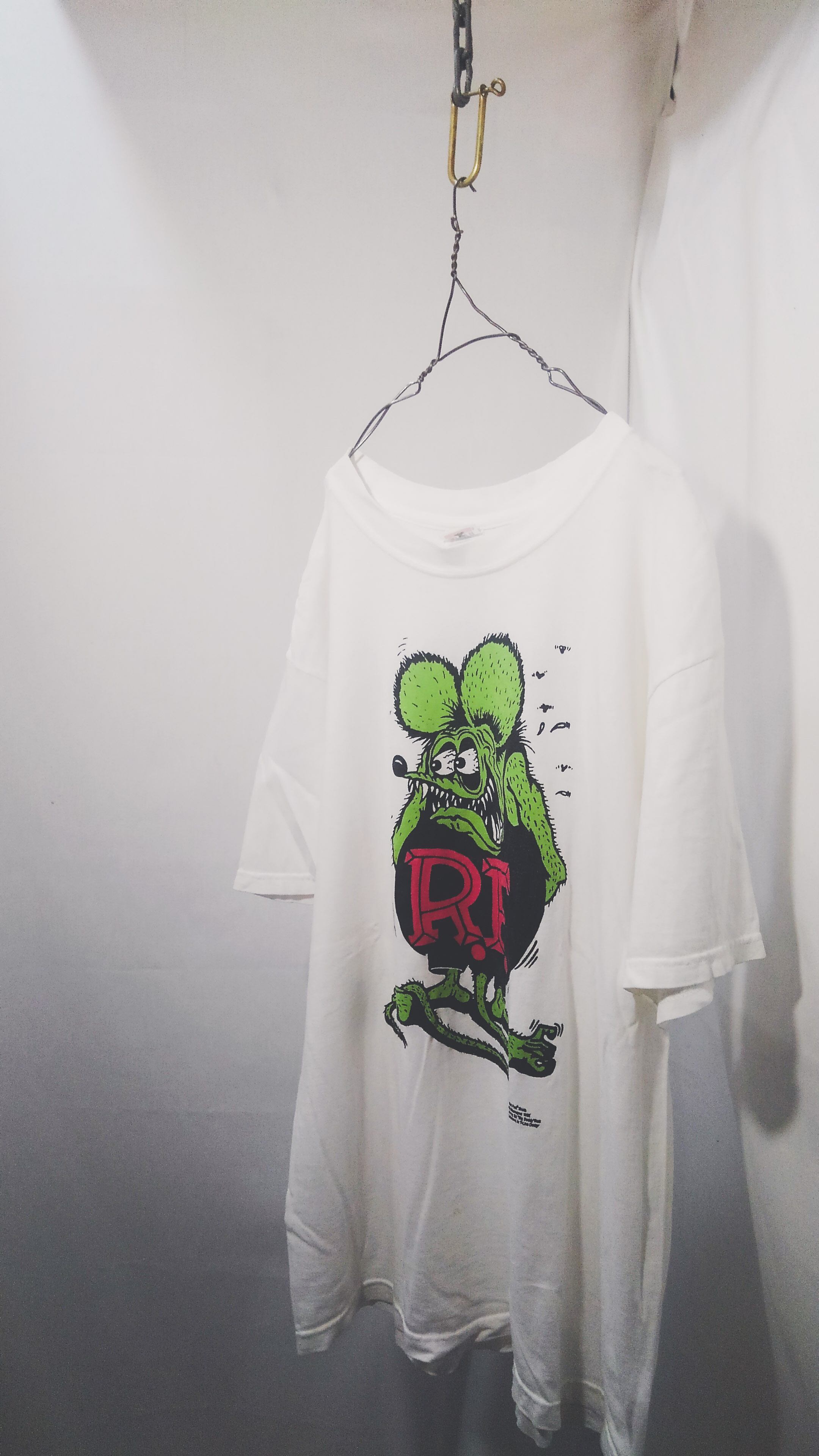 アート界の重鎮、今は亡き「エド・ロス」が生み出したネズミのキャラクター「ラットフィンク」が後ろに手を回したポーズがプリントされた定番のTシャツです。