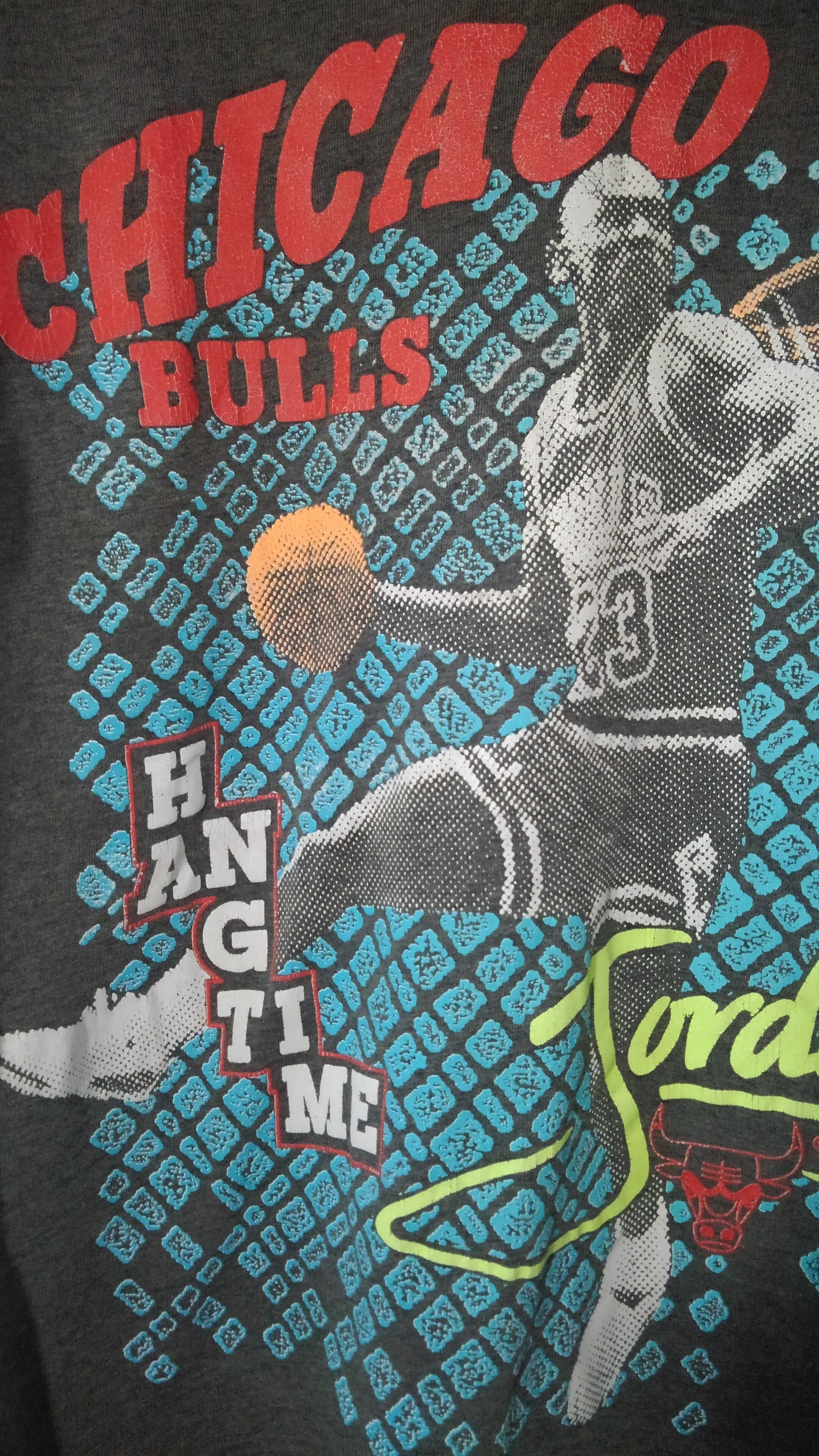 色褪せたブラックボディにカラフルなブルズカラーにドットプリントの躍動感のあるジョーダン。もう最高です。