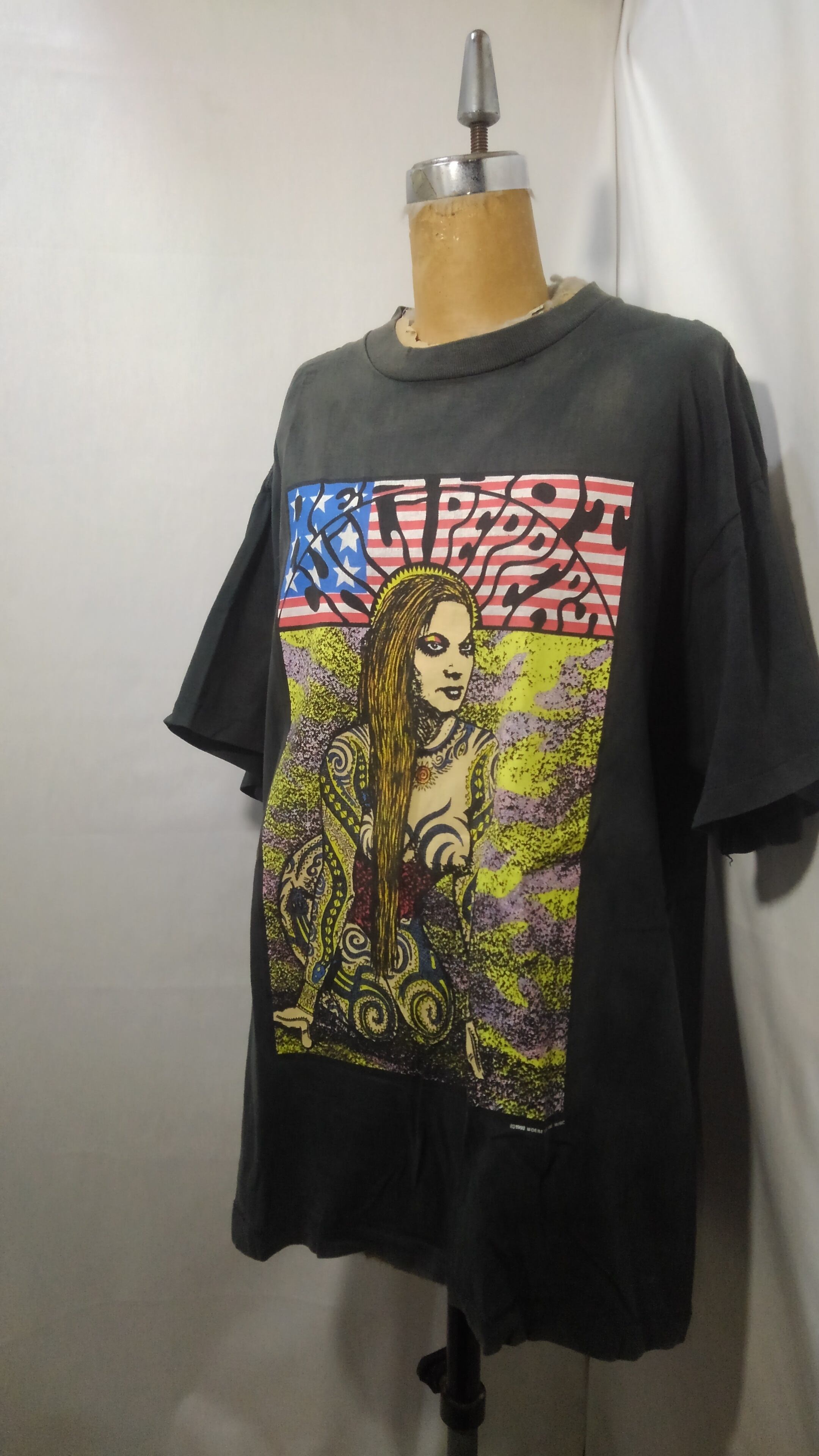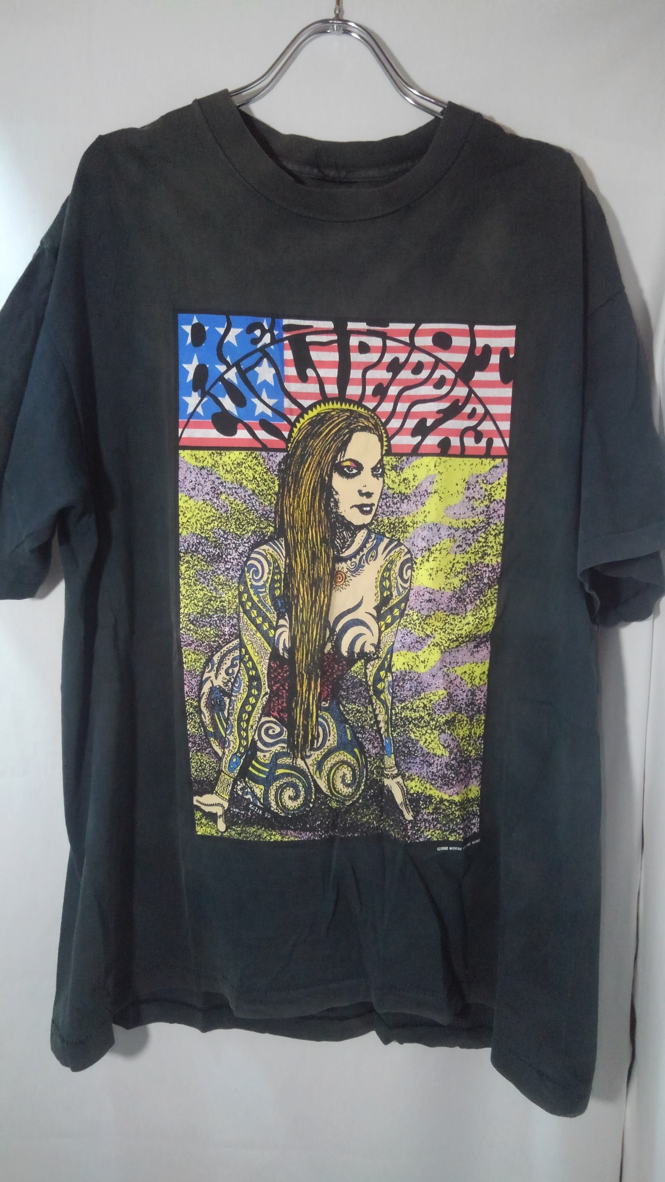 90年代頃のレッドホットチリペッパーズのTシャツです。ブラッドシュガーセックスマジックの頃の物で90年代にアーティストのアートワークを中心に手掛けたフランクコジックが描くレッチリTシャツ。(コジックのコピーライトもあります)