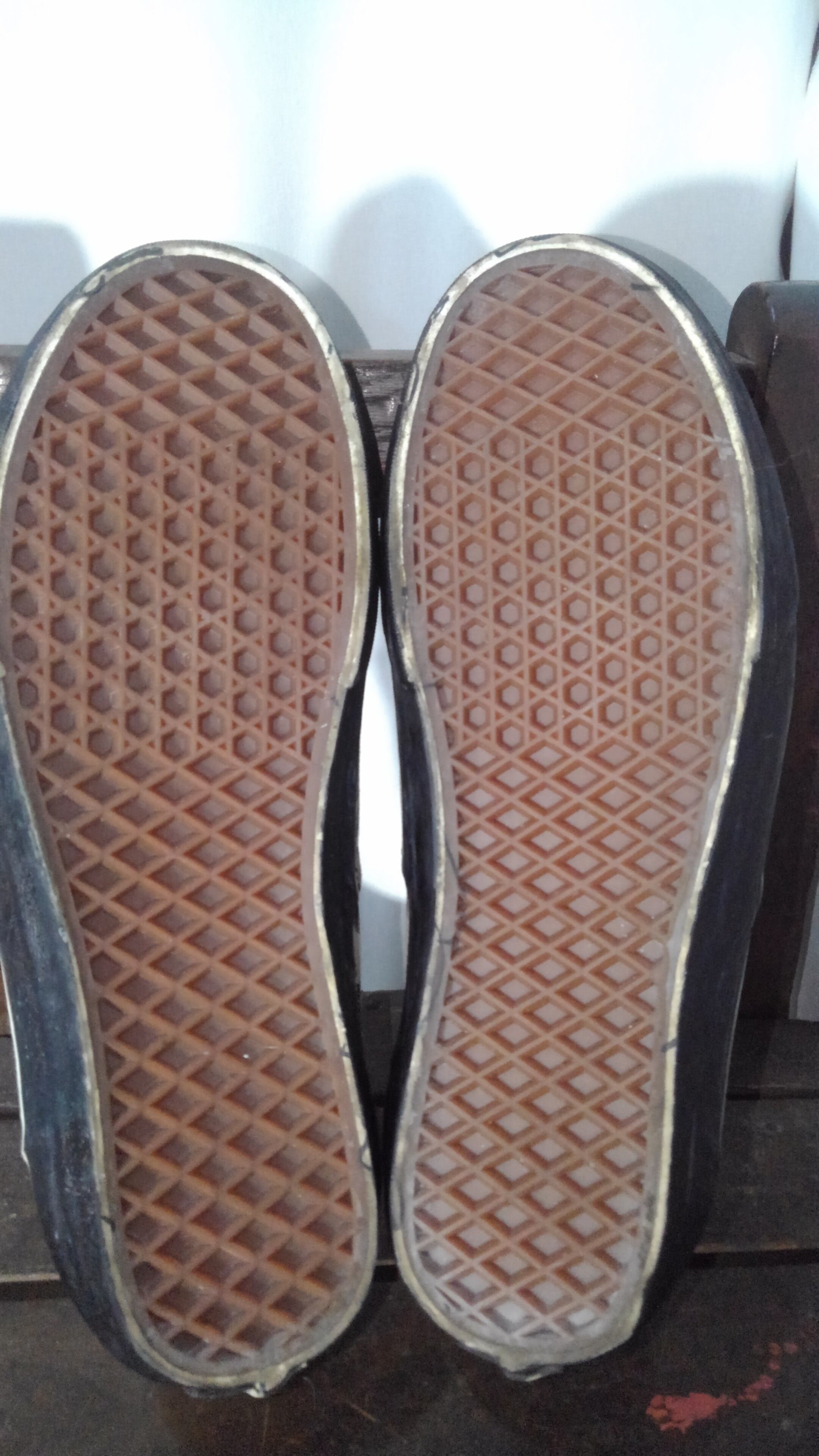 ラバーソールのサイドテープ部分は元々白いのですが、こちらはマジックか何かで黒く塗り潰してあります。