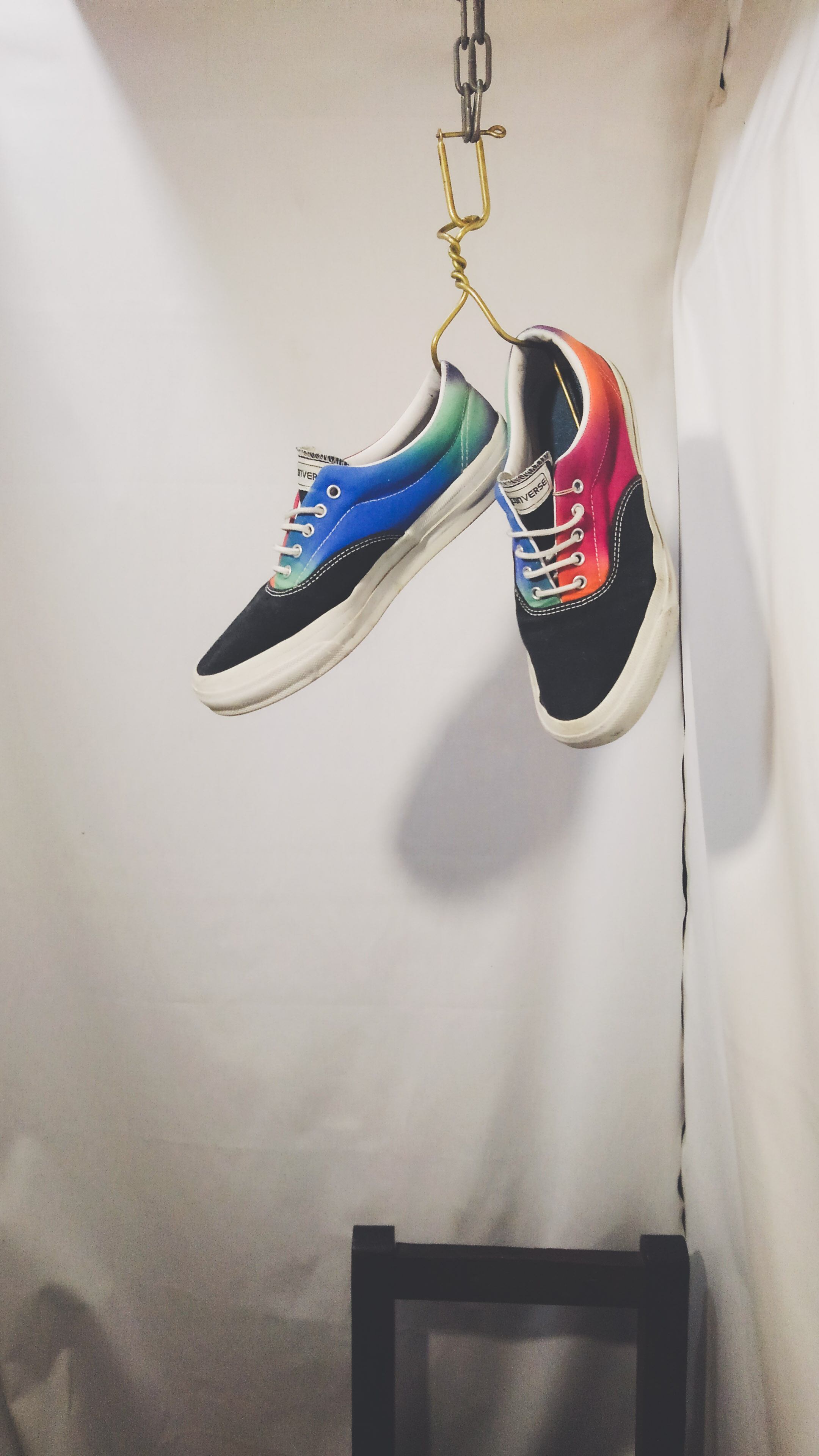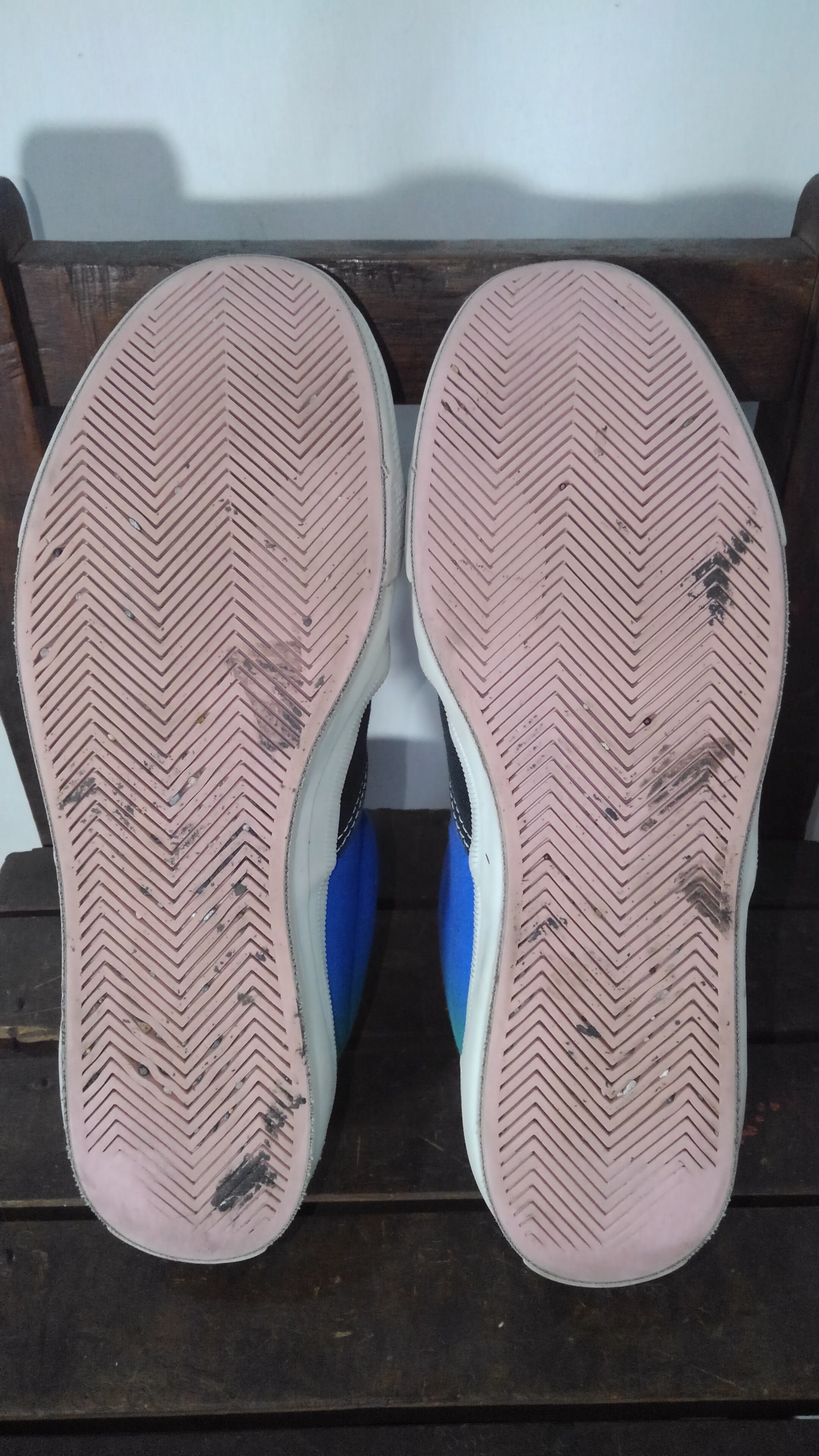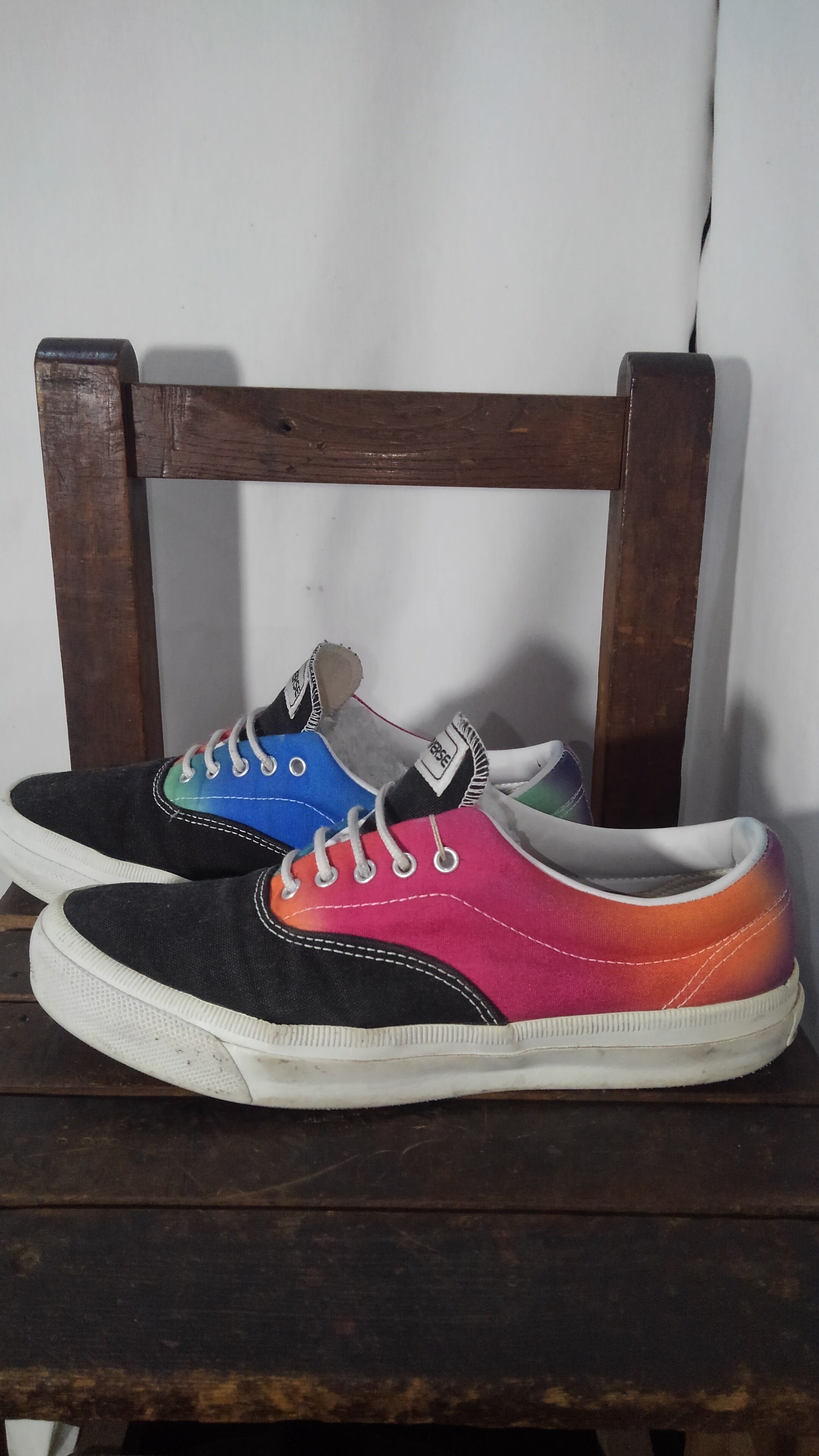 スキッドクリップはコンバースの中でもデッキシューズとして人気なアイテムですがこの100周年モデルは現在中古市場でも中々入手困難でもあり、マルチカラーと言う一癖あるアイテムですので他の方と被る事は殆どないと思います。サイドテープ部分にボンドの剥がれが見られますが、気になる様であれば市販のシューグー等で簡単に処置出来ると思います。