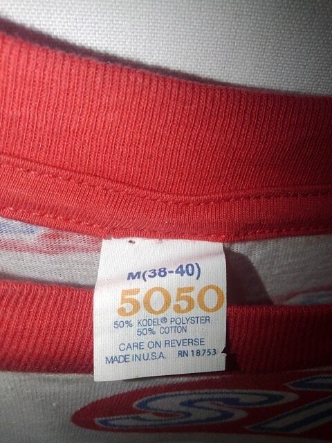 両面にポップなロゴが散らばる様に全面にプリントされています。企業物のTシャツは現在でも人気で復刻も多く出ていますし、当時物はコレクターも多く、古着ジャンキーの間では最もメジャーな総柄Tシャツの一つではないでしょうか。