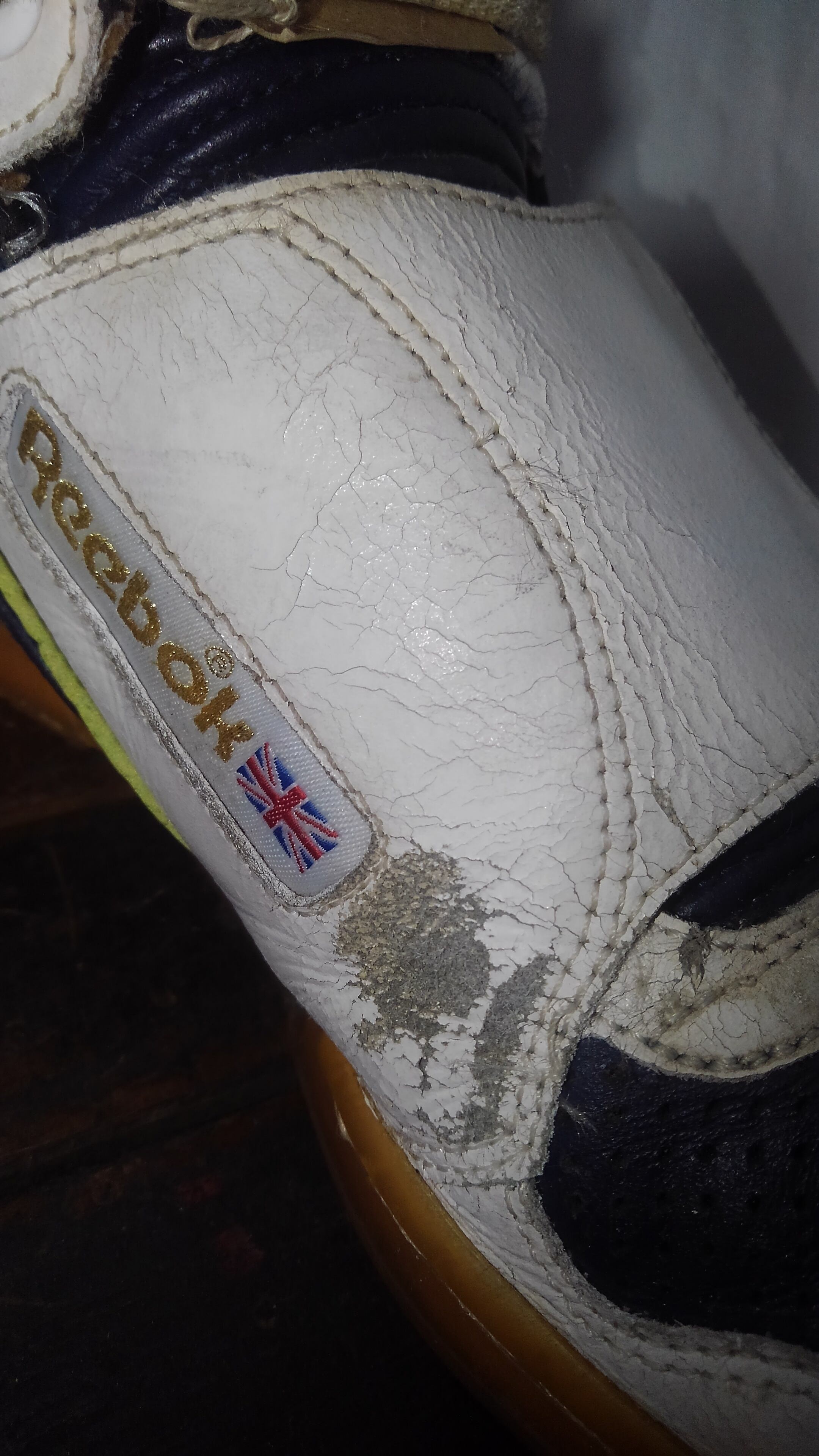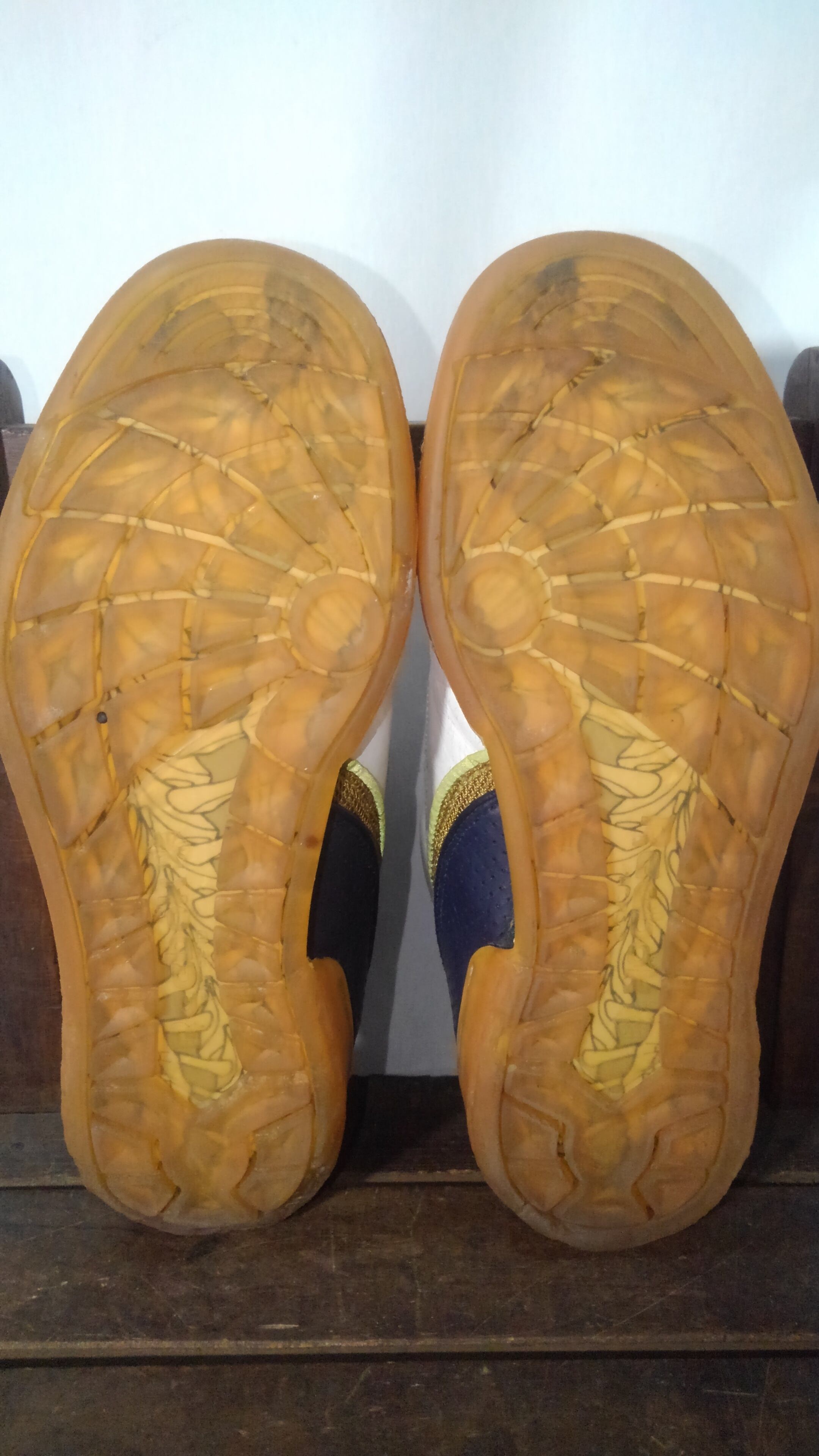 アウトソールの減りはほとんどありませんが表面のひび割れ等があり、一部1cmほどの色剥がれもみられます。