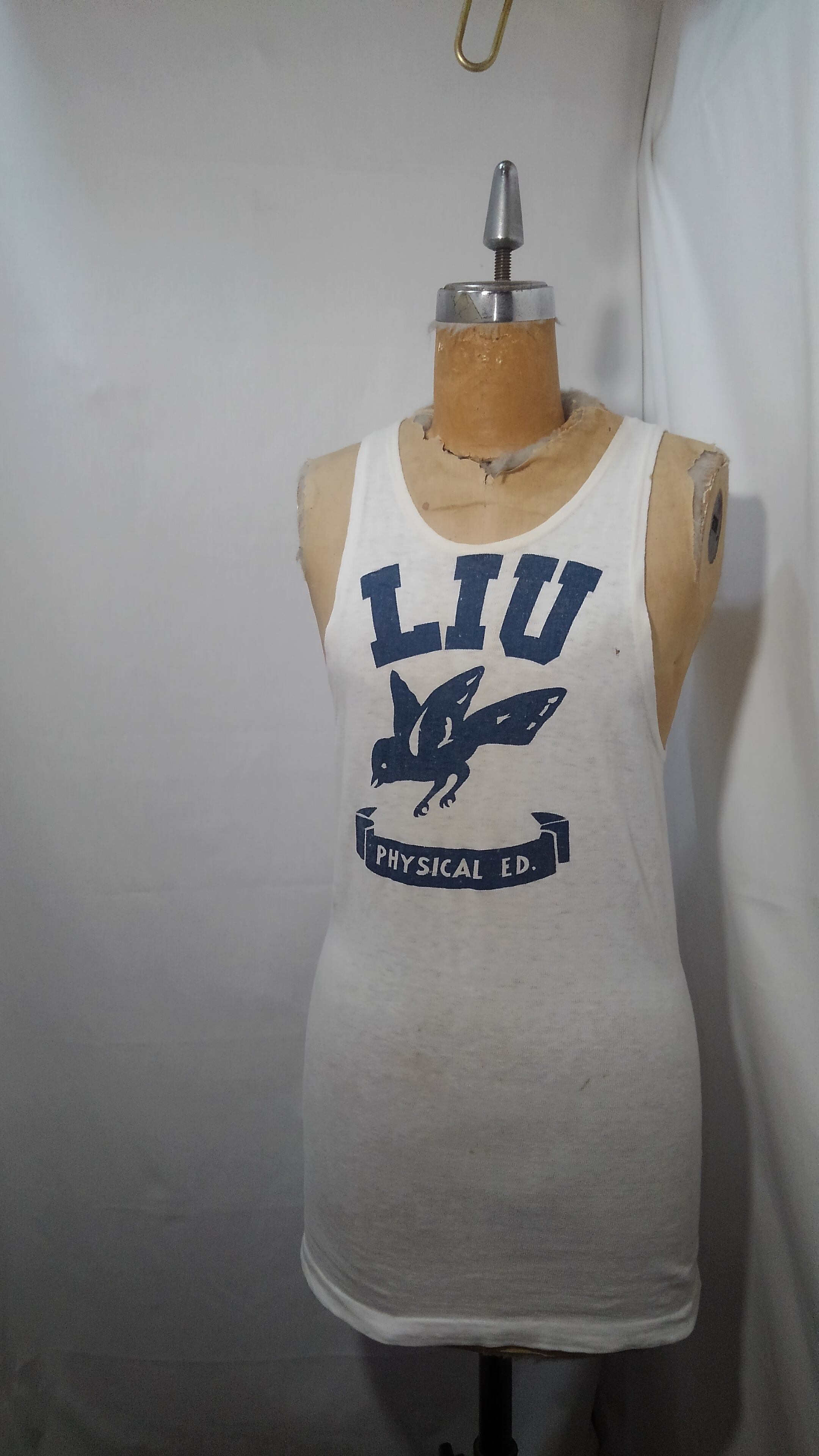 アメリカの"ロングアイランド大学"の体操着なのですが、こちらのチャンピオンボディについているのがランタグ(ランナーズタグ)は当方初見です。
