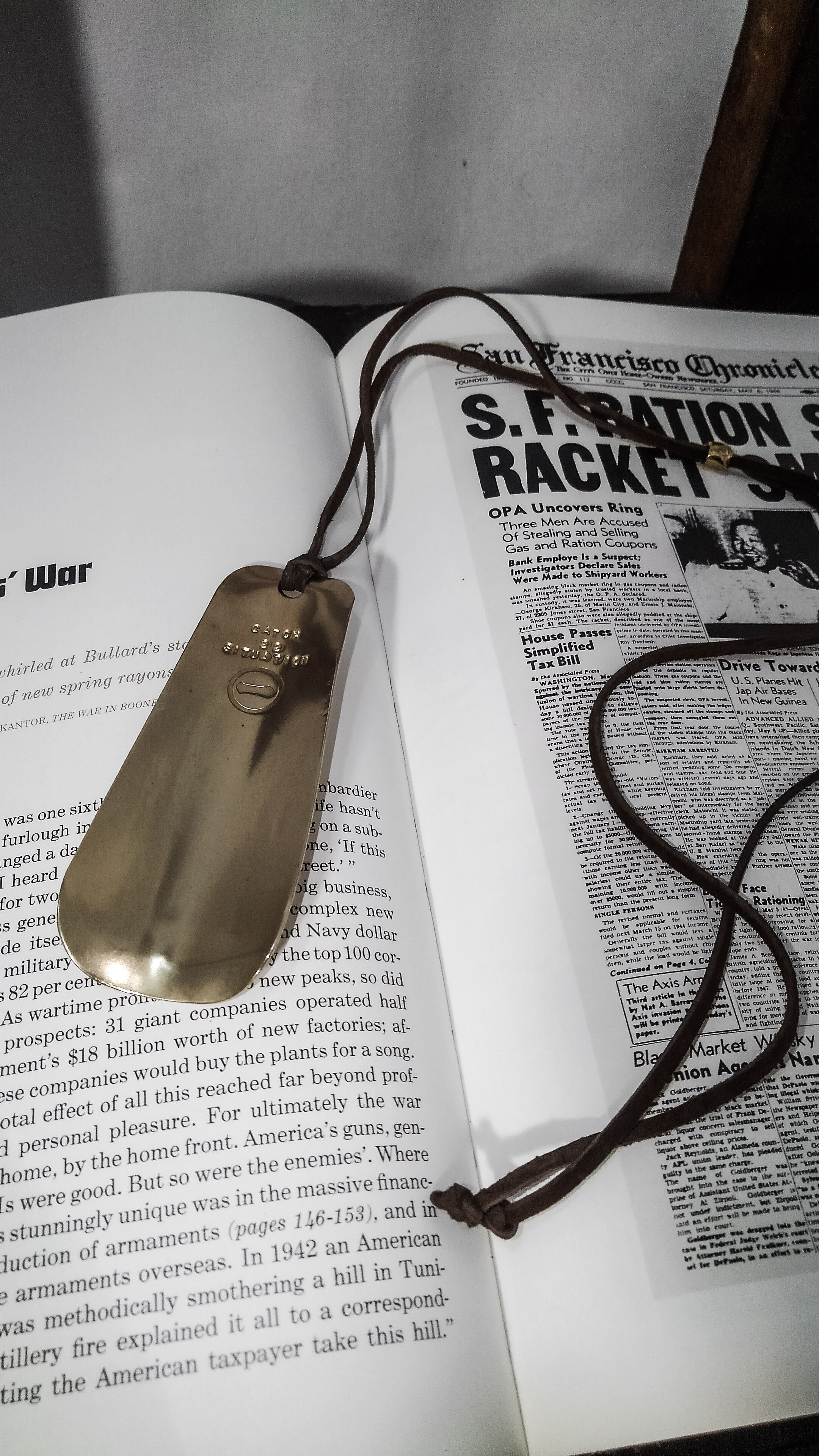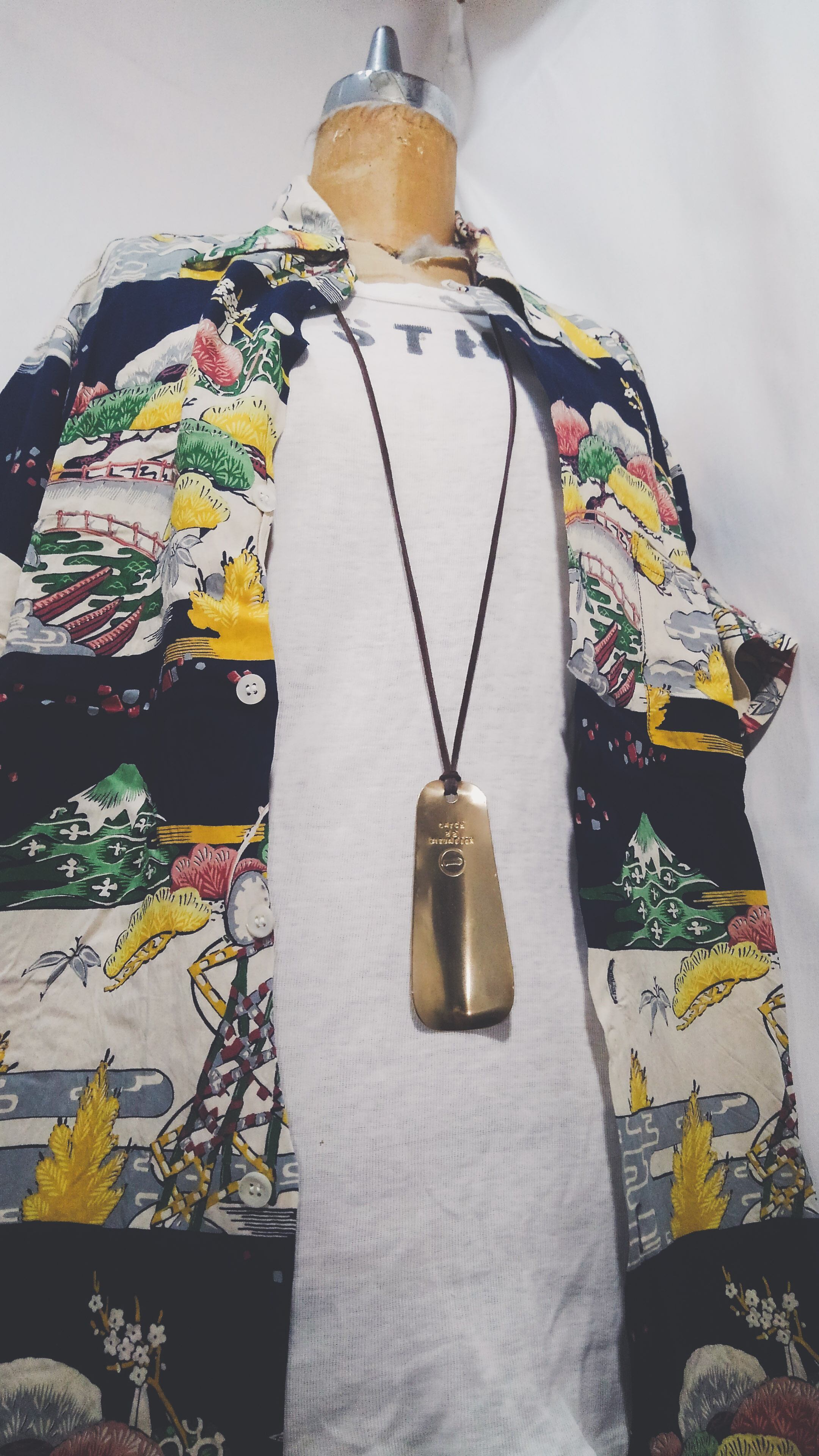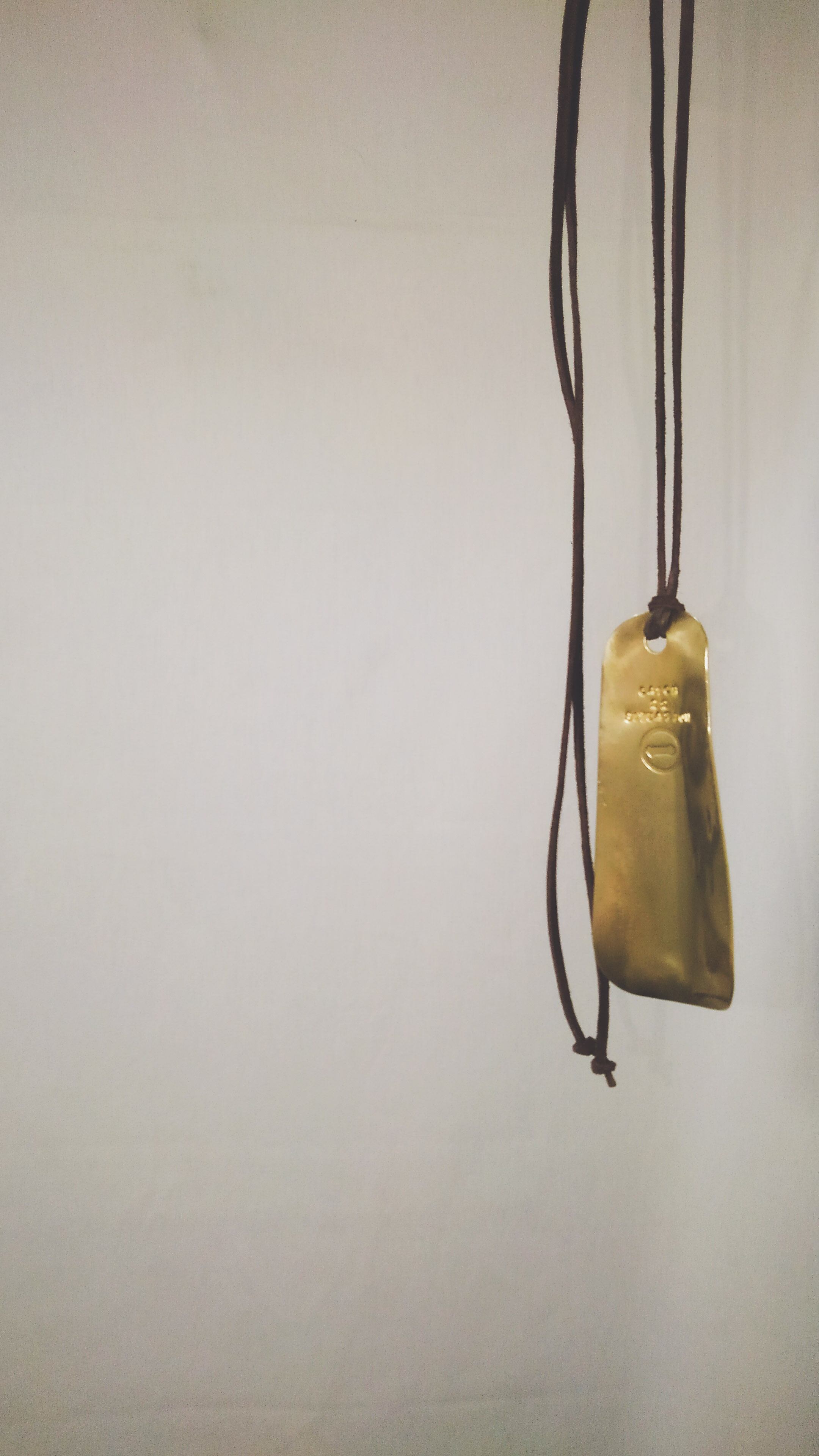 ハンドメイドの真鍮製シューホーン(靴べら)のネックレスです。