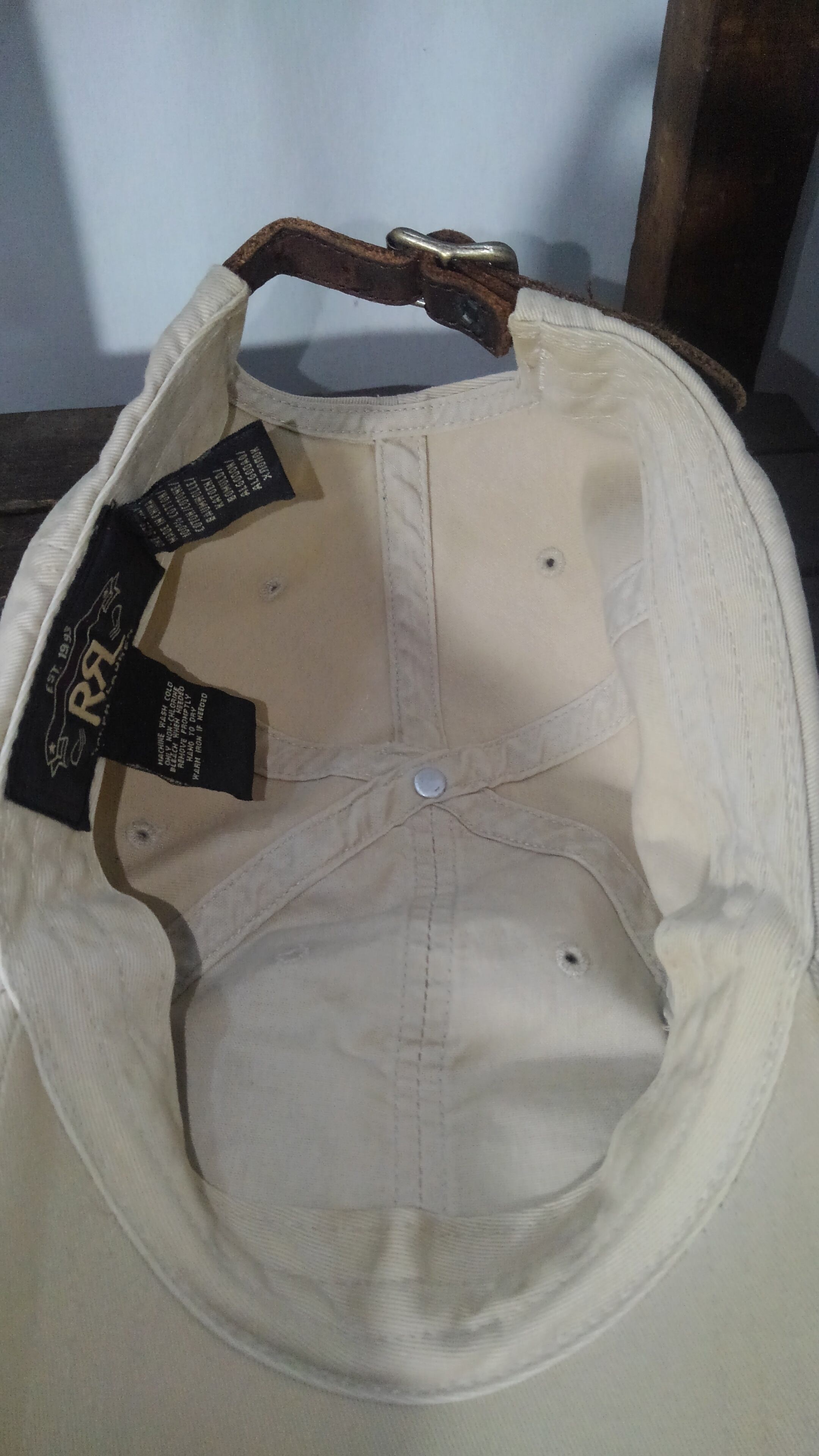 サイズ調節用のアジャスターベルトも洗い込んだ肉厚のレザーを使用しており、狙った感じのいやらしいビンテージ加工ではなく自然体で全体的に雰囲気が出ており他のビンテージアイテムとのコーデも相性は良いと思います。