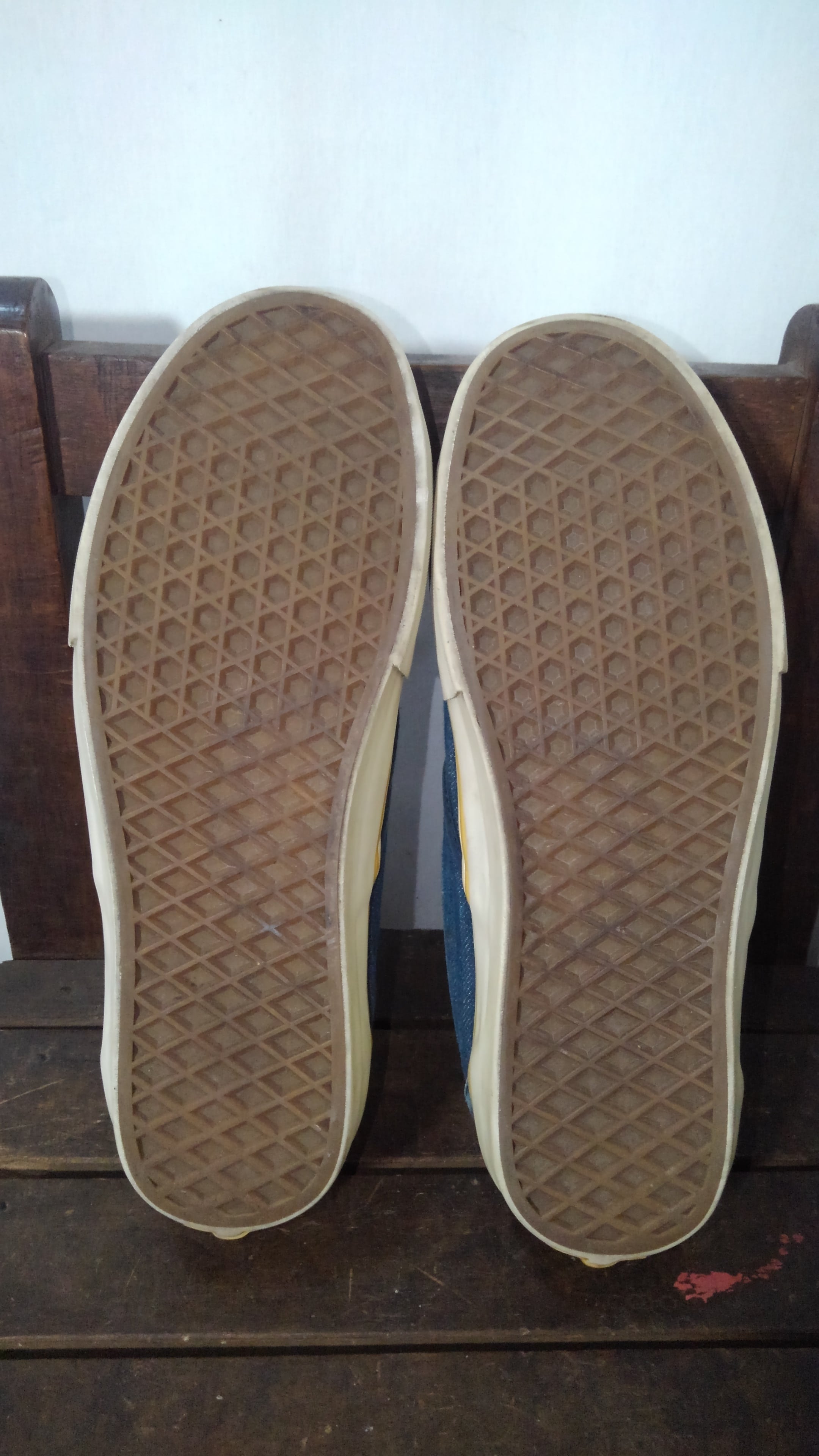 全体的に使用感があり長期保存によるサイドテープの変色があるもののアウトソールを見る限りは使用頻度は少な目かなと思います。