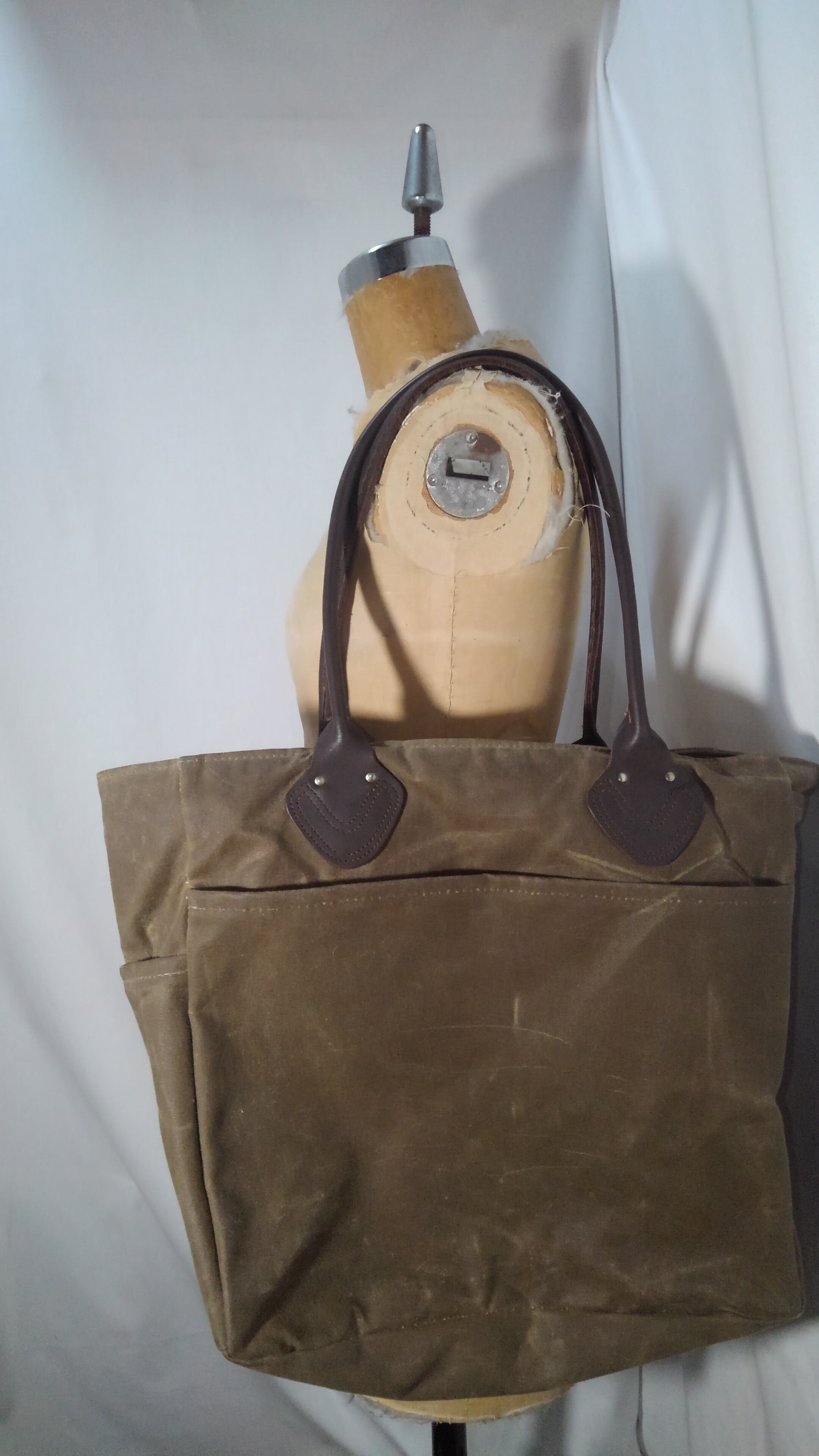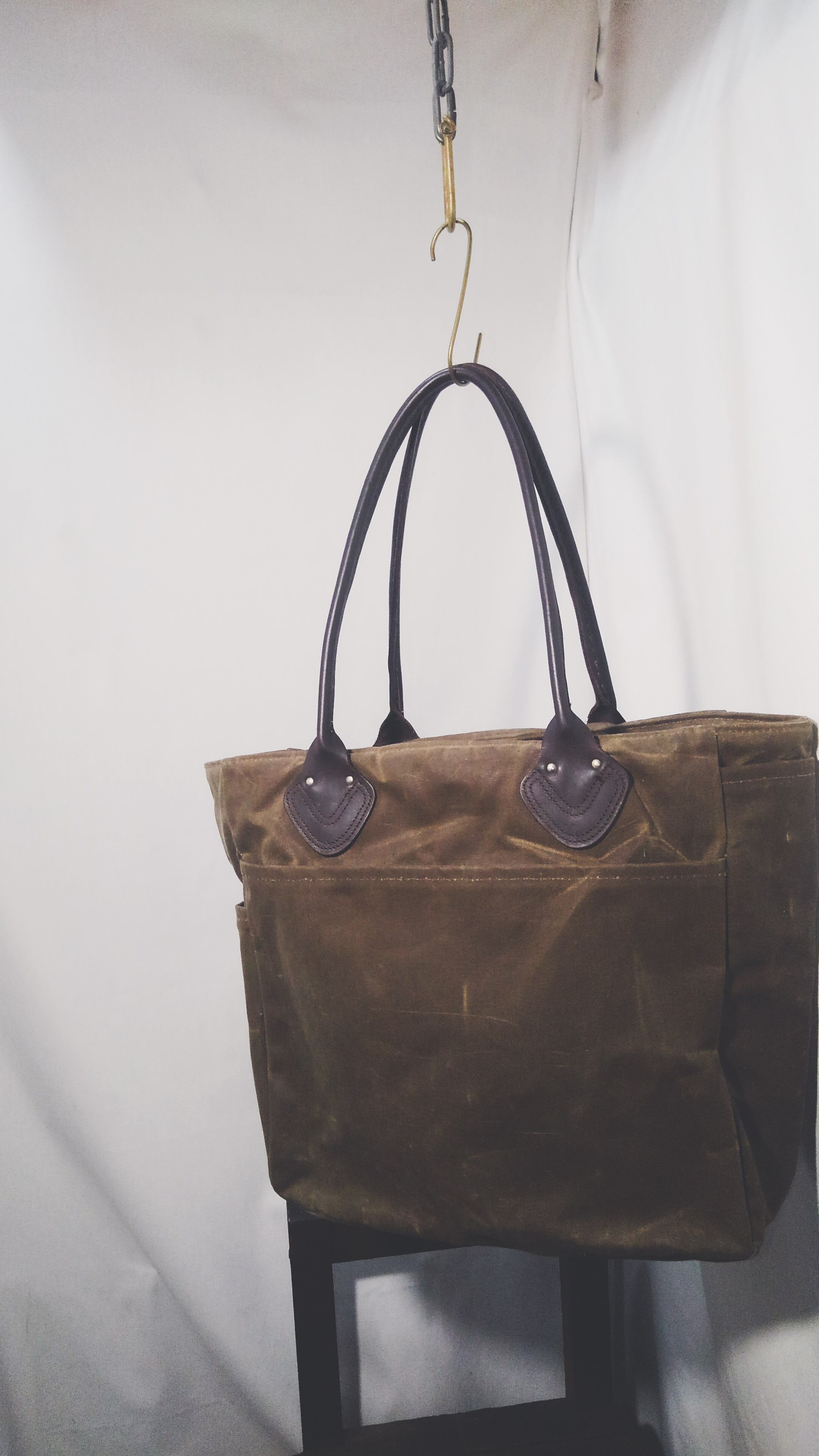 オイルド加工された非常にタフなキャンバス生地と上質なレザーによるやや大ぶりなハンドル。