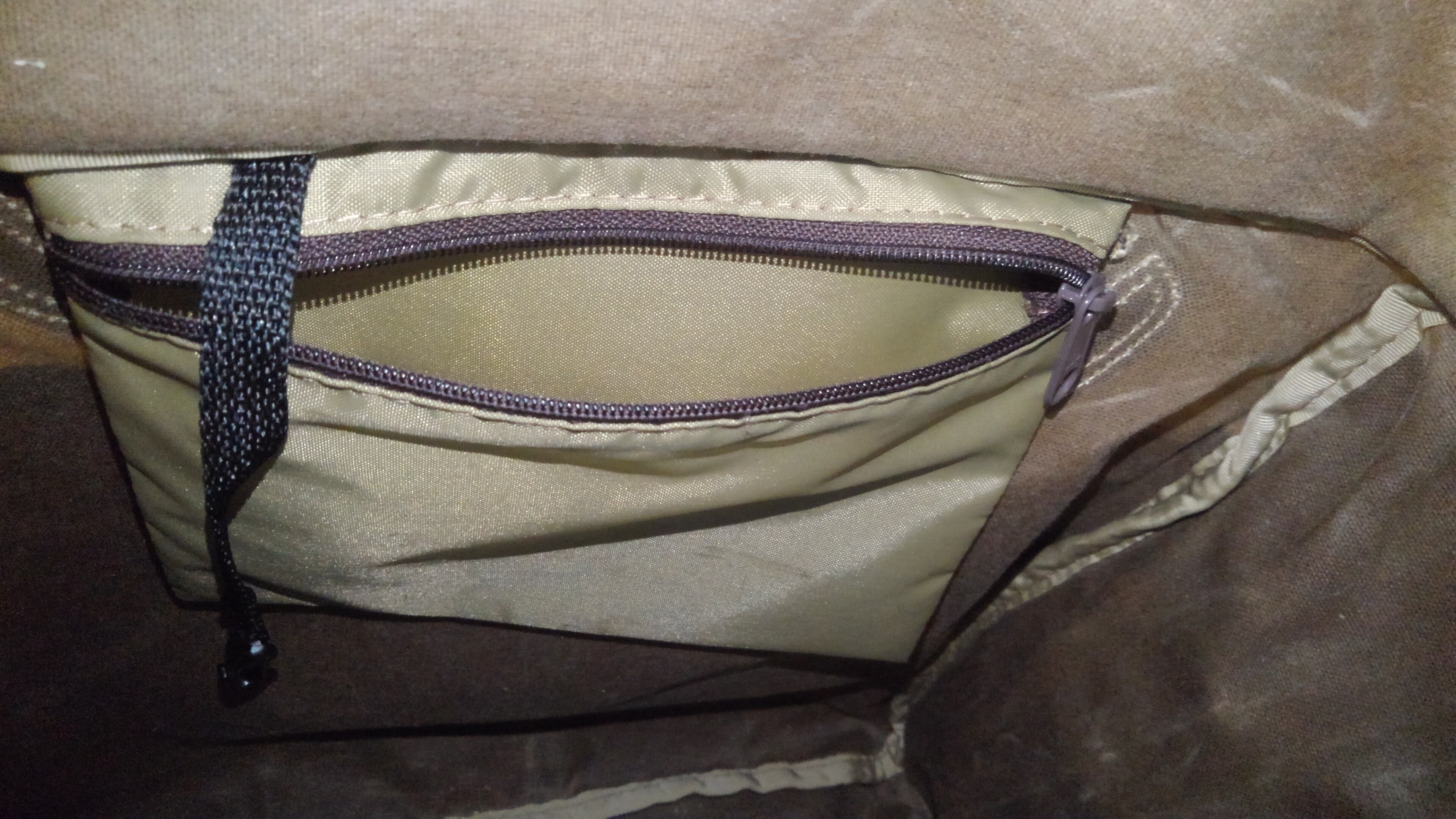 内部にはナイロン仕切りのポケットとストラップが付いていて機能性も優れています。